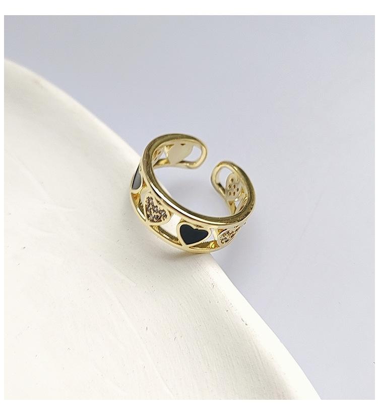 Anillo Estilo Ins Nicho para Mujer Micro-incrustado Diseño de Amor Sentido de Lujo Ligero Hueco Abierto Sentido de la Moda Exacto Ajustable