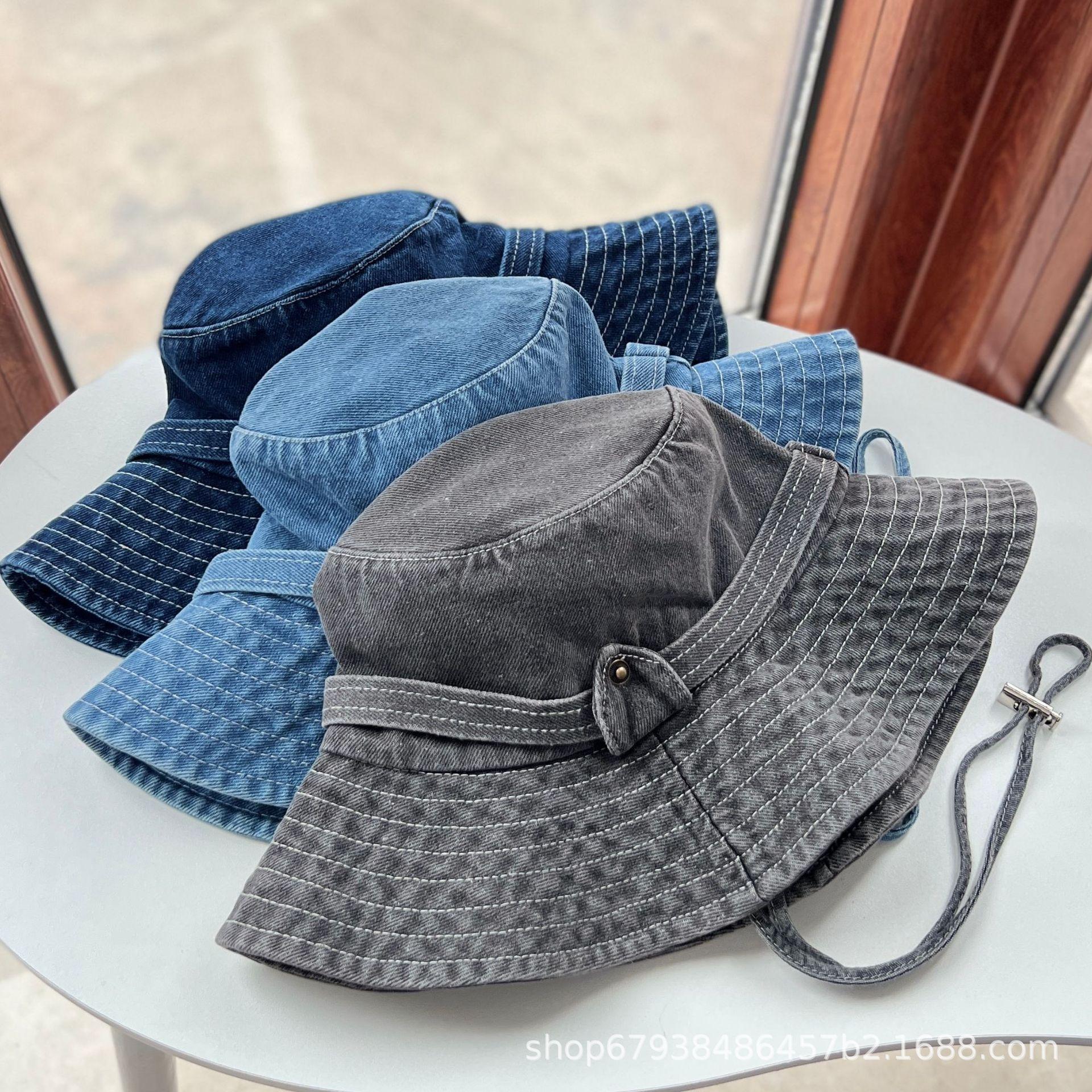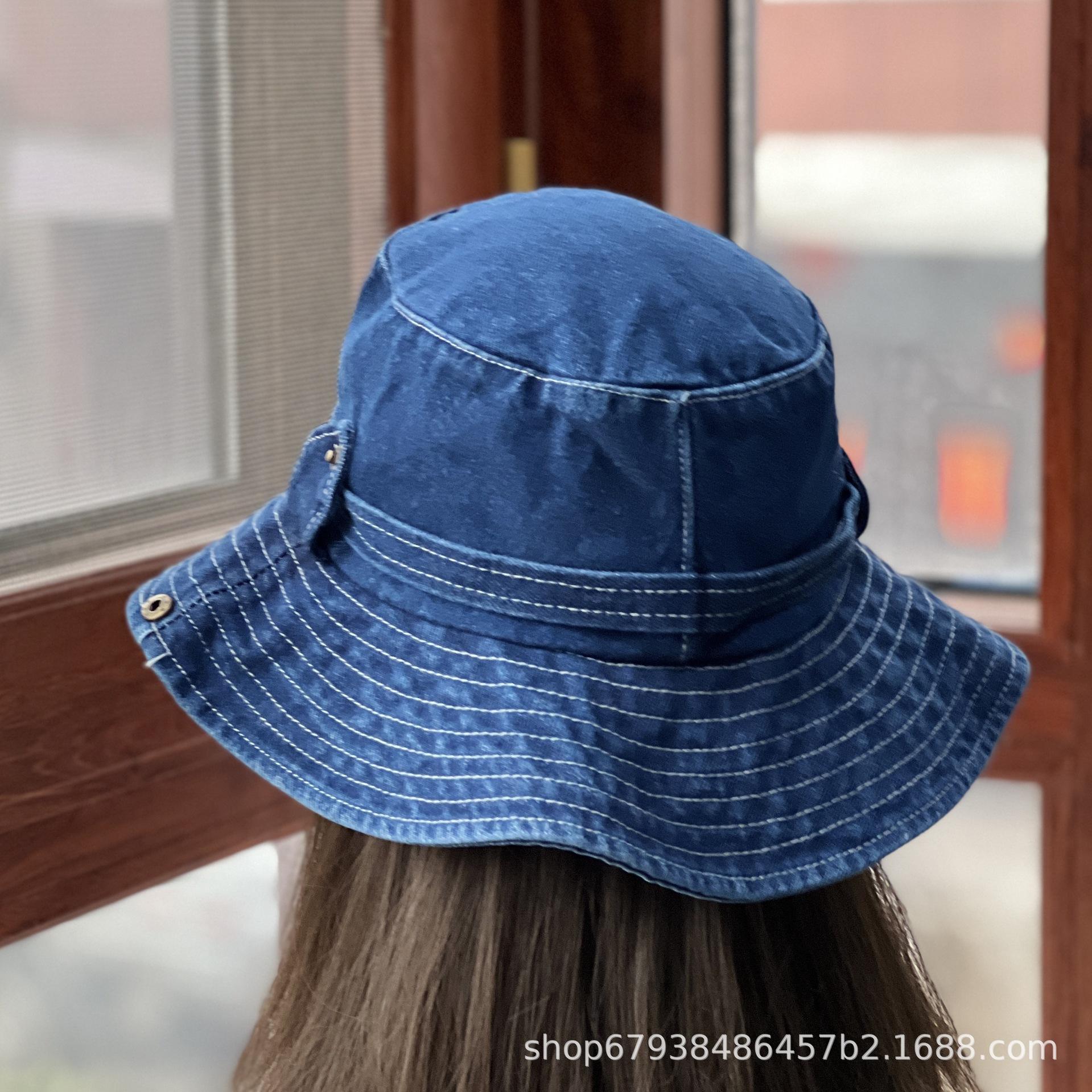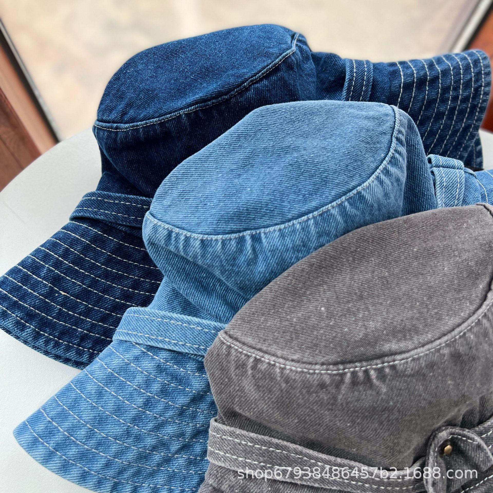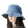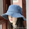 Sombrero de pescador de mezclilla para mujer Cuatro estaciones combinable Mezclilla occidental personalidad que hace lucir el rostro pequeño sombrero de cubo casual estilo Hong Kong retro sombrero para el sol