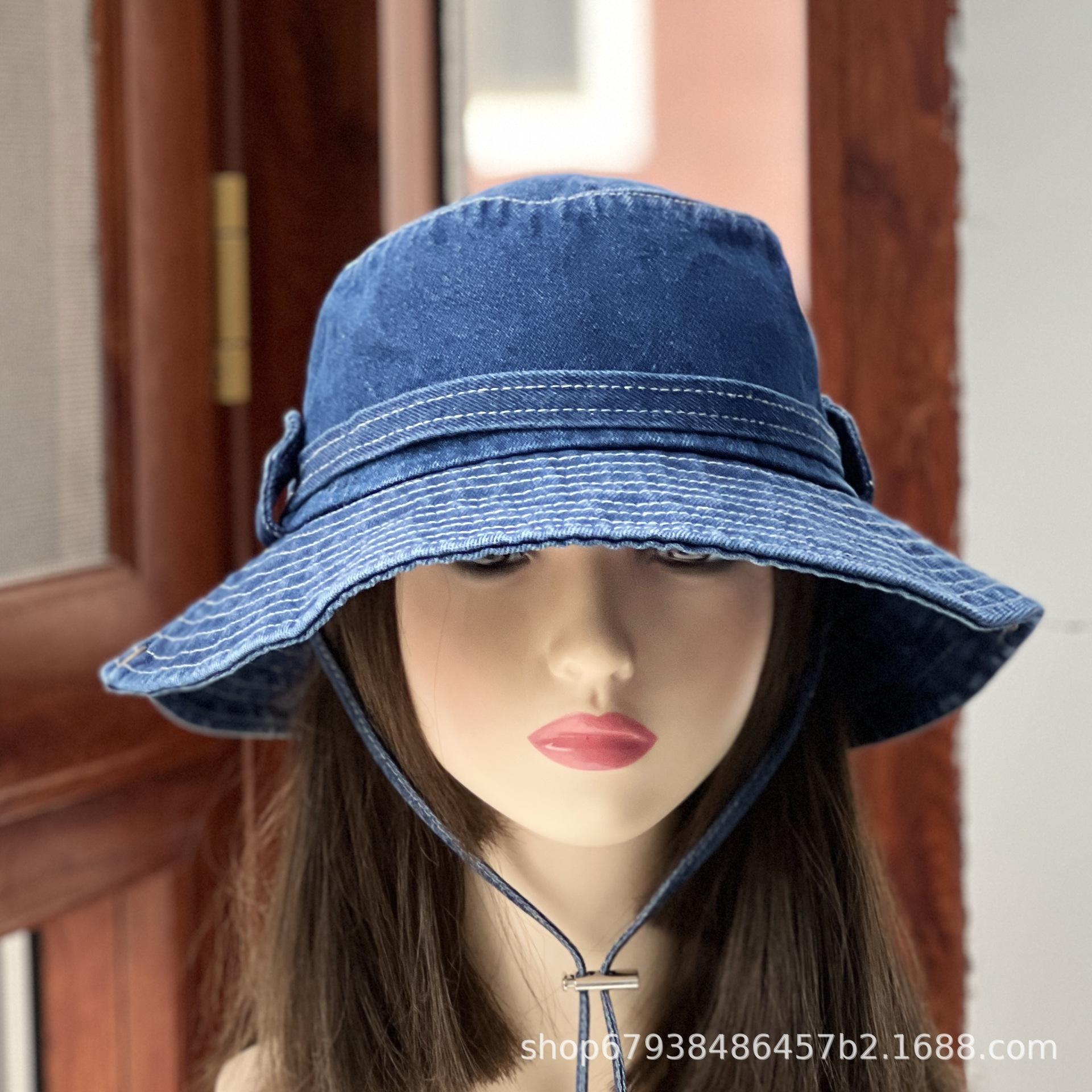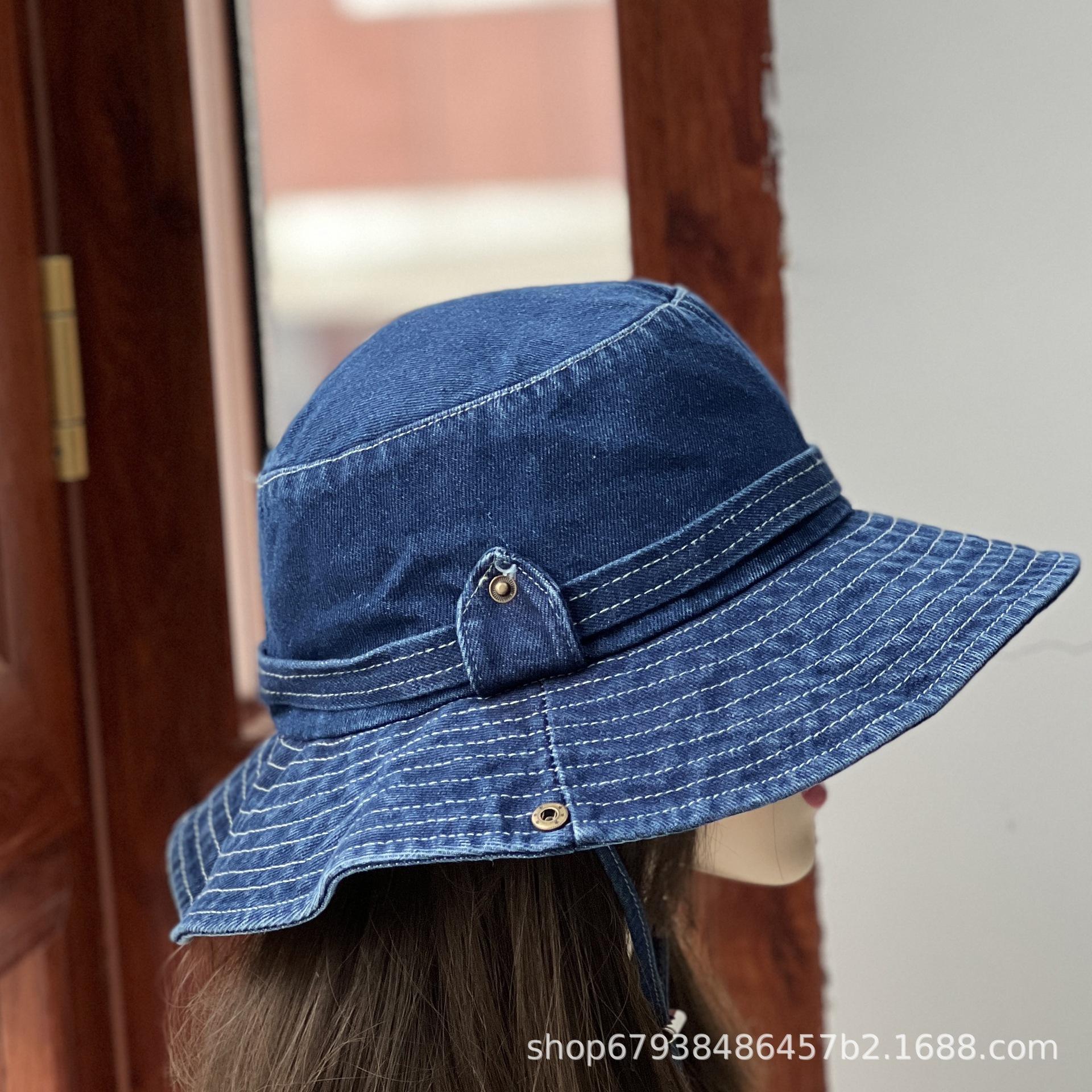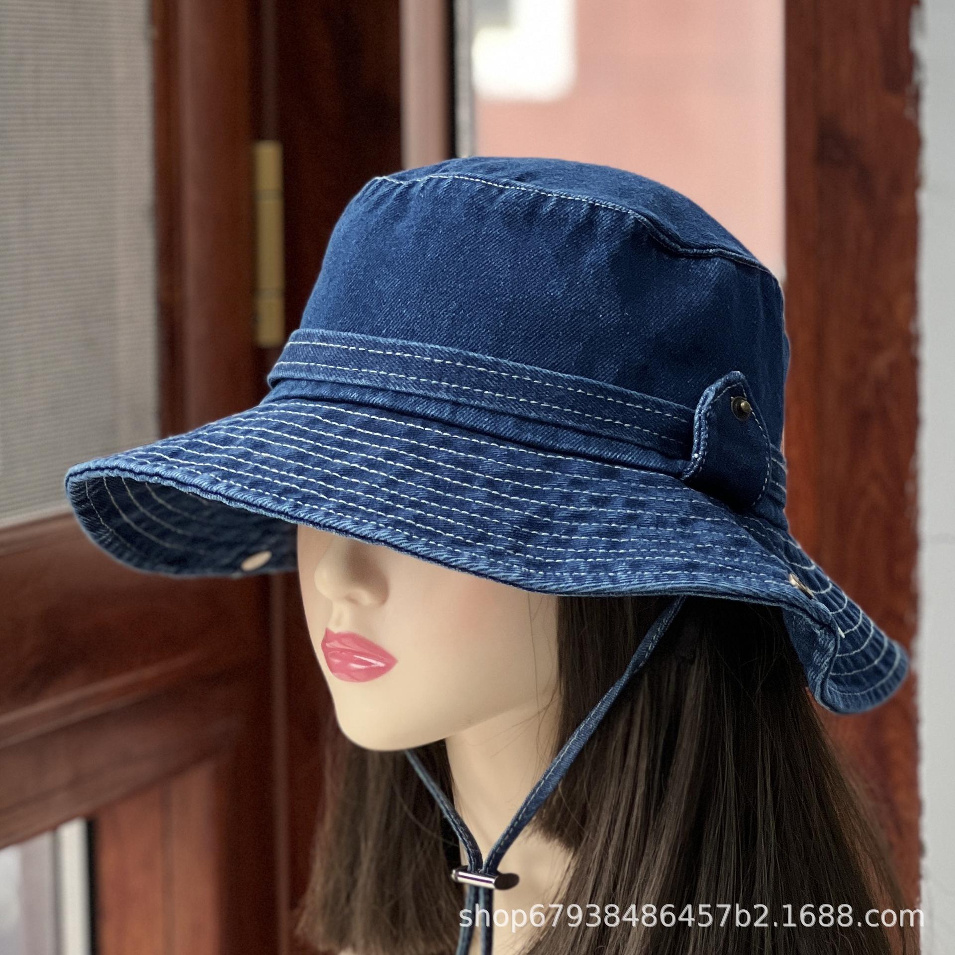 Sombrero de pescador de mezclilla para mujer Cuatro estaciones combinable Mezclilla occidental personalidad que hace lucir el rostro pequeño sombrero de cubo casual estilo Hong Kong retro sombrero para el sol