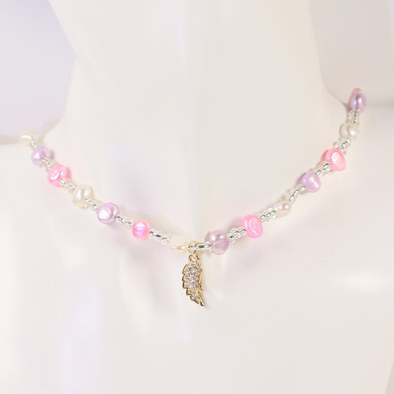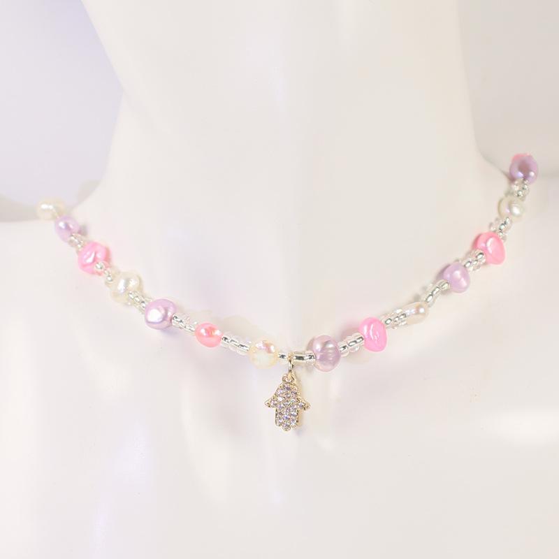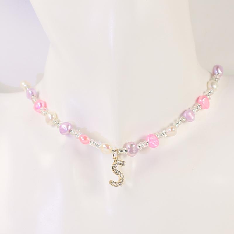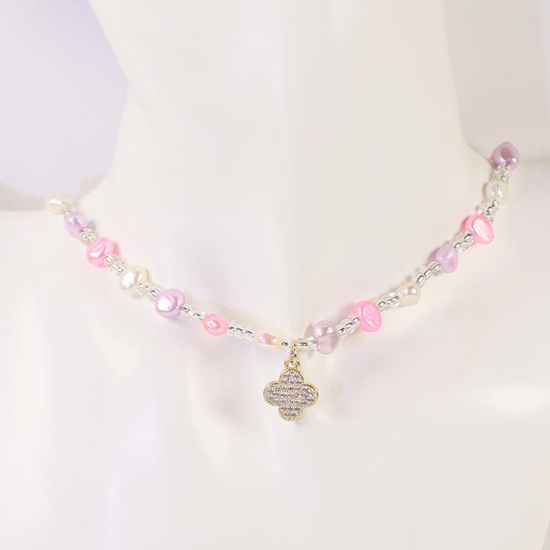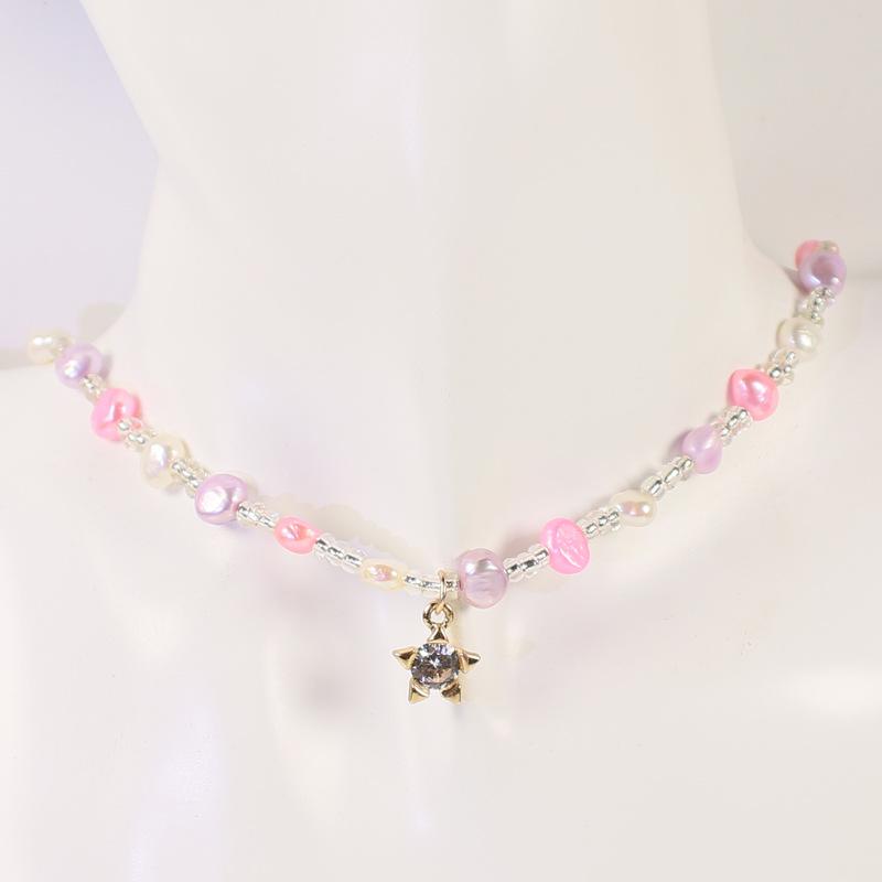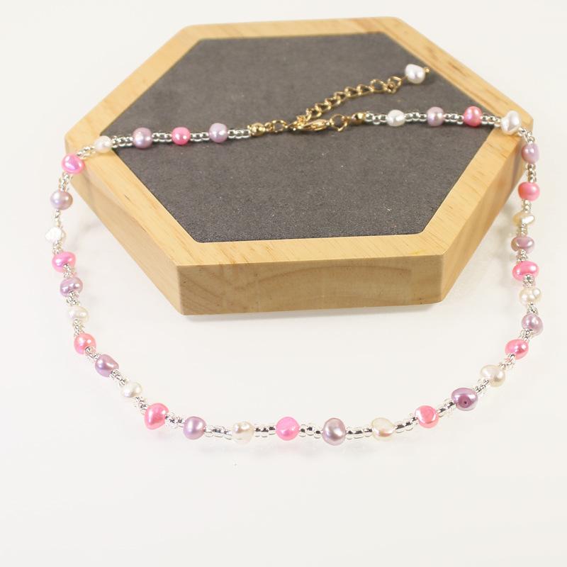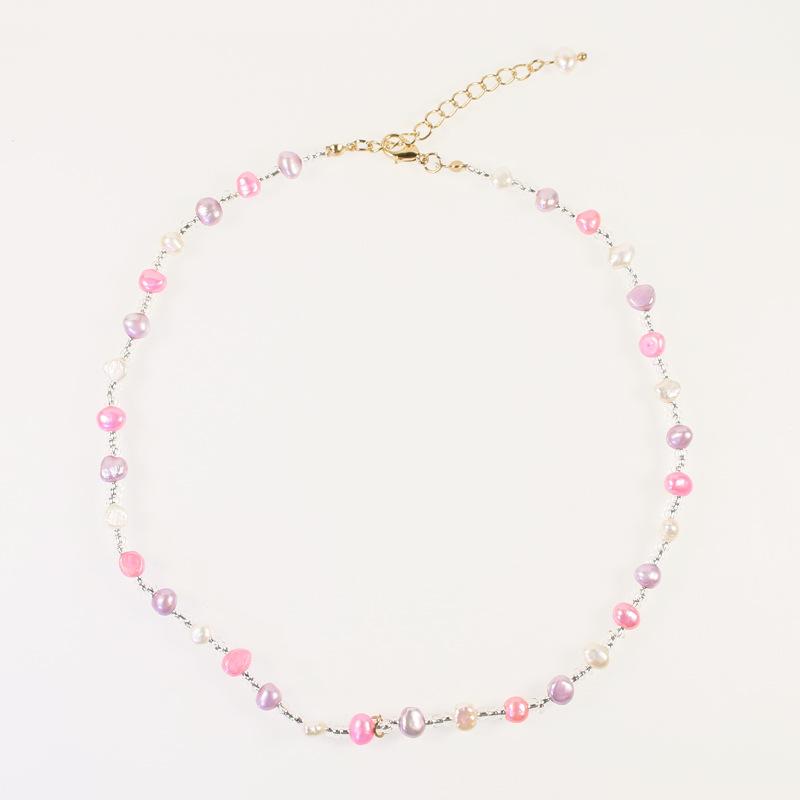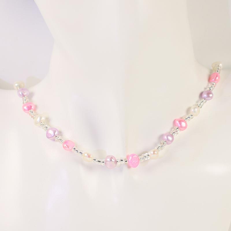 Material: Perlas de agua dulce moradas/blancas/rosas + perlas de arroz