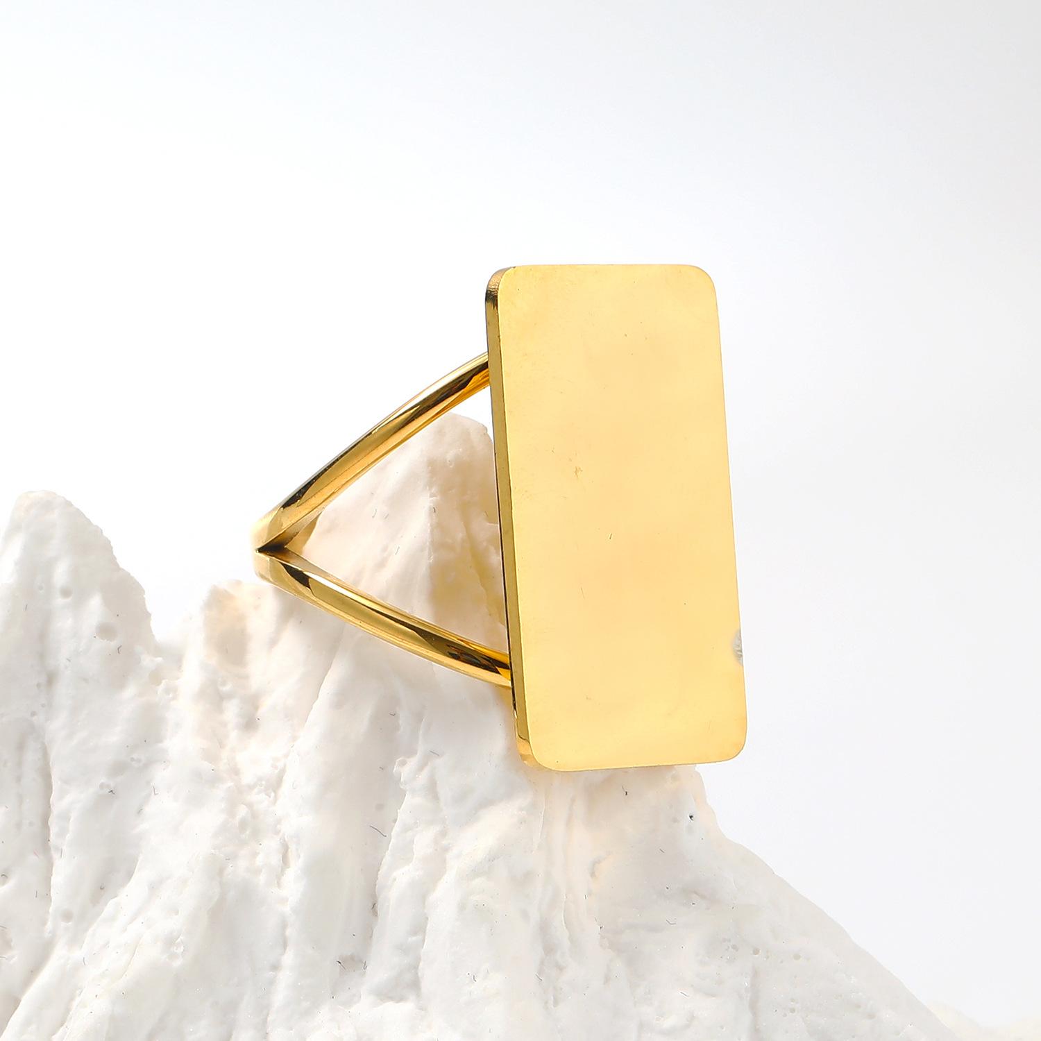 Anillo minimalista cuadrado de acero de titanio chapado en oro para mujer, diseño de estilo frío con personalidad, joyería de moda al por mayor
