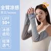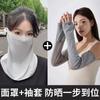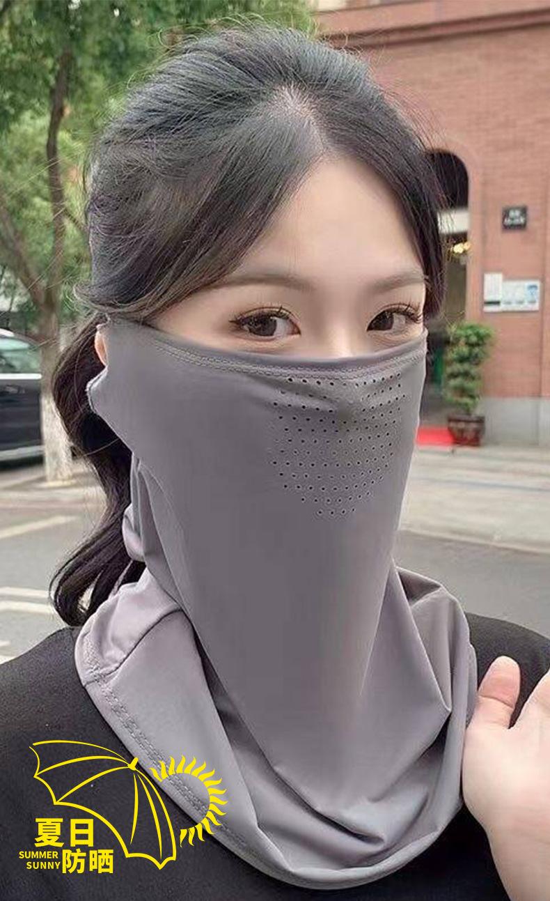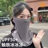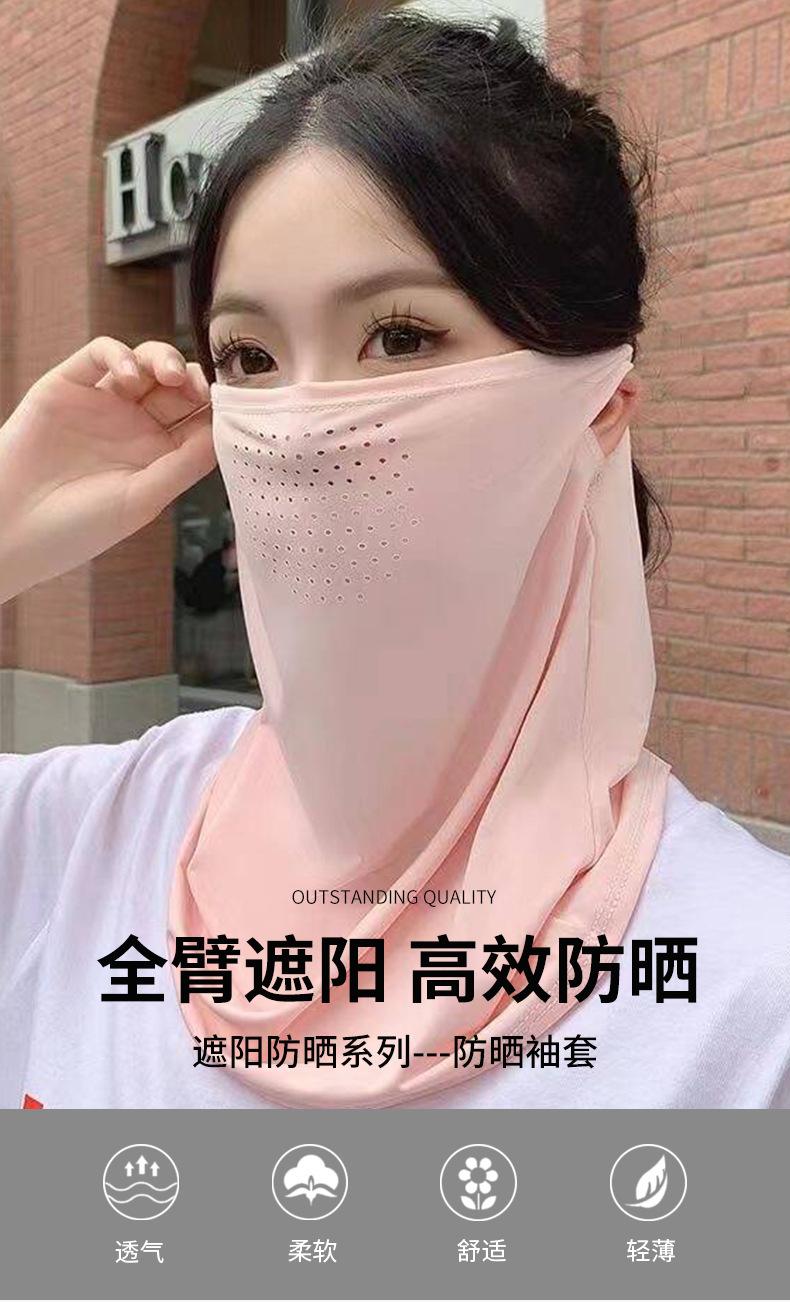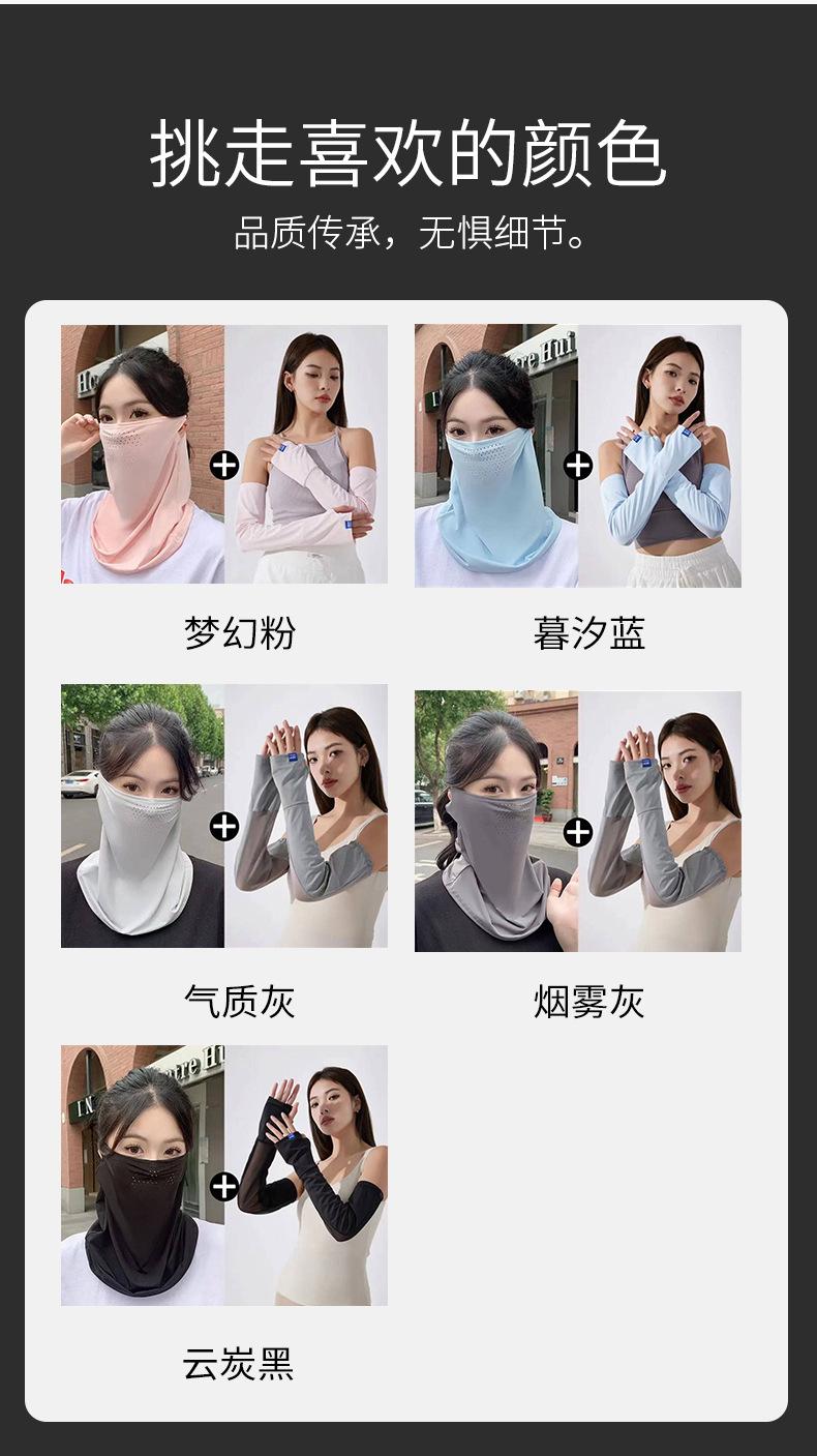 Mascarilla solar de verano para mujer, bufanda de protección para el cuello de secado rápido, conjunto combinado de mangas de hielo de seda helada transpirable para deportes de equitación al aire libre