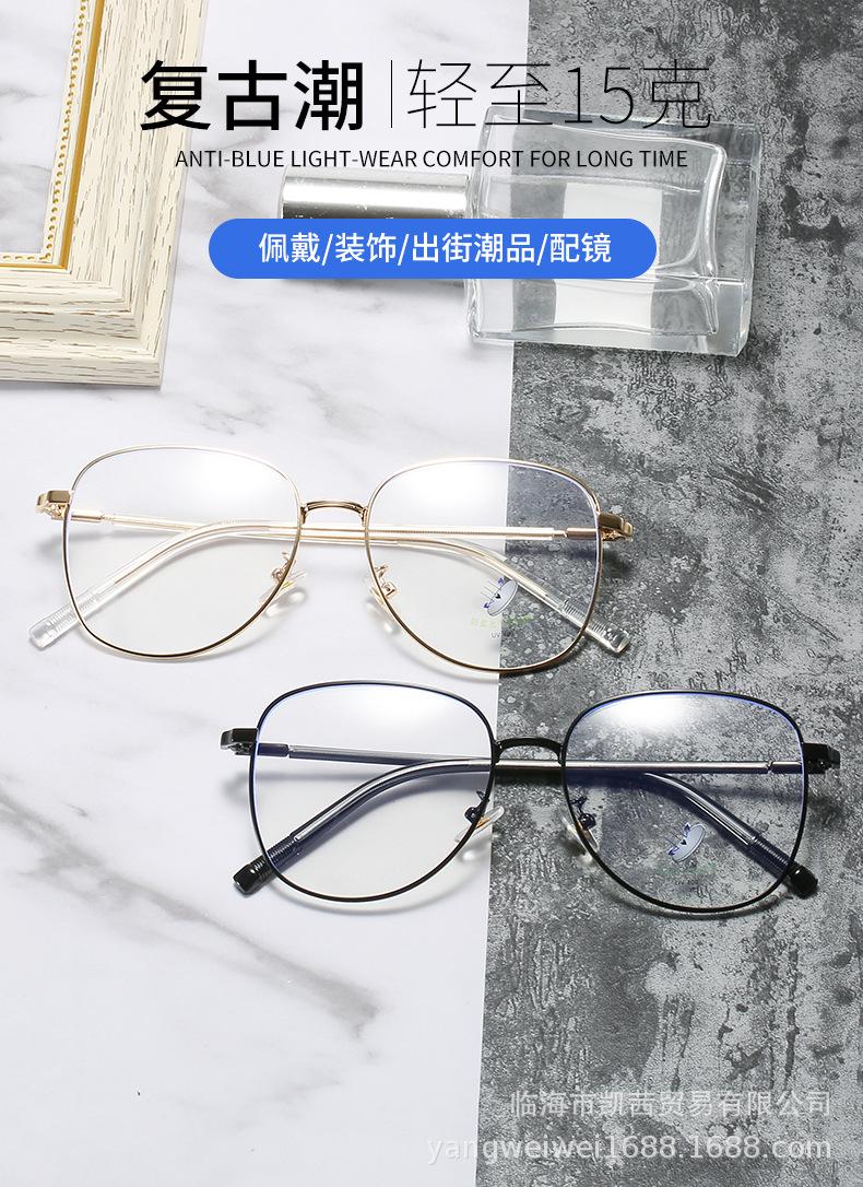 Gafas con montura de bola abierta y antirradiación de rayos azules, gafas de mujer lisas, gafas de rana retro, montura de metal con montura de gafas para miopía