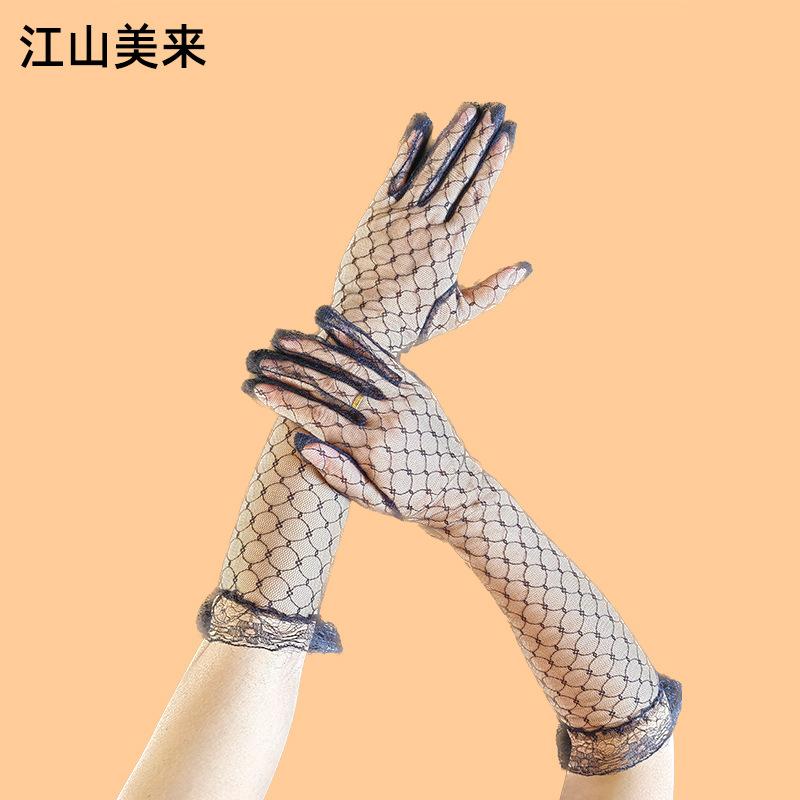 Guantes de Malla de Verano para Protección Solar Guantes de Malla Ligeros para Mujer Guantes Retro de Encaje Transpirable para Boda Vestido de Novia Estilo Largo