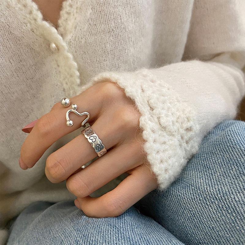 Anillo de Flor Amor Graffiti para Mujer Estilo Coreano Diseño Nicho Sentido Moda Personalidad Plata S925 Anillo Abierto para Dedo