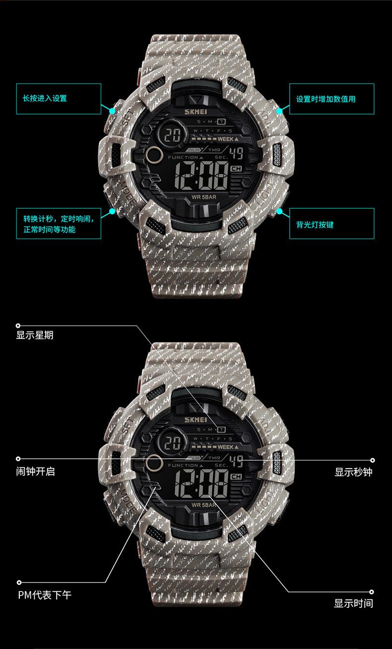 Reloj electrónico Skmei para deportes al aire libre, resistente al agua, popular en AliExpress, reloj para estudiantes con esfera grande y cuenta regresiva para hombre.