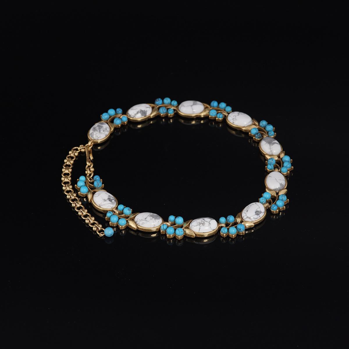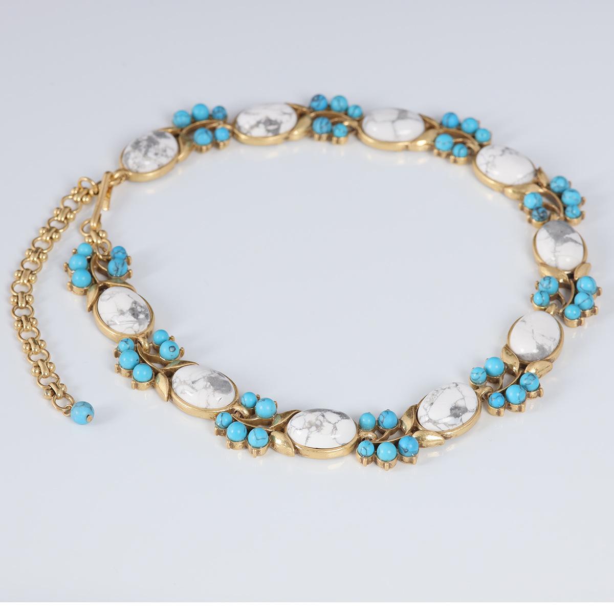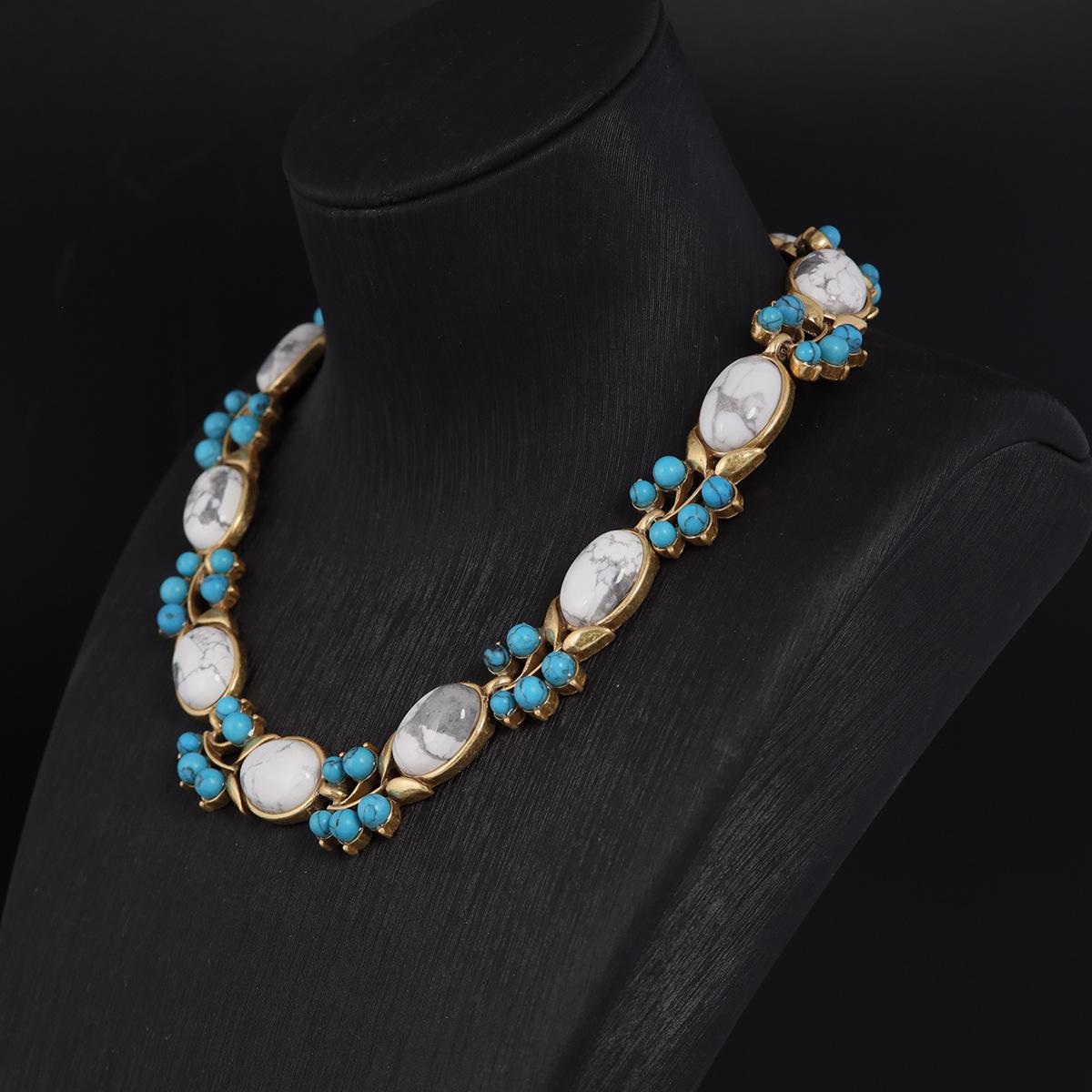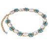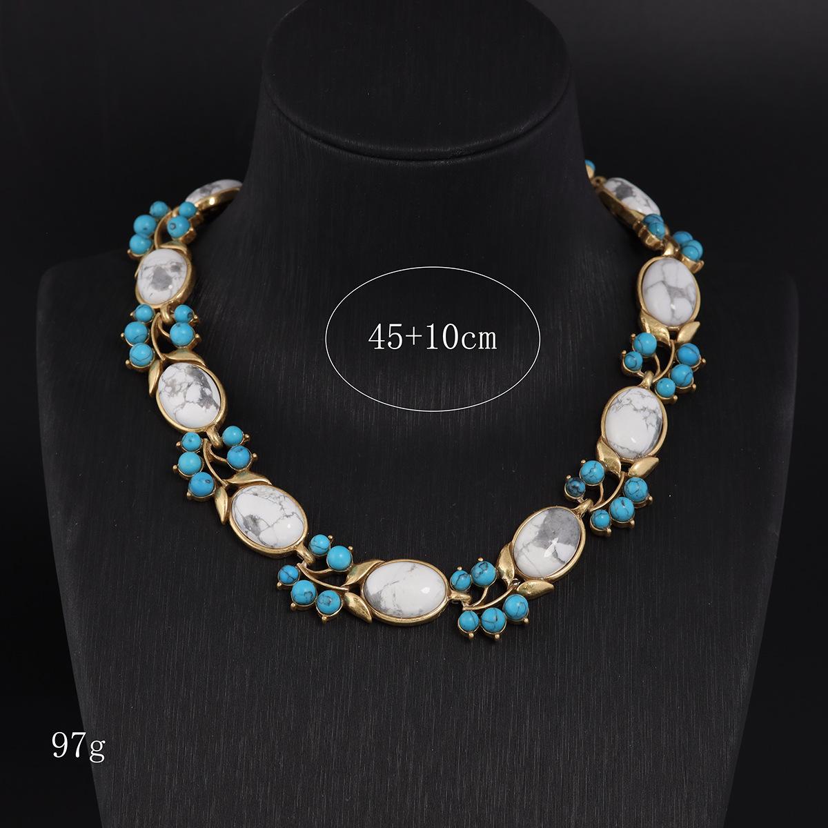 Collar Vintage de Estilo de Alta Gama Versátil Retro Dorado Blanco Envejecido Azul Turquesa Partícula de Pino