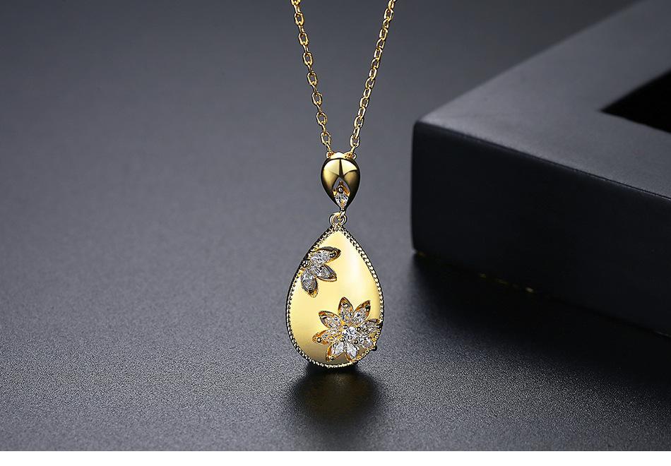 Collar con colgante de gota de agua Jinse, accesorios, diseño de flores europeas y americanas, collar de cadena de cuello femenino con nicho de circón simple