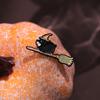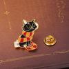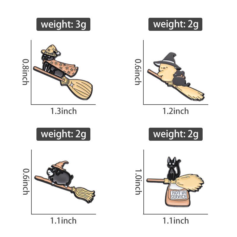 Broche de gatito con escoba de montar creativa de animal de dibujos animados, lindo gato mágico, caja negra, insignia de metal, accesorios de ropa