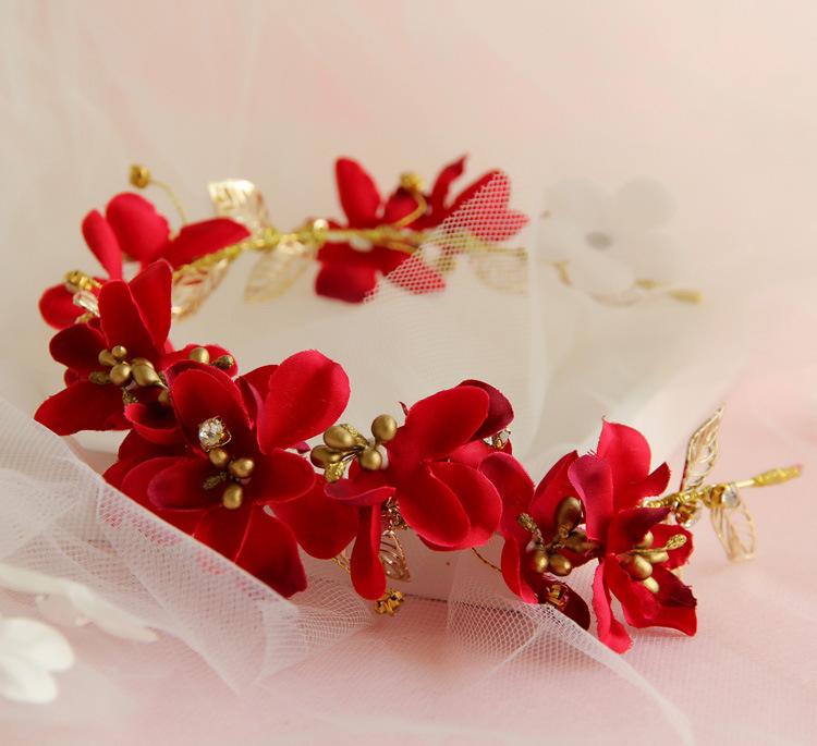 Banda para el cabello Tuan Ming, nuevo estilo, superventas, conjunto de tocado de flores, vestido rojo tostado, accesorios cheongsam, tocado de boda, venta al por mayor