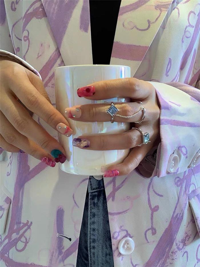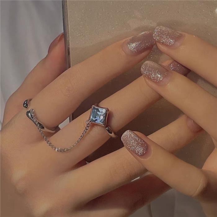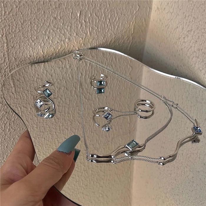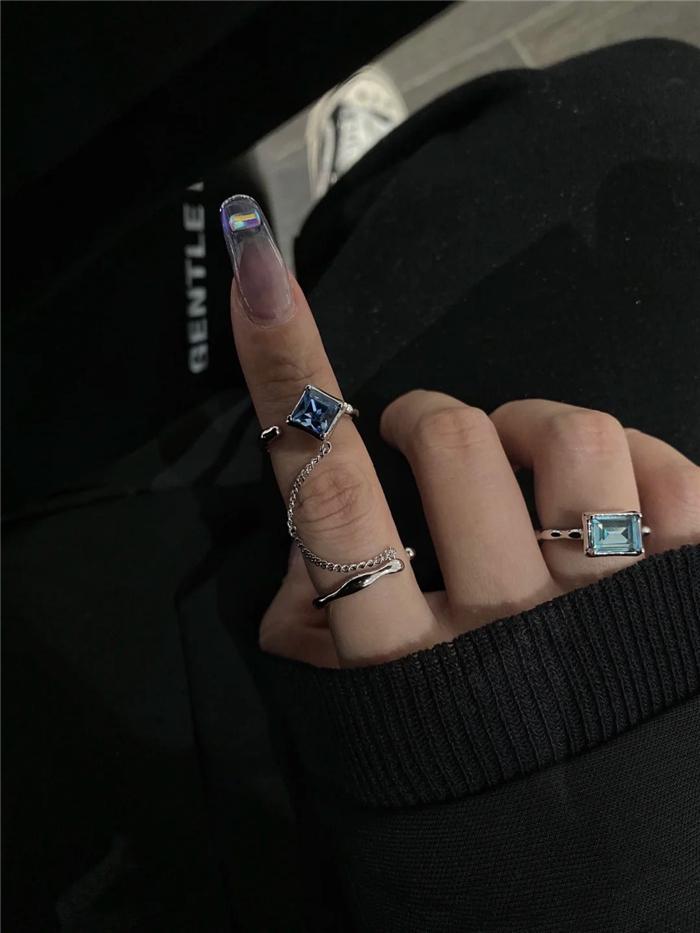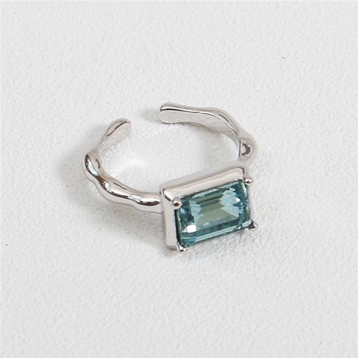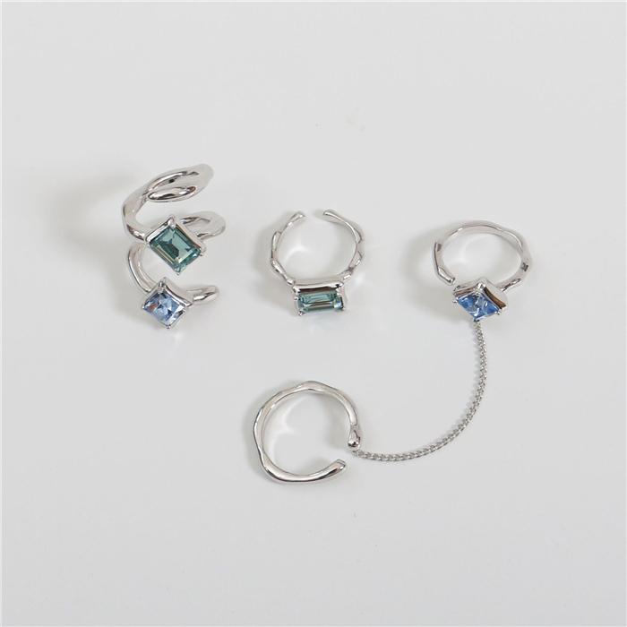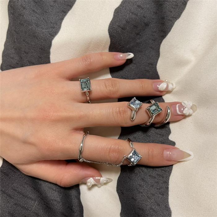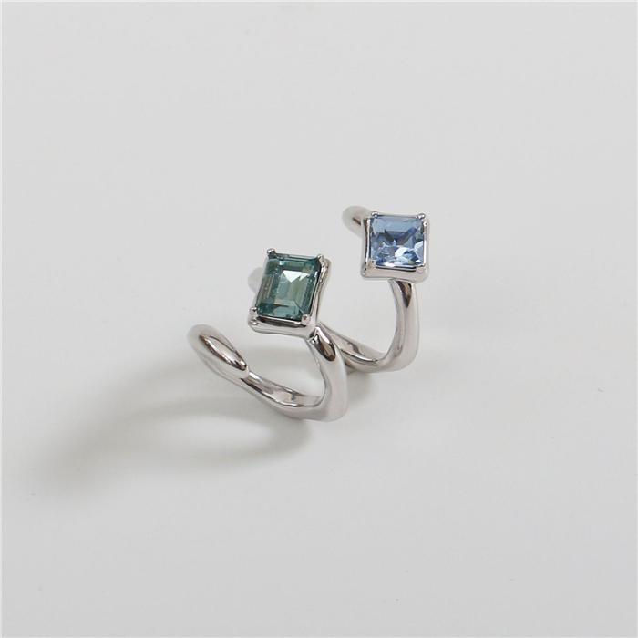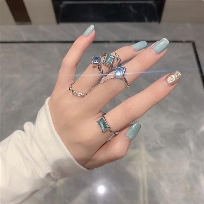 Square green zircon (inner diameter 1.5), Blue-green zircon spiral (joint ring), Double ring chain (opening adjustable)