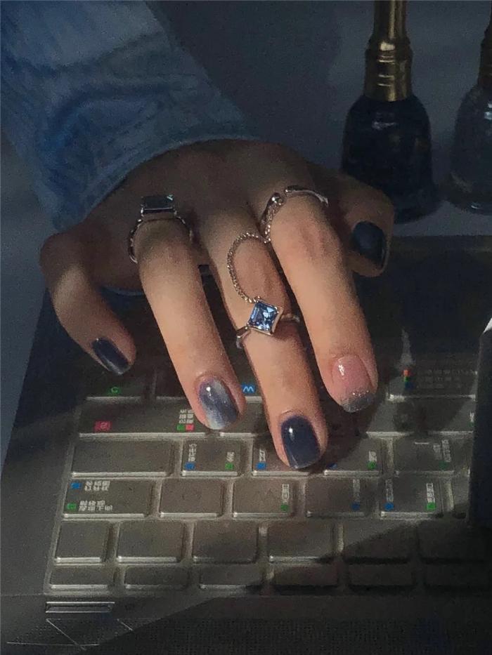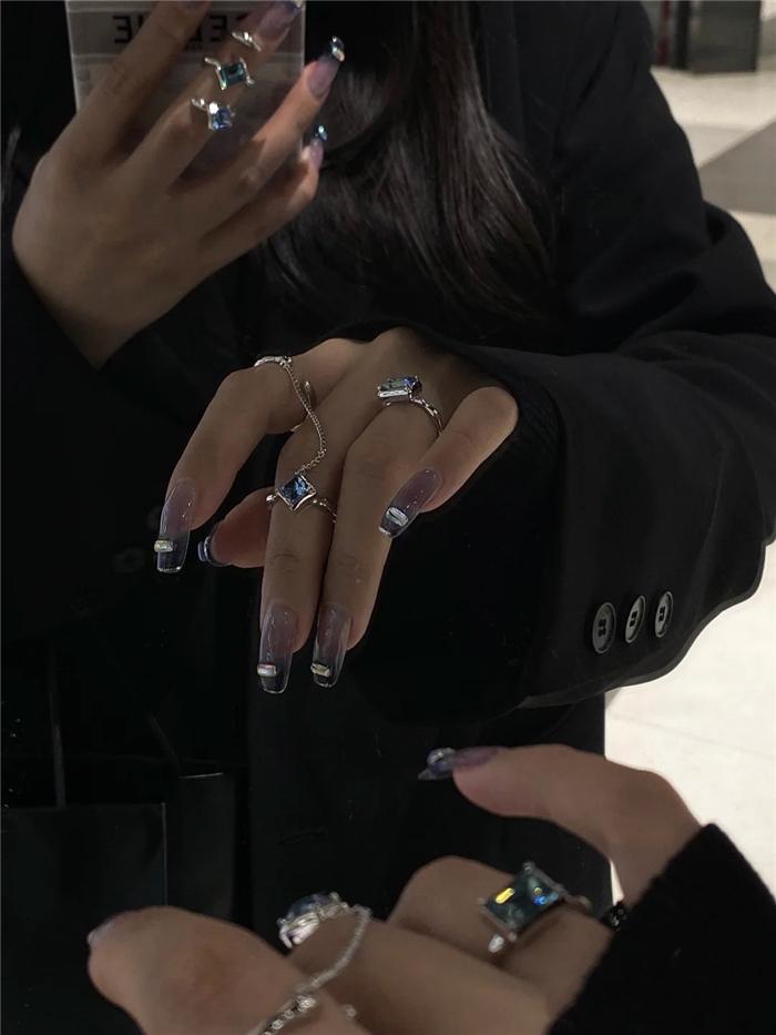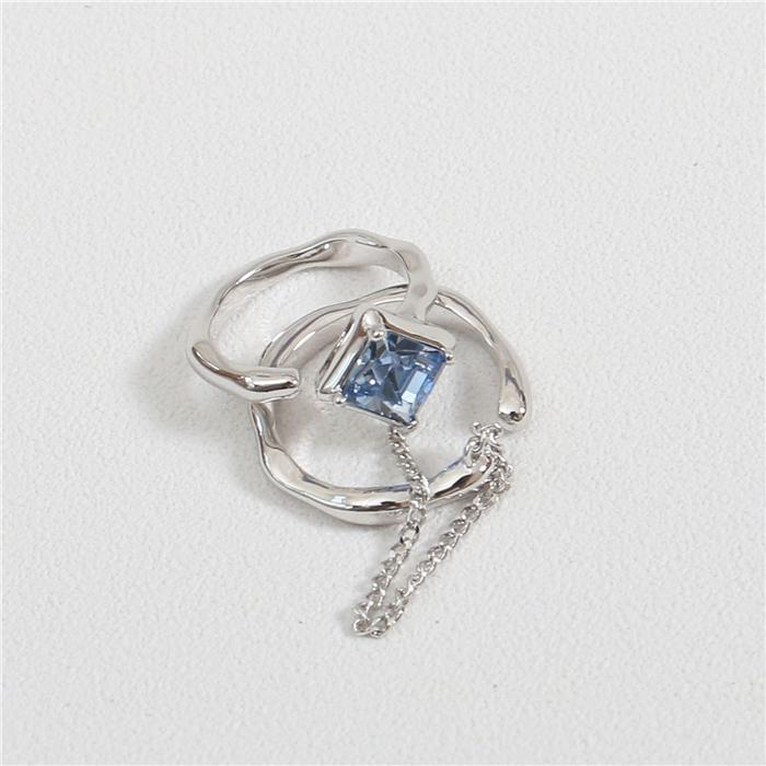 131 Anillo Abierto Combinación Circonita Cristal Azul y Blanco Diseño Nicho Espiral Sentido ins Anillo Colocación Chica Dulce Cool