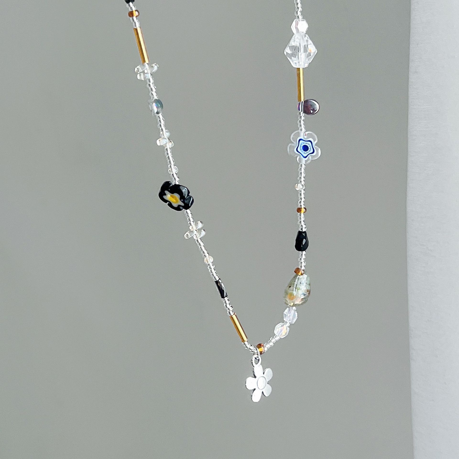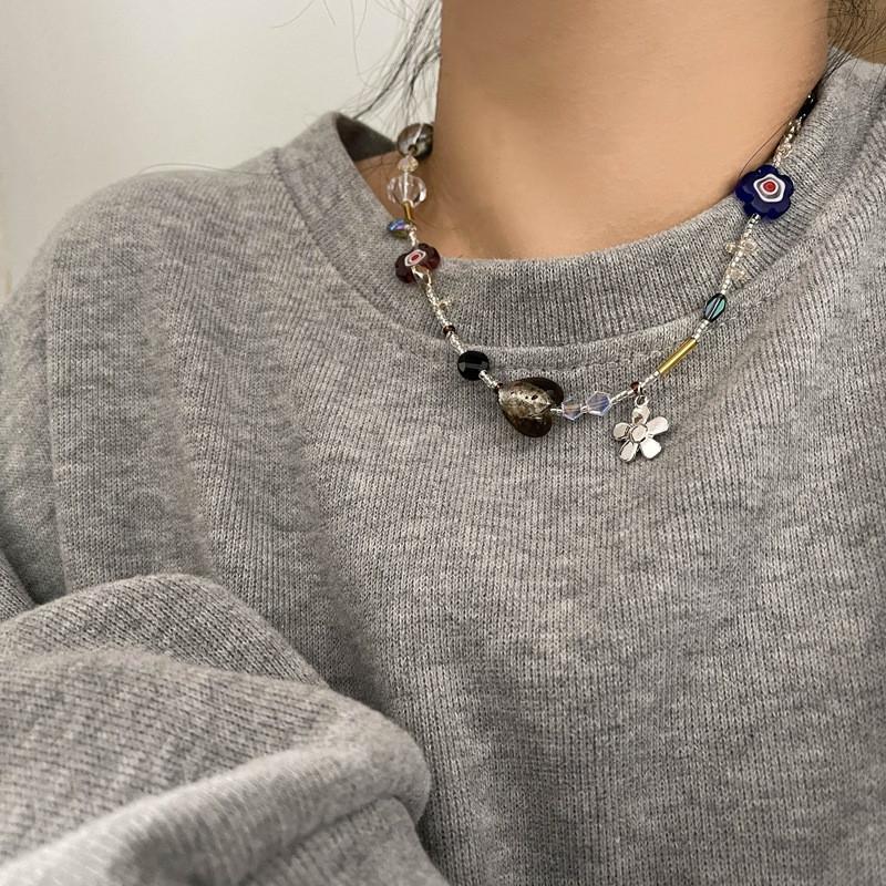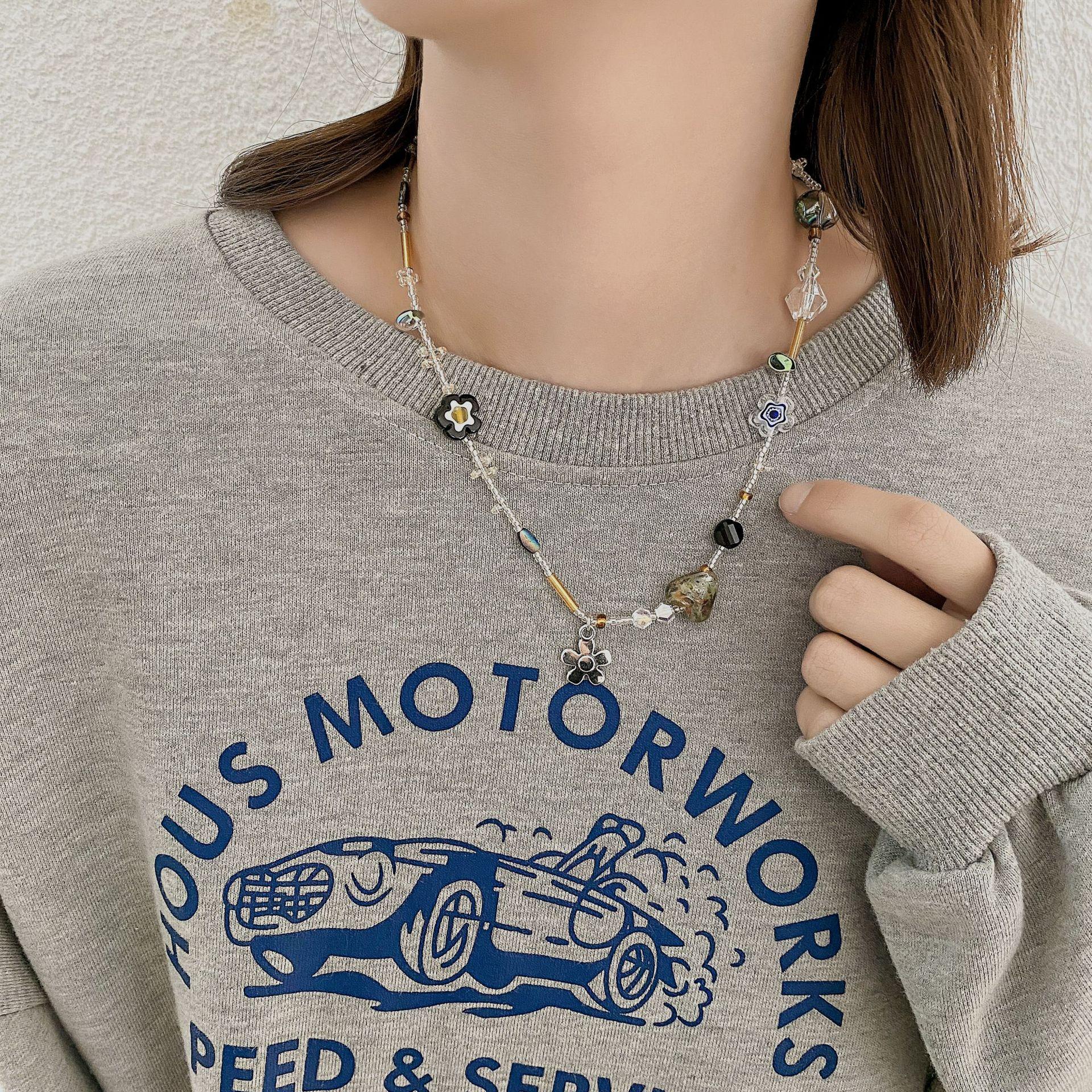 Collar Mori con cuentas de grava y cristal esmaltado de estilo moderno de Tide, cadena de clavícula con diseño de nicho para mujer