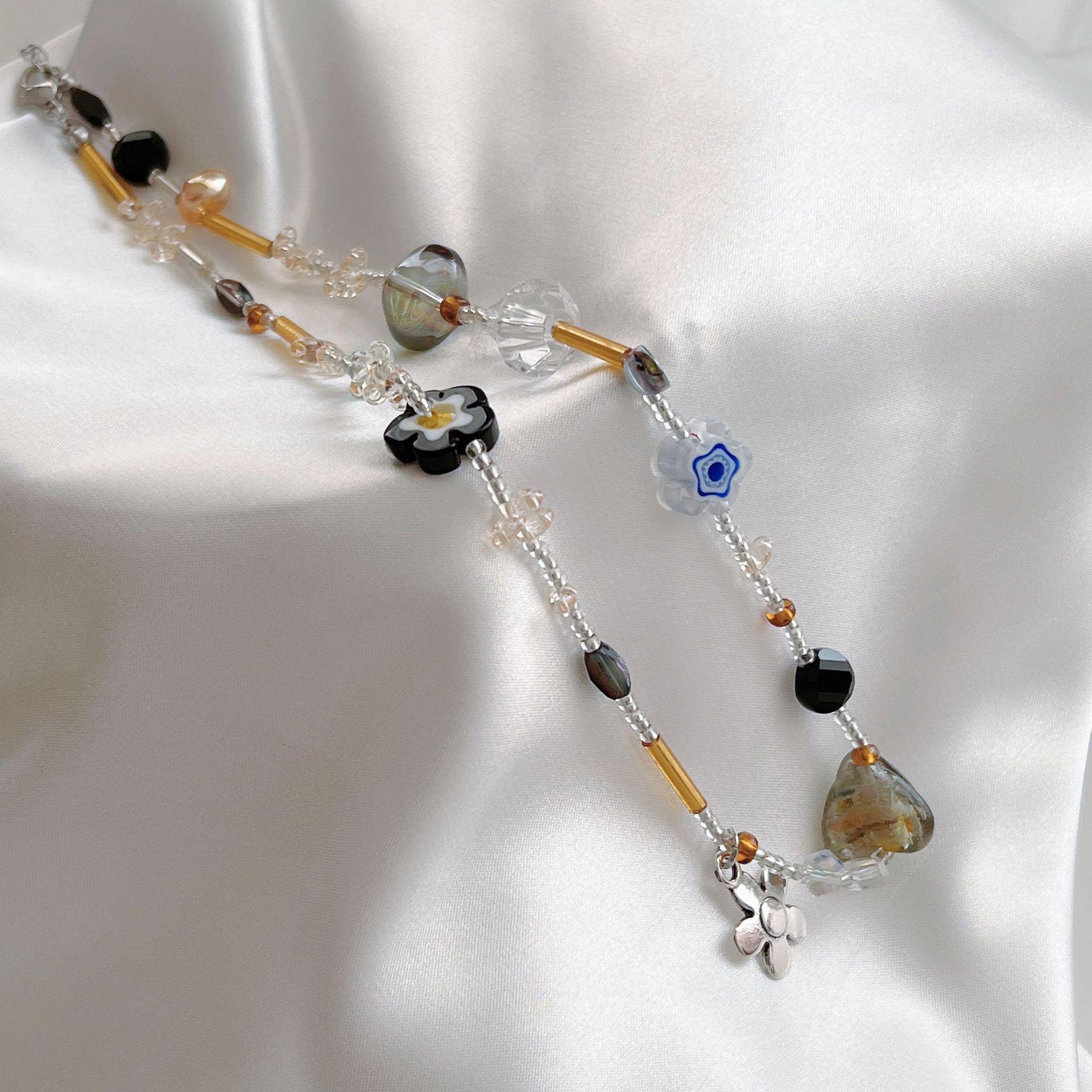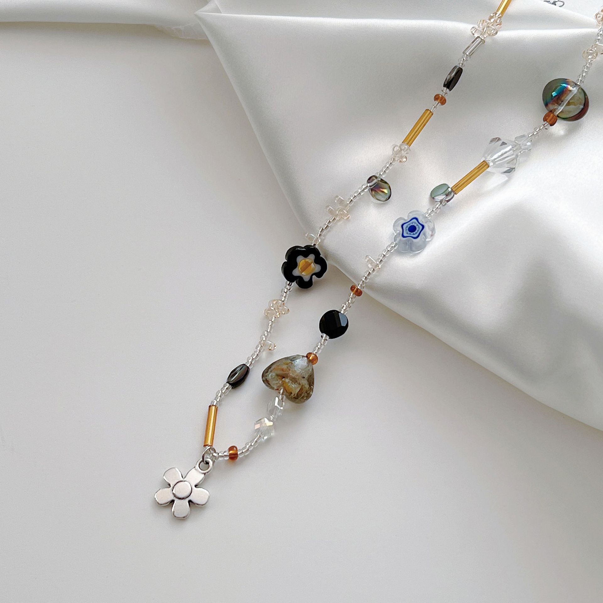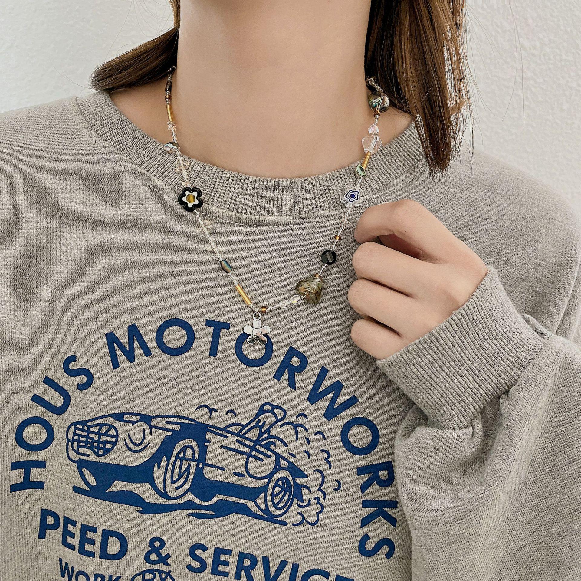 Collar Mori con cuentas de grava y cristal esmaltado de estilo moderno de Tide, cadena de clavícula con diseño de nicho para mujer