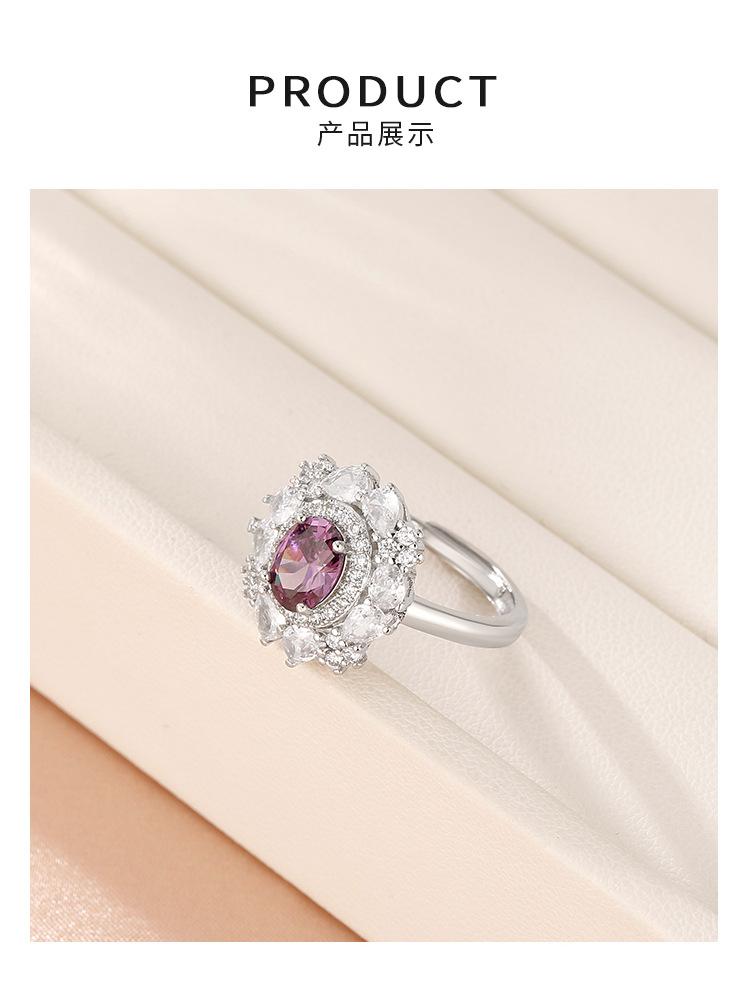 Anillo de diamantes morados de moda de lujo ligero de nuevo estilo 2023, diseño de personalidad moderna, estilo igual de libro rojo pequeño, anillo ajustable