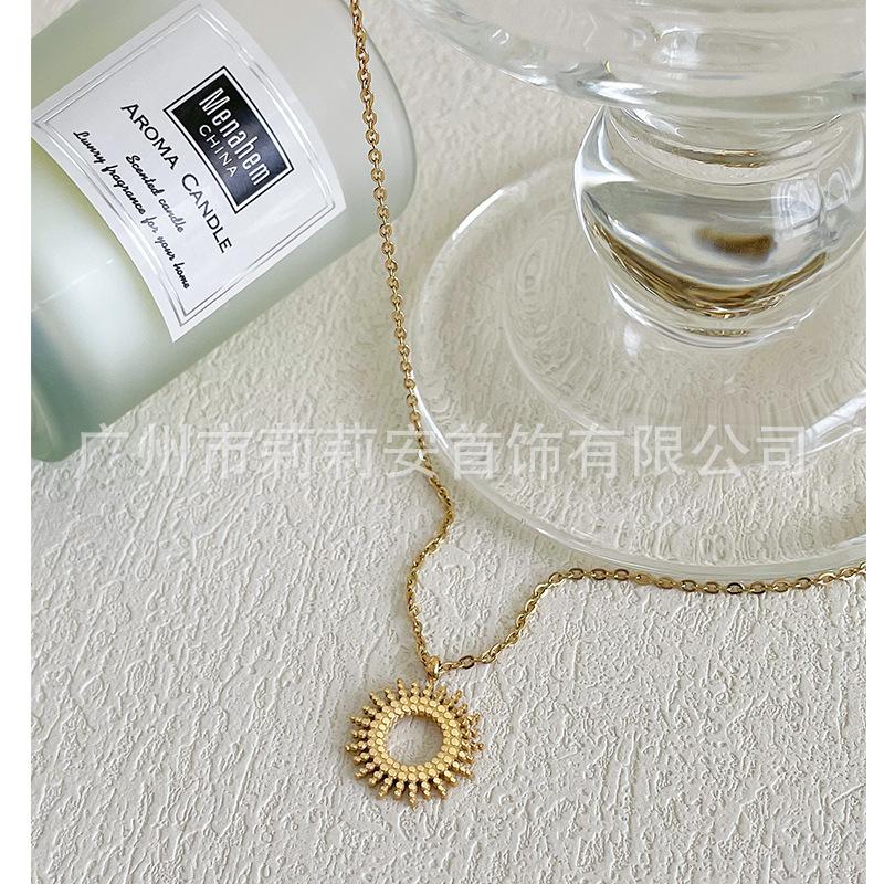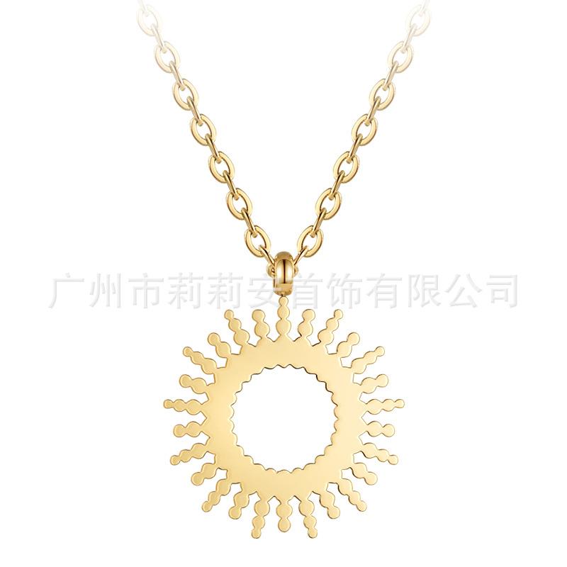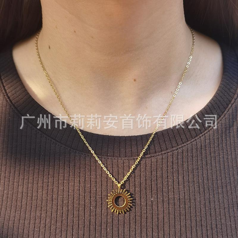 Collar moderno con colgante de girasol hueco, estilo INS, de acero de titanio chapado en oro de 18 quilates, diseño de nicho europeo y americano, P2232