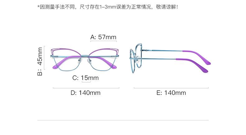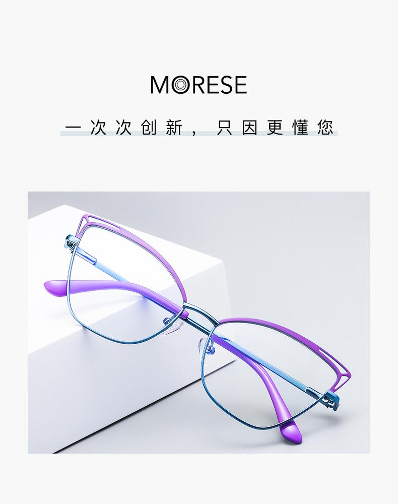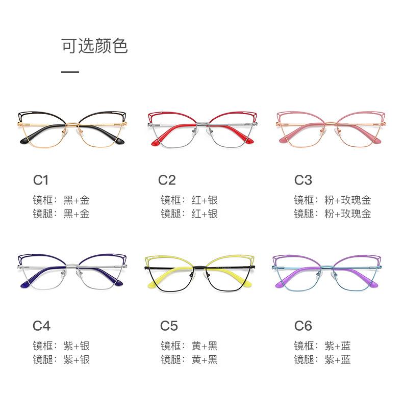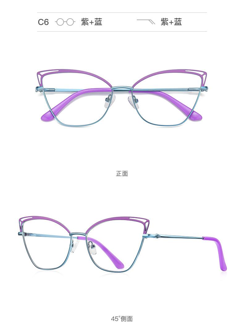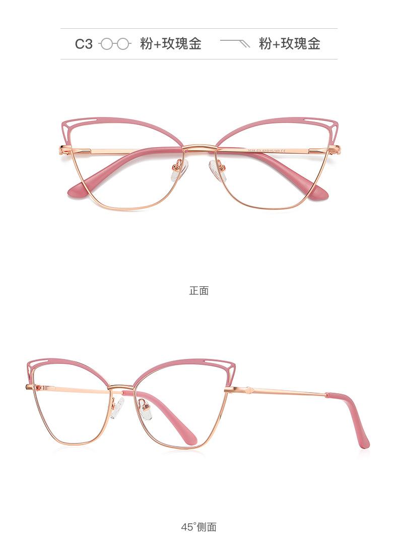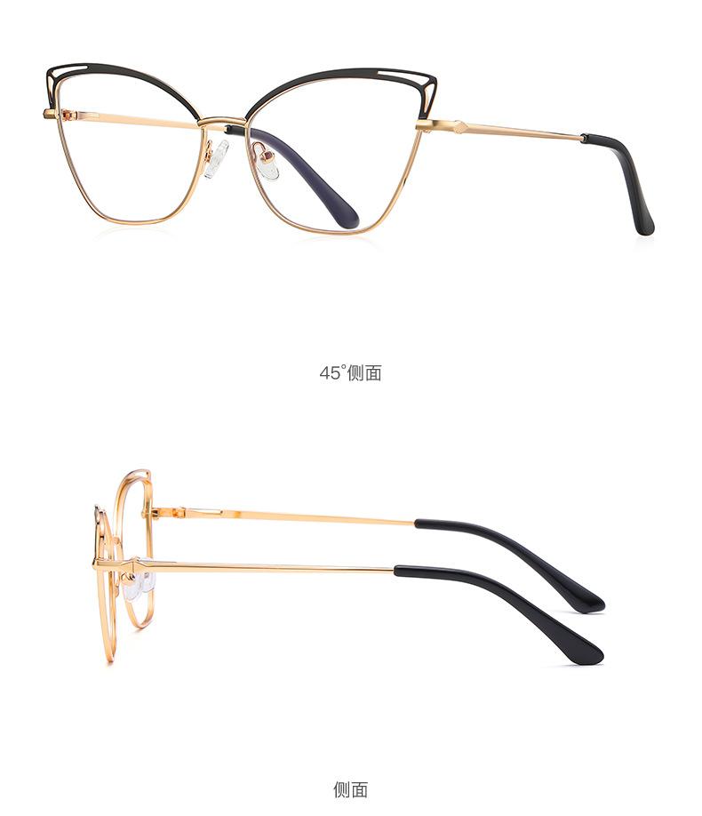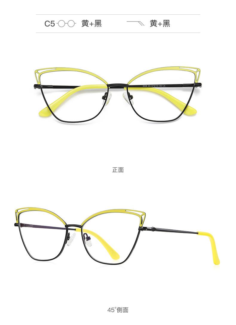 Nueva montura de metal ojo de gato, color hueco a juego, estilo europeo y americano, espejo plano para mujer, color caramelo Amazon 3038