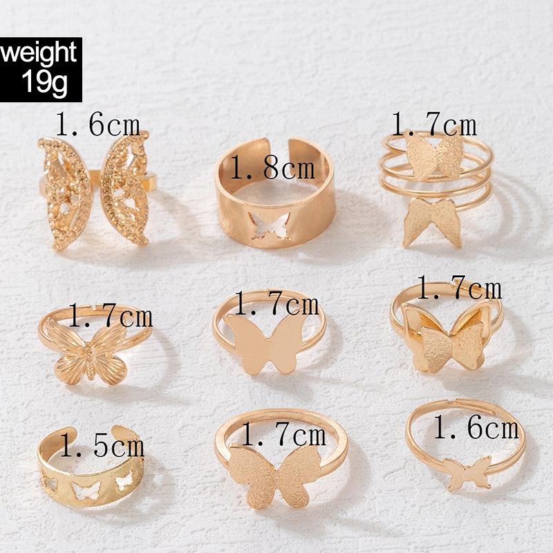 Juego de Anillos Europeos y Americanos Nuevo Bohemio Mariposa Geométrico Simple Hueco Juego de Nueve Anillos