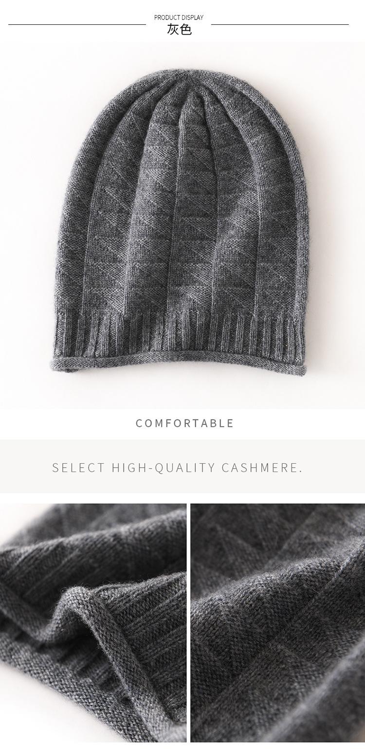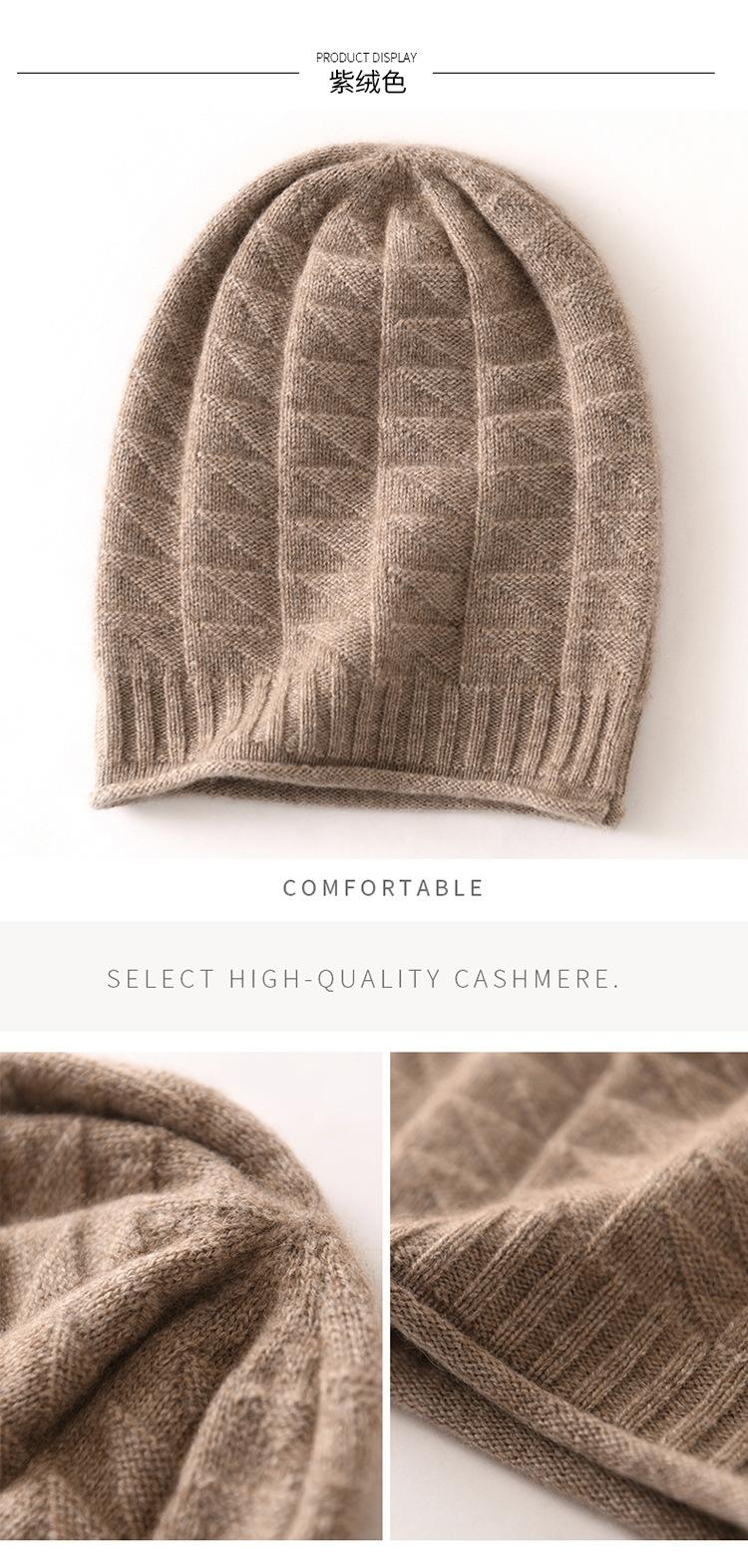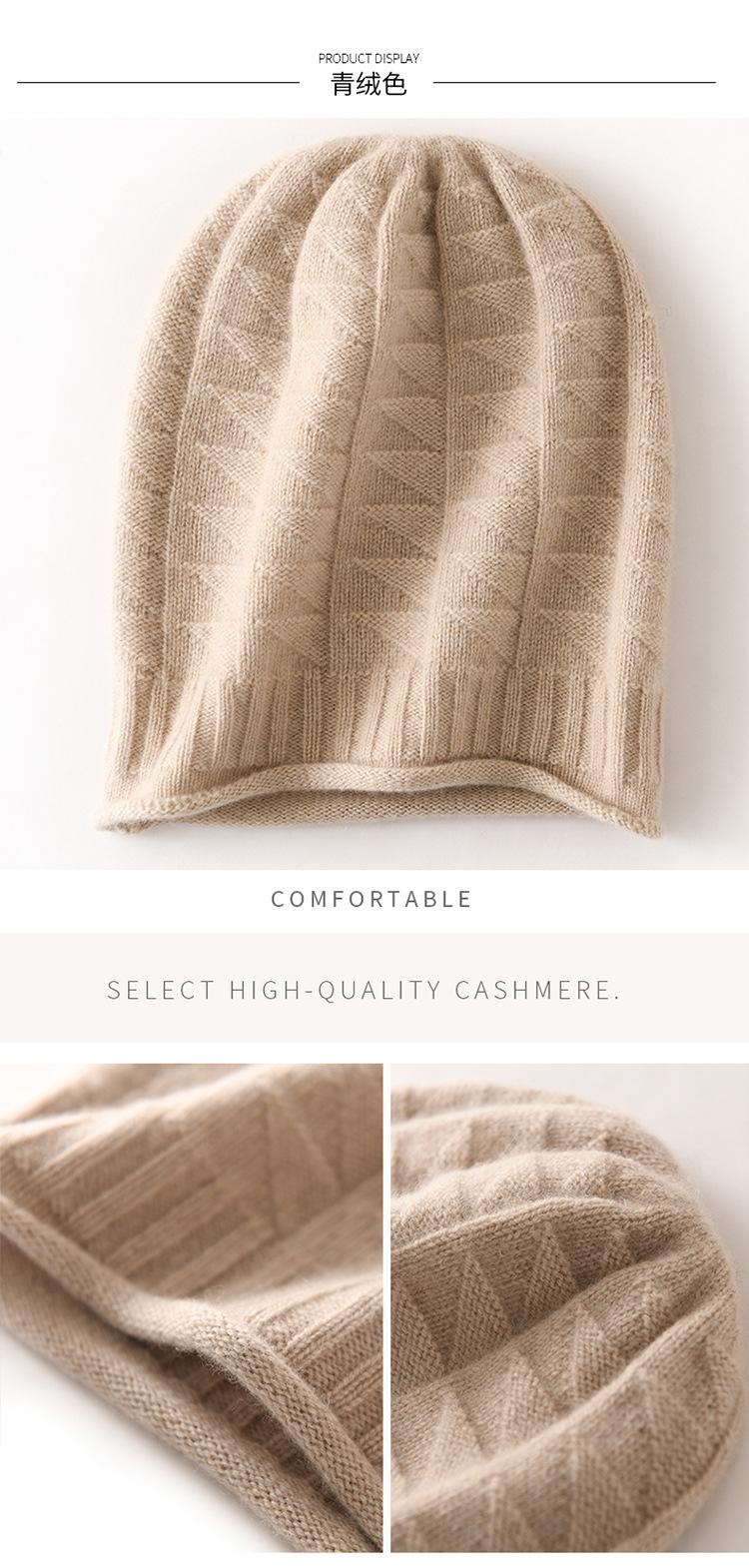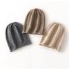 Nuevo gorro de cachemira de color puro para mujer, gorro de punto de cachemira grueso y cálido de invierno, gorro con puntera y pelo.