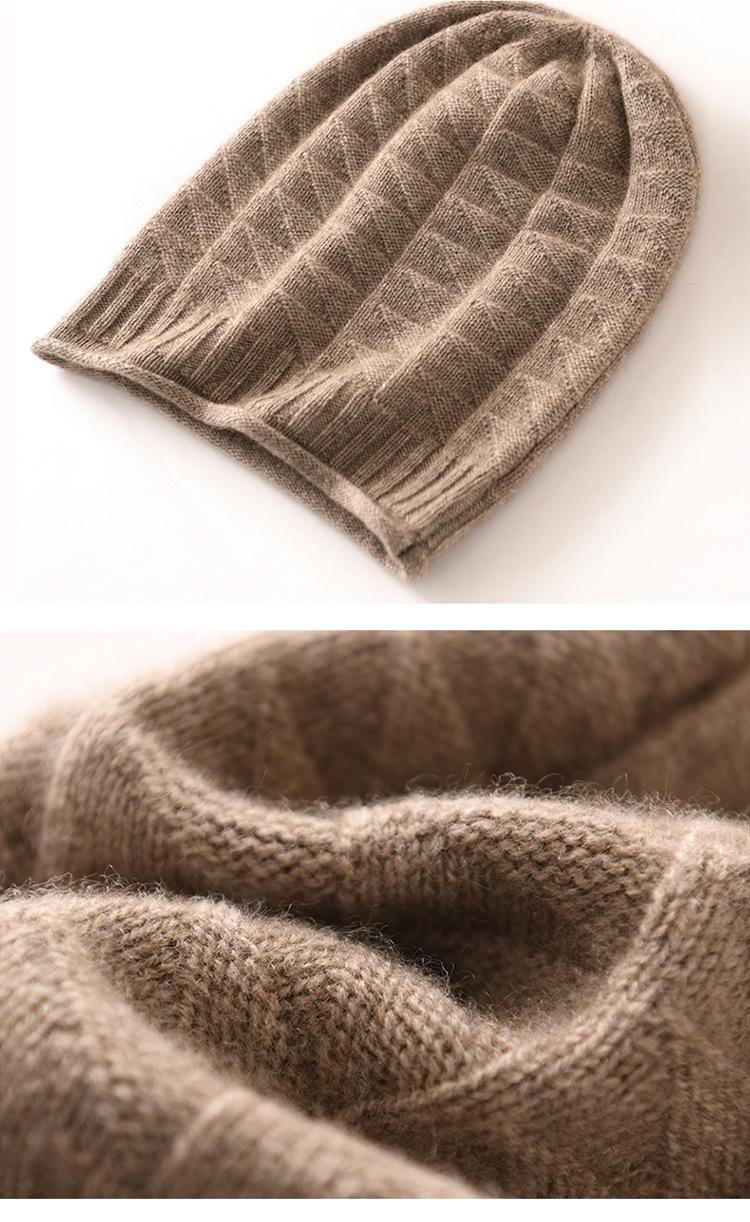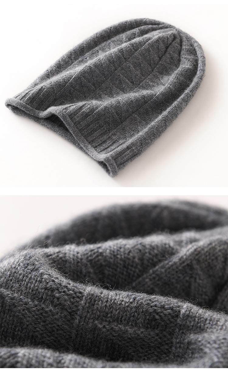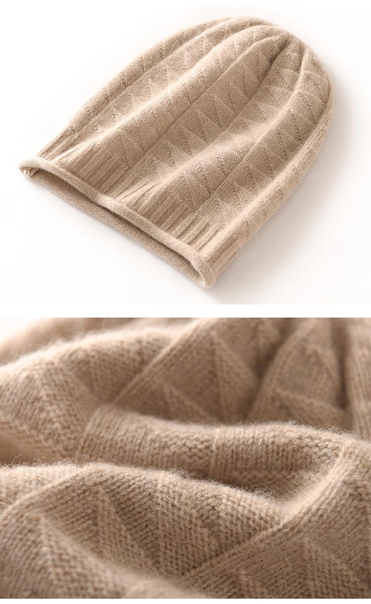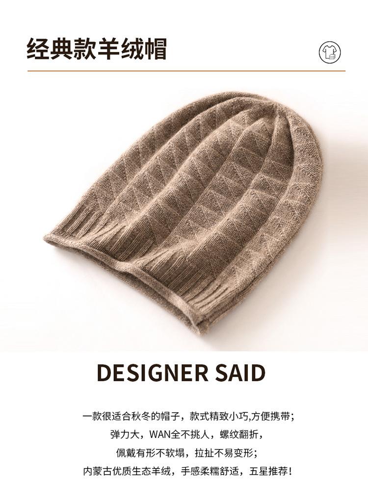Nuevo gorro de cachemira de color puro para mujer, gorro de punto de cachemira grueso y cálido de invierno, gorro con puntera y pelo.
