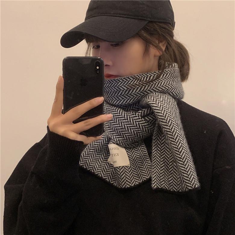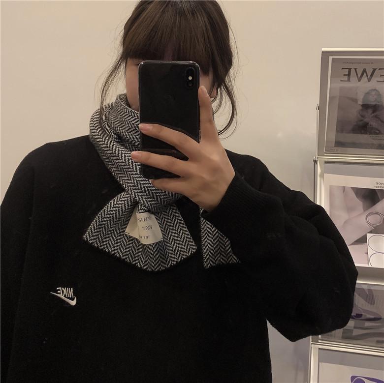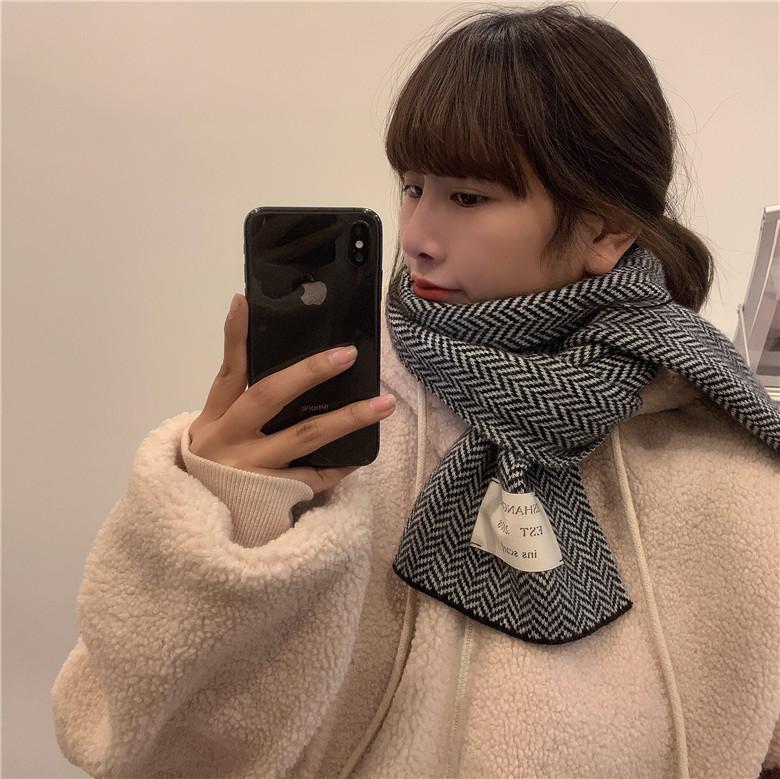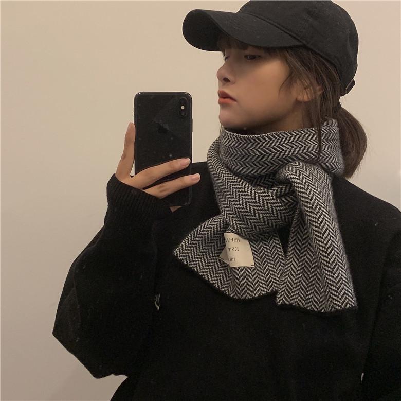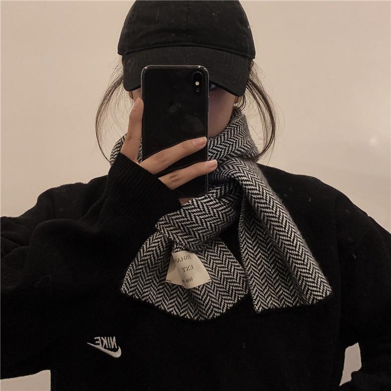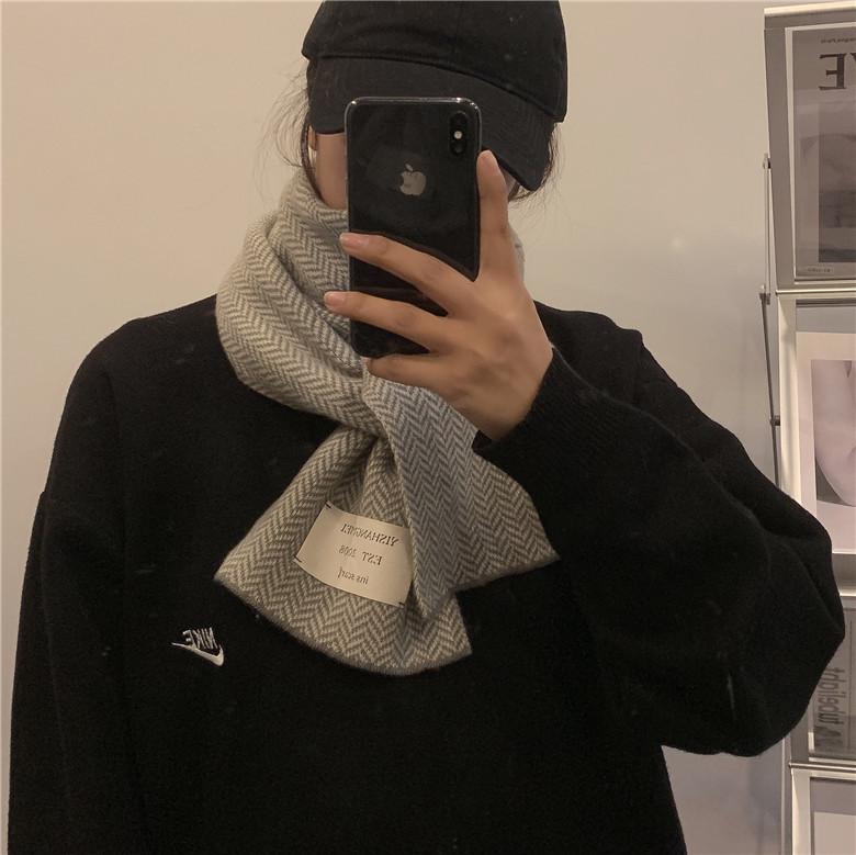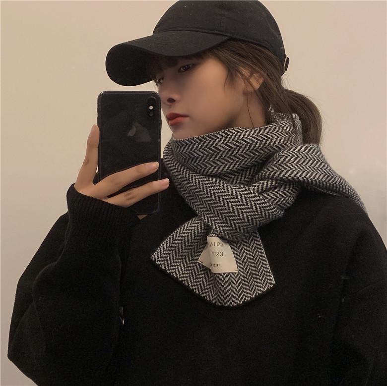 Bufanda pequeña retro de moda de espiga de Corea del Sur, cálida para otoño e invierno, versátil para estudiantes, bufanda casual ins para hombre