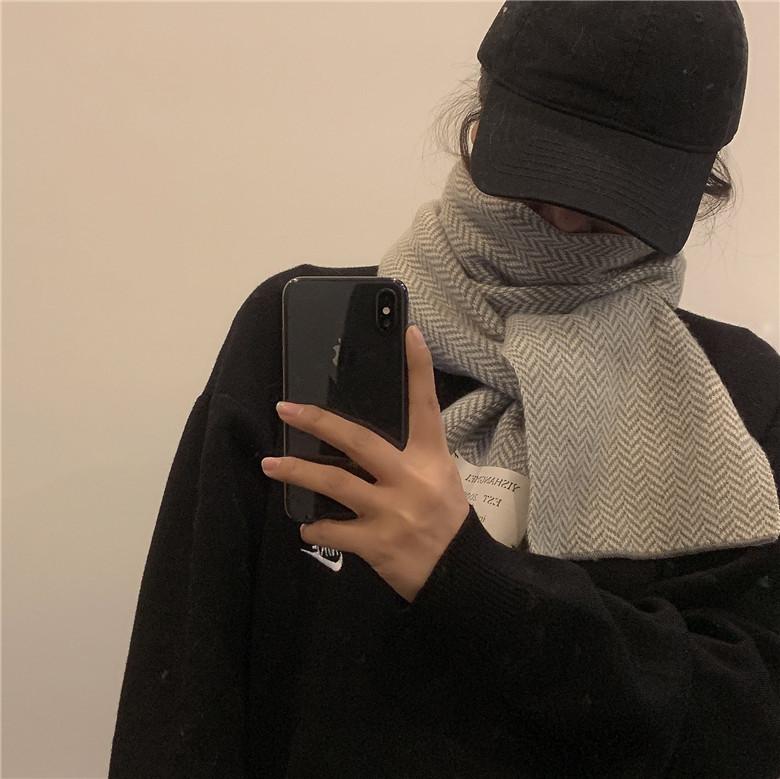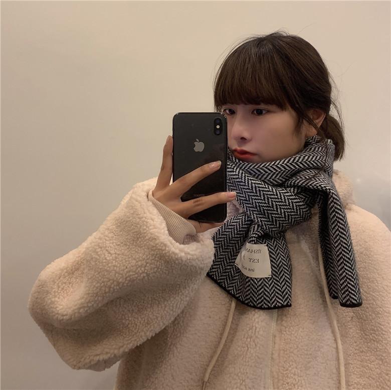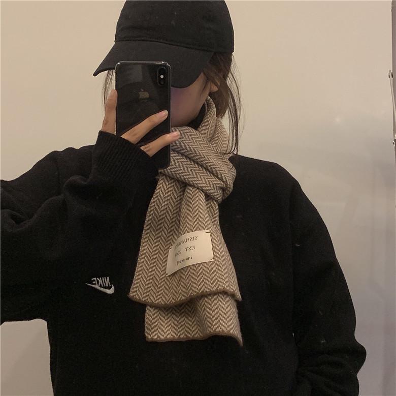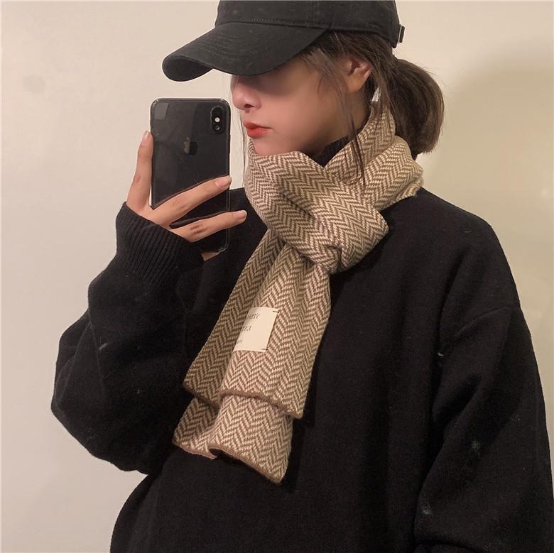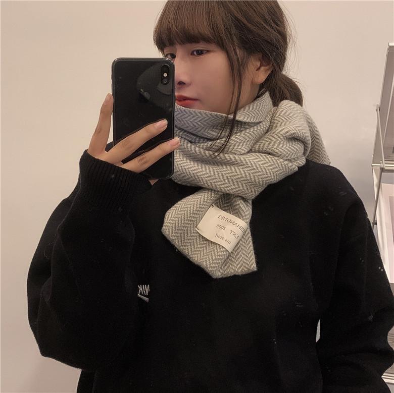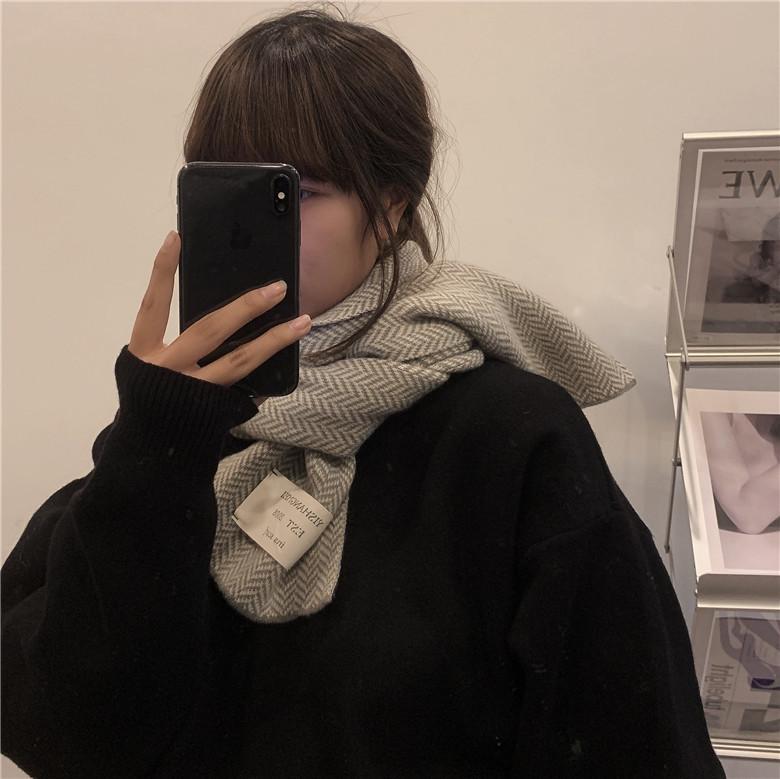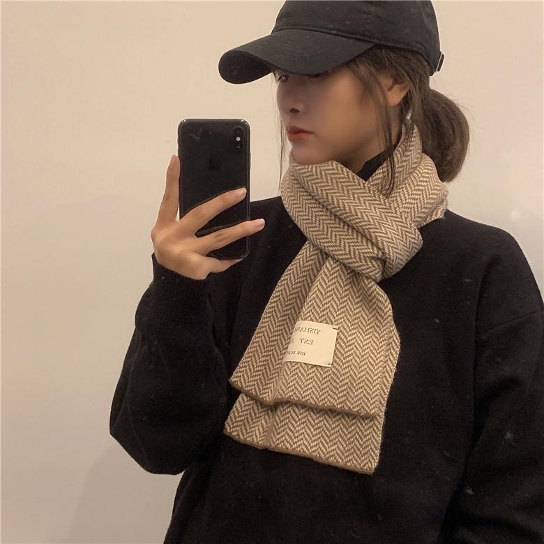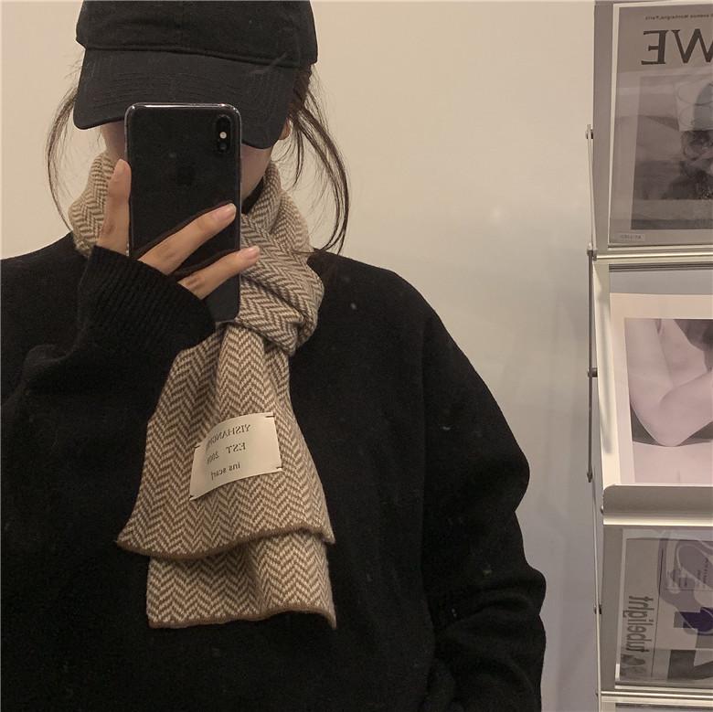 Bufanda pequeña retro de moda de espiga de Corea del Sur, cálida para otoño e invierno, versátil para estudiantes, bufanda casual ins para hombre