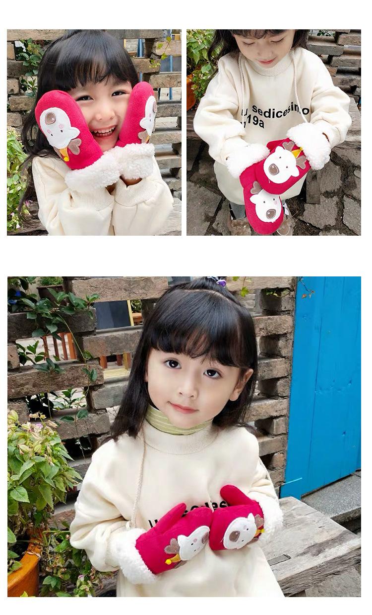 Guantes de Navidad para Niños de Otoño e Invierno Guantes de Dibujos Animados de Color Sólido Coreanos Guantes Cálidos de Terciopelo de Alce para Niños y Niñas