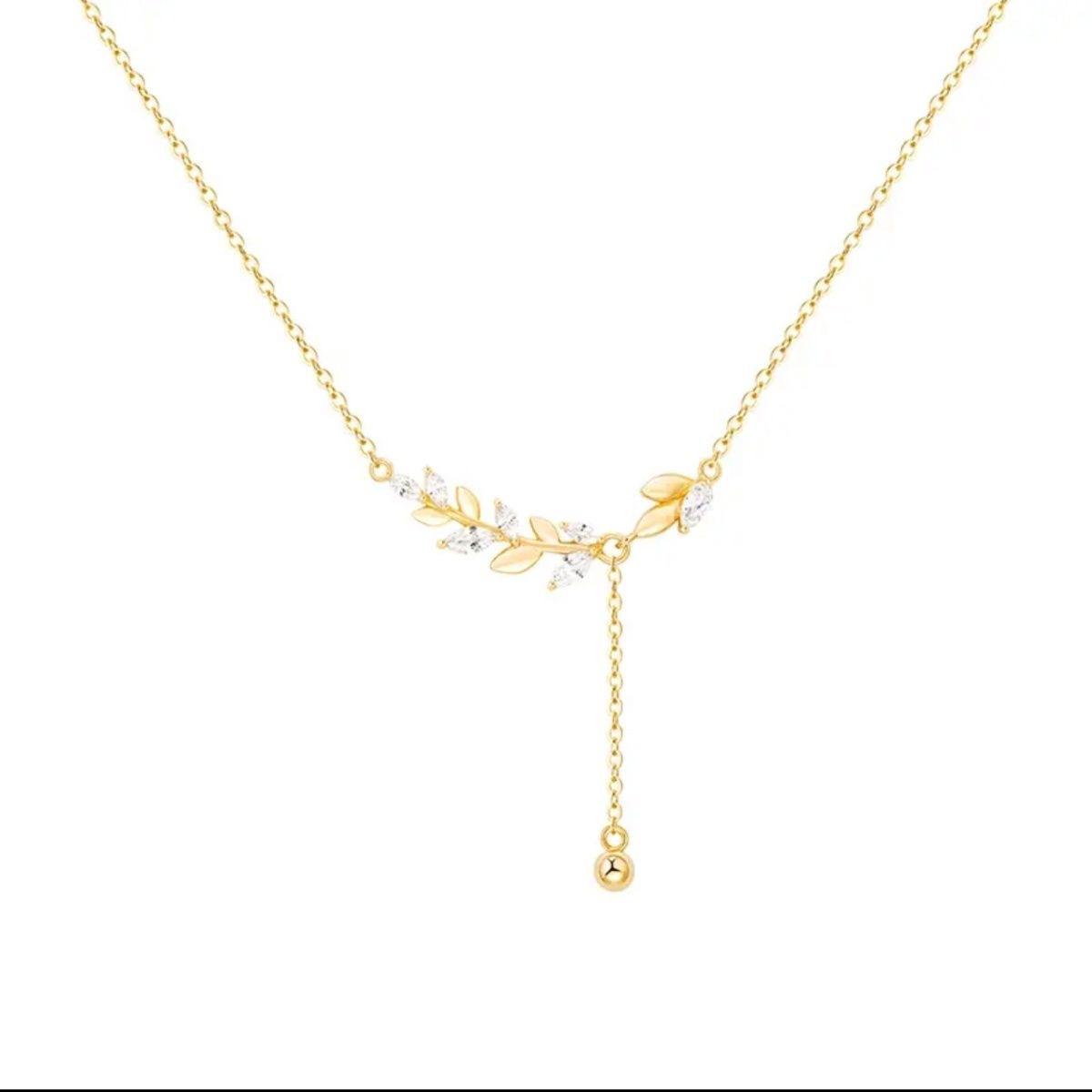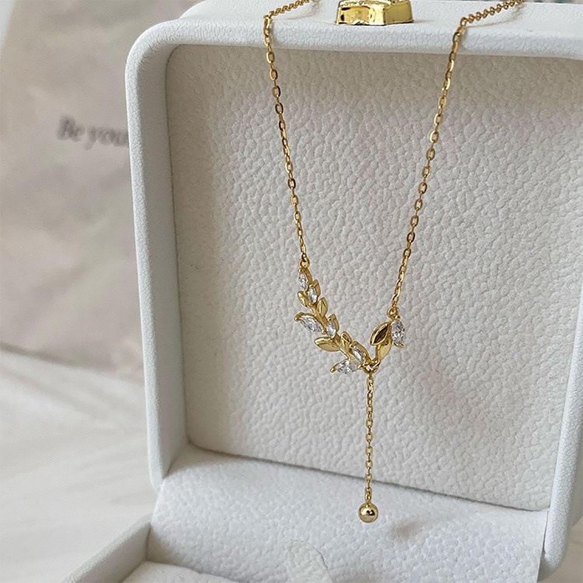 Collar de trigo para mujer, ligero, de lujo, con diseño de nicho, con borlas de diamantes y hojas, cadena de clavícula de acero de titanio, nueva moda