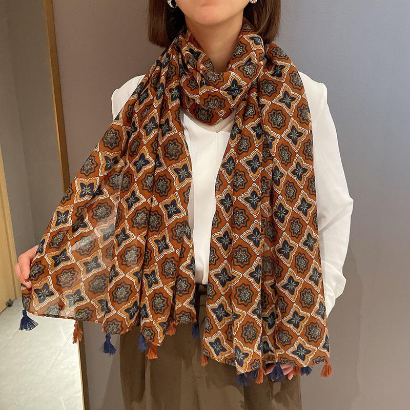 Bufanda de Algodón y Lino Estilo Étnico Bohemio para Mujer Primavera y Verano Viaje Protector Solar Toalla de Playa Chal Suave y Delgado