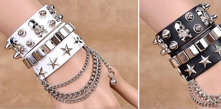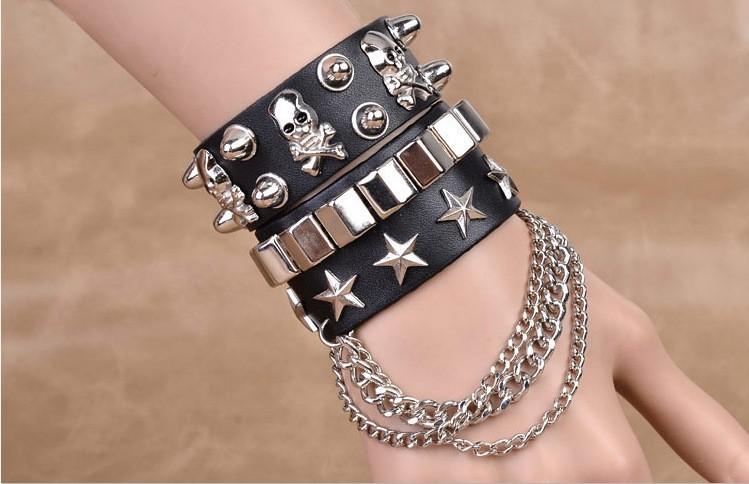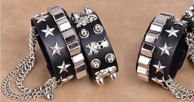 Venta caliente de Temu [traje] Pulsera ancha de cuero de moda europea y americana personalidad dominadora remache de calavera punk hip hop