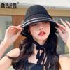 Sombrero de copa vacío de primavera y verano para mujer, sombrero con cubierta facial, ala grande, protección solar para exteriores, cara pequeña, plegable, versátil, sombrero para el sol