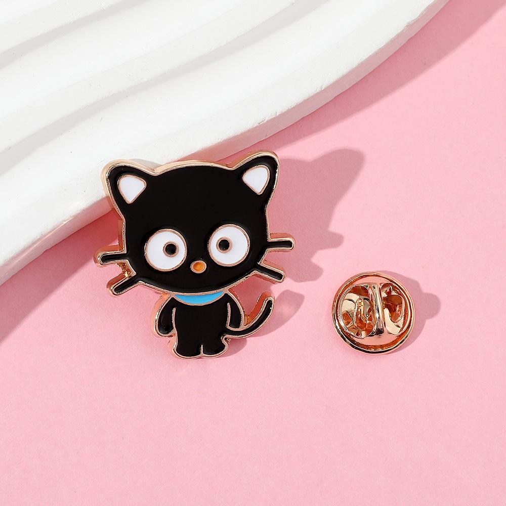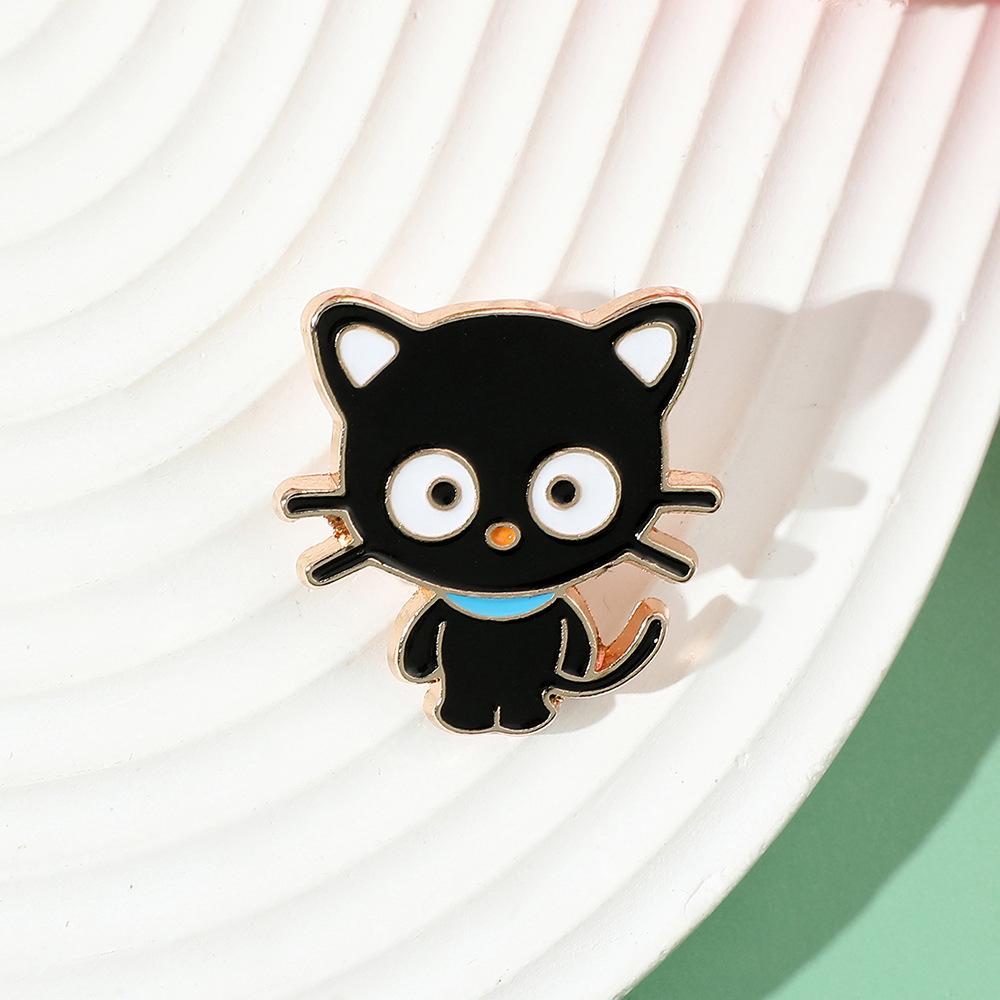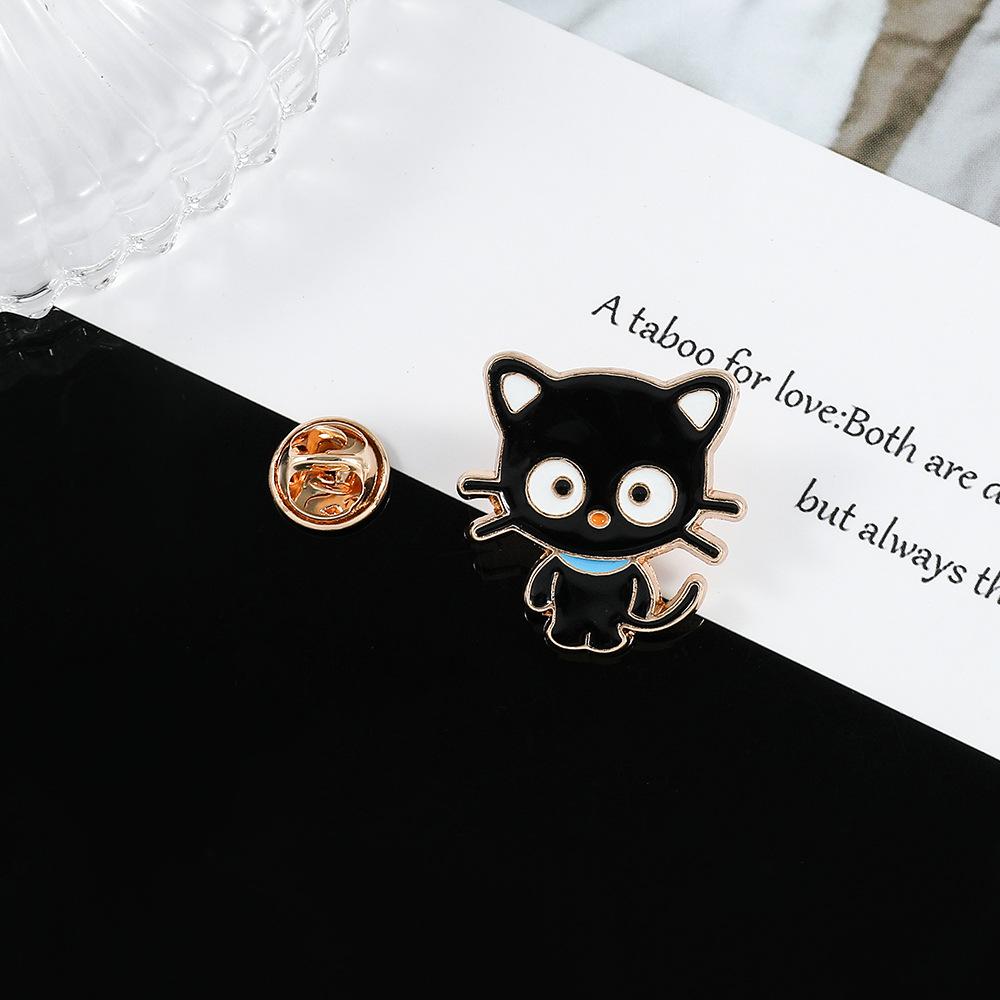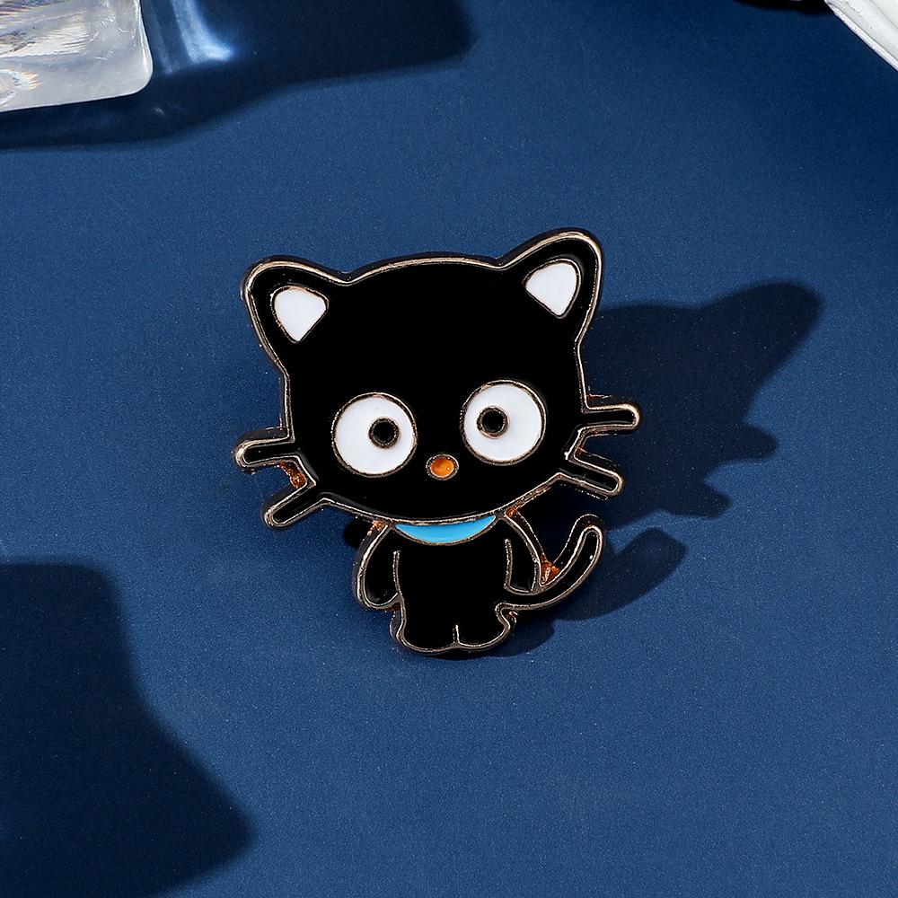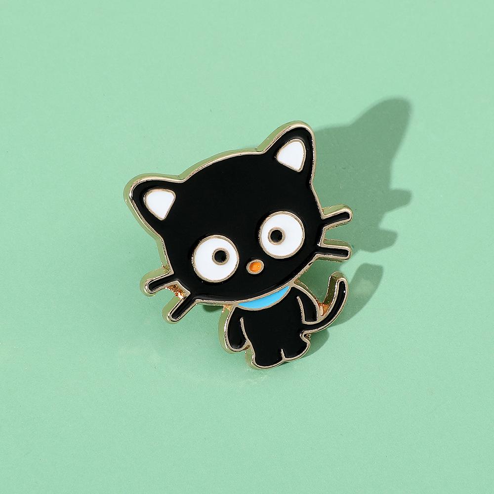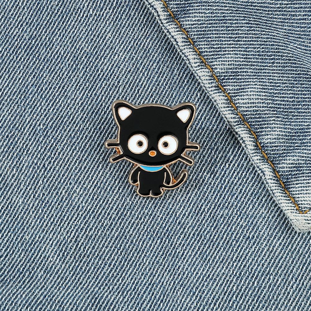Insignia de metal con diseño de gato de dibujos animados, insignia de la serie de animales pequeños de gato negro, accesorio para ropa de estudiante, broche
