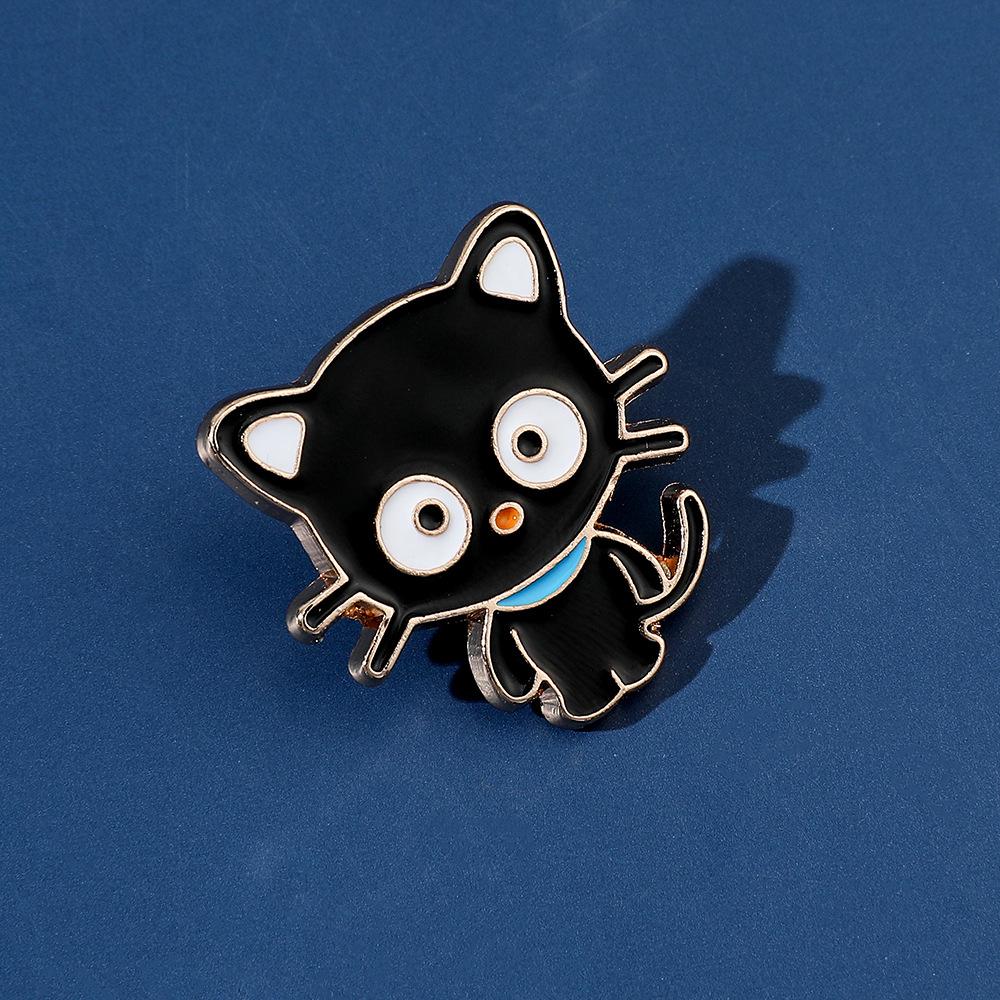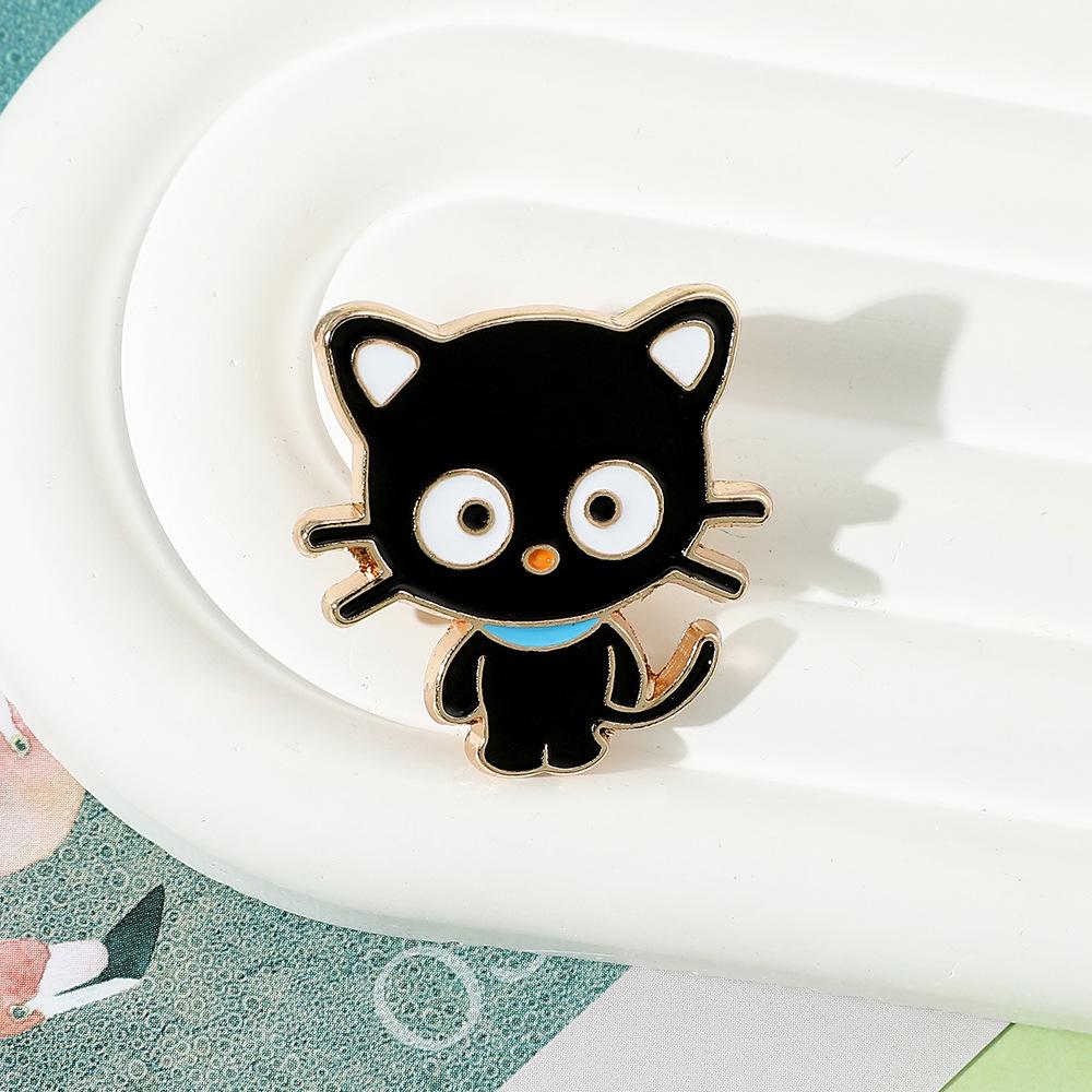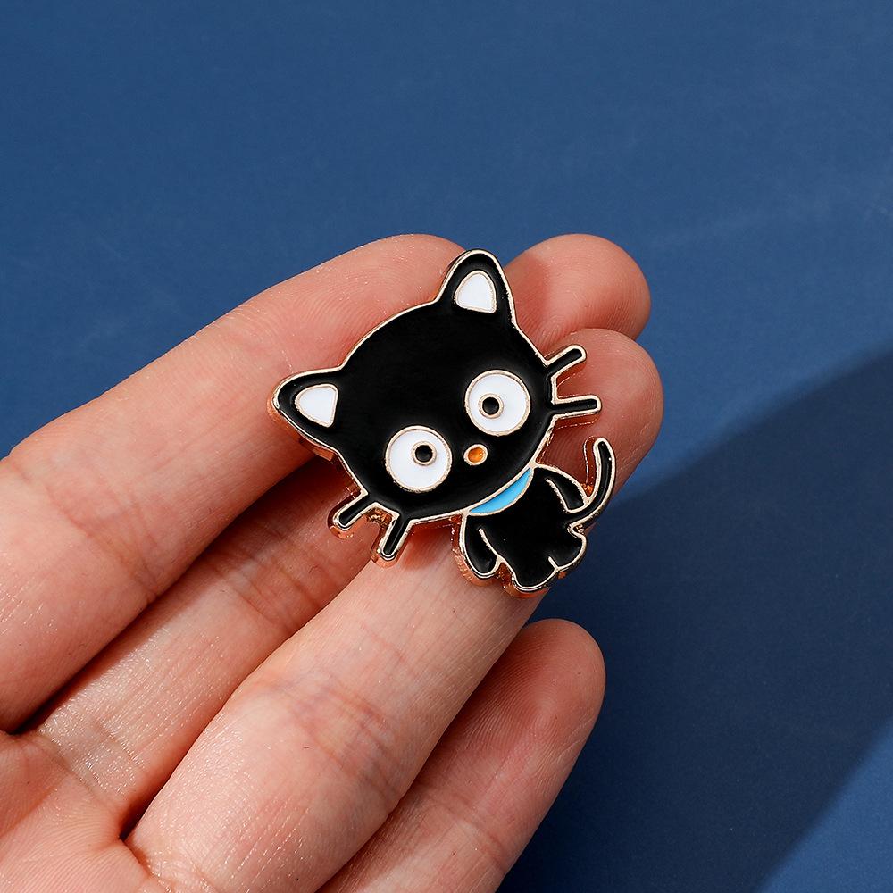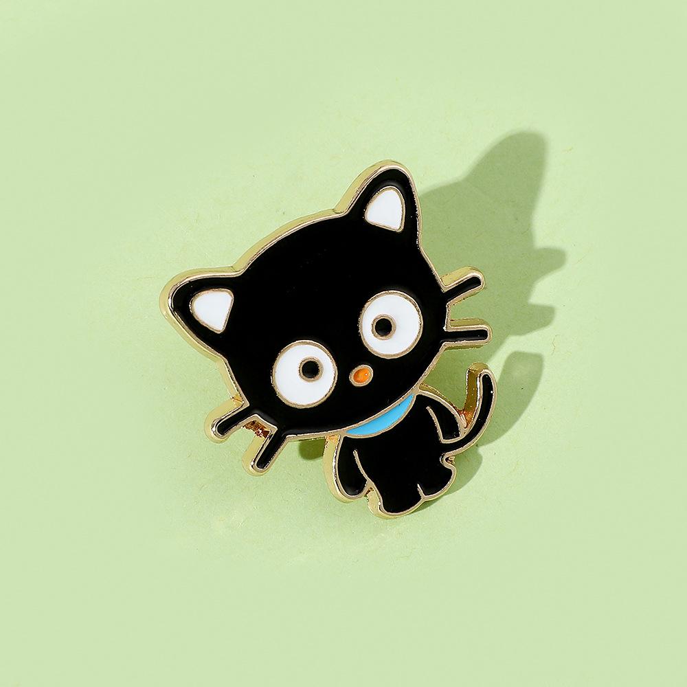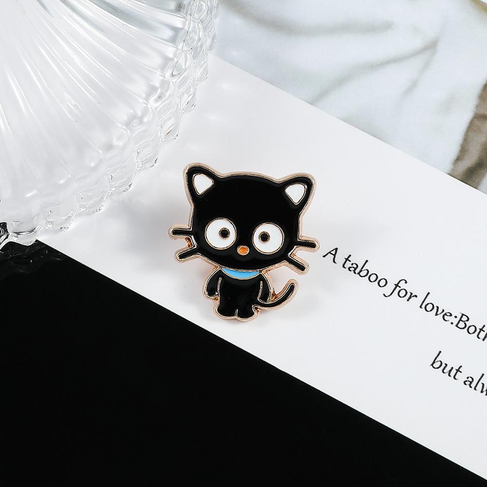 Insignia de metal con diseño de gato de dibujos animados, insignia de la serie de animales pequeños de gato negro, accesorio para ropa de estudiante, broche