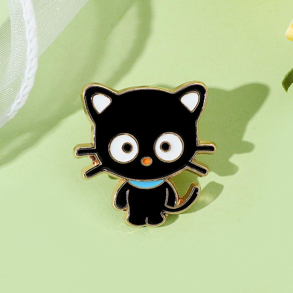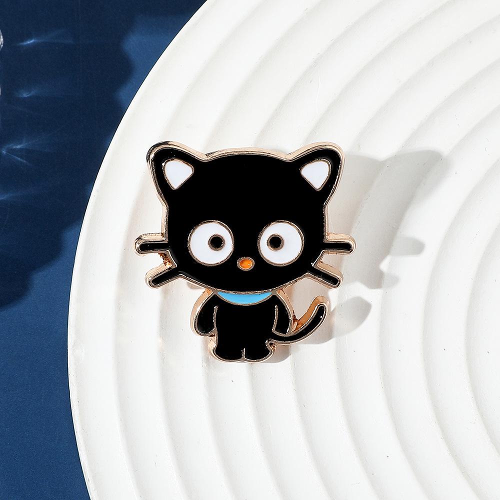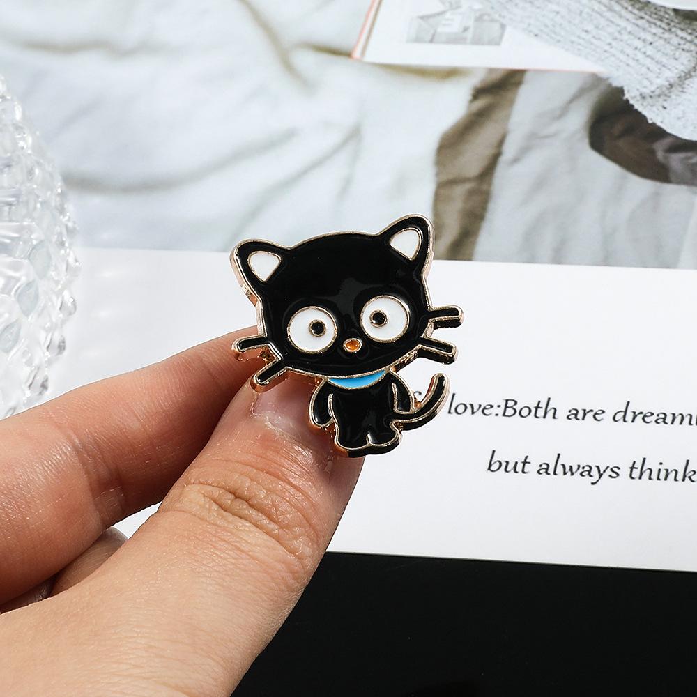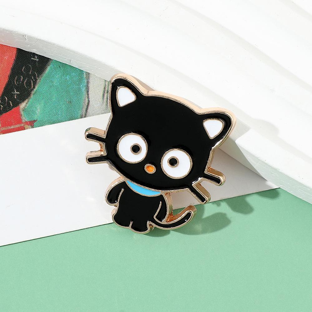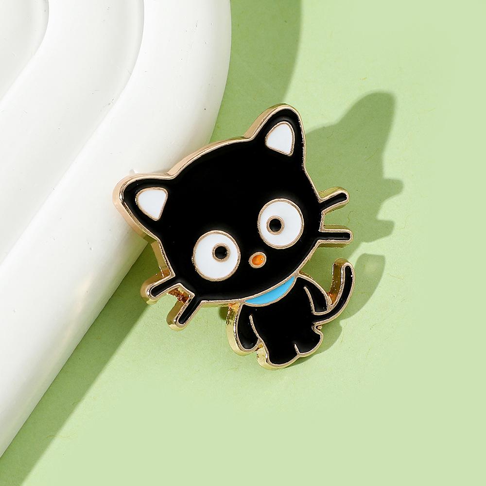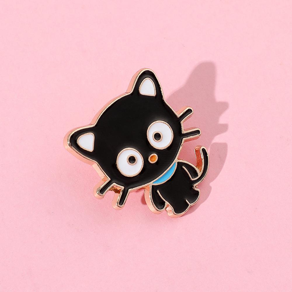 Insignia de metal con diseño de gato de dibujos animados, insignia de la serie de animales pequeños de gato negro, accesorio para ropa de estudiante, broche