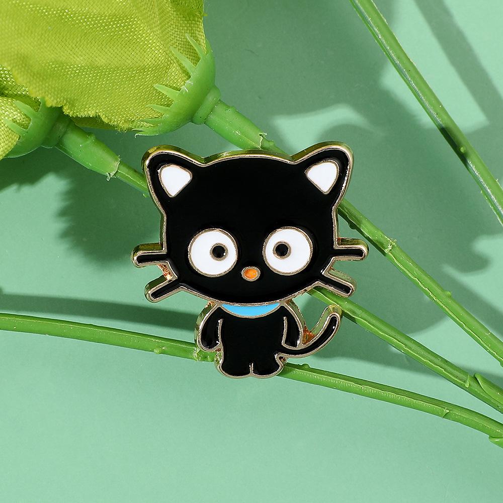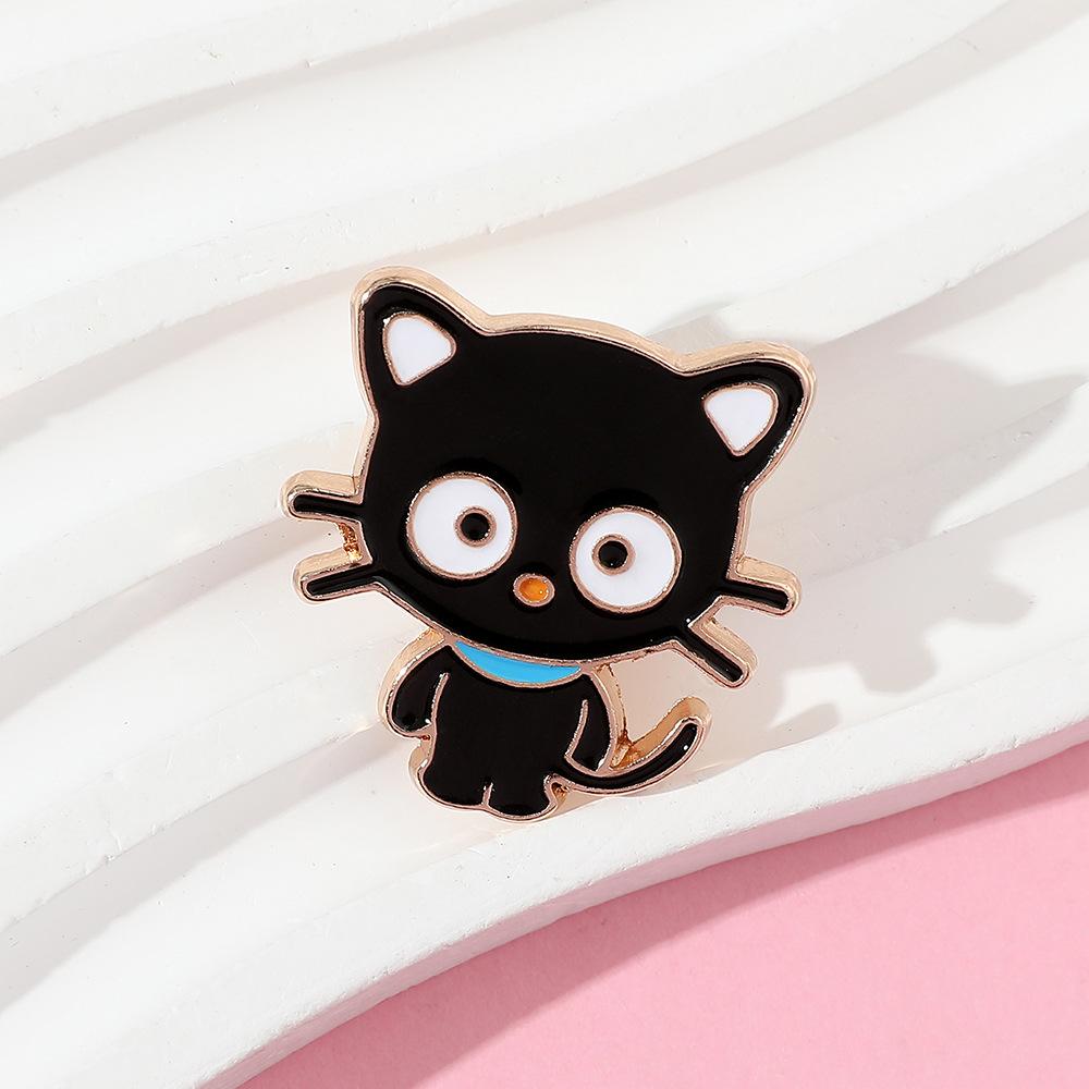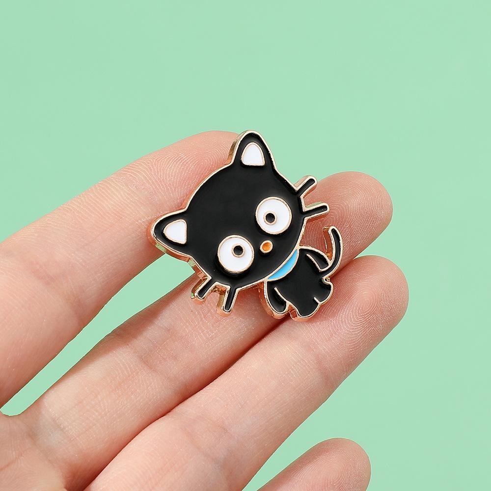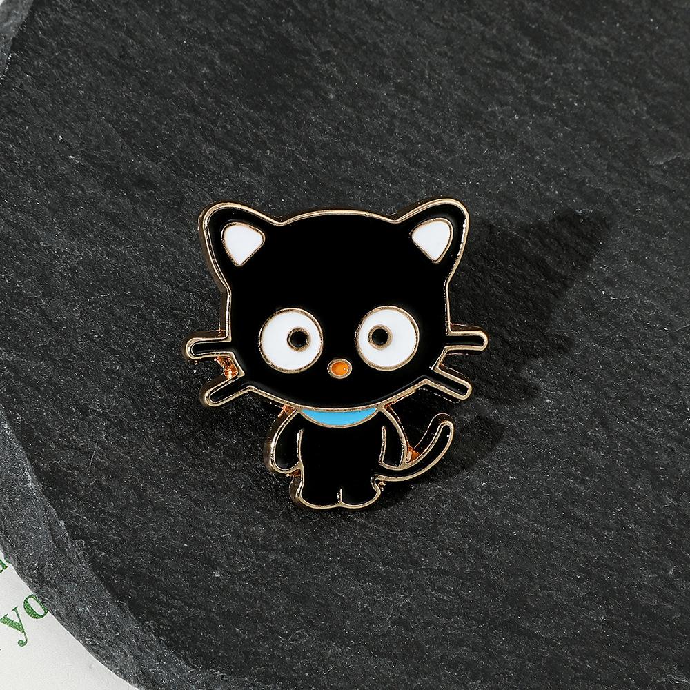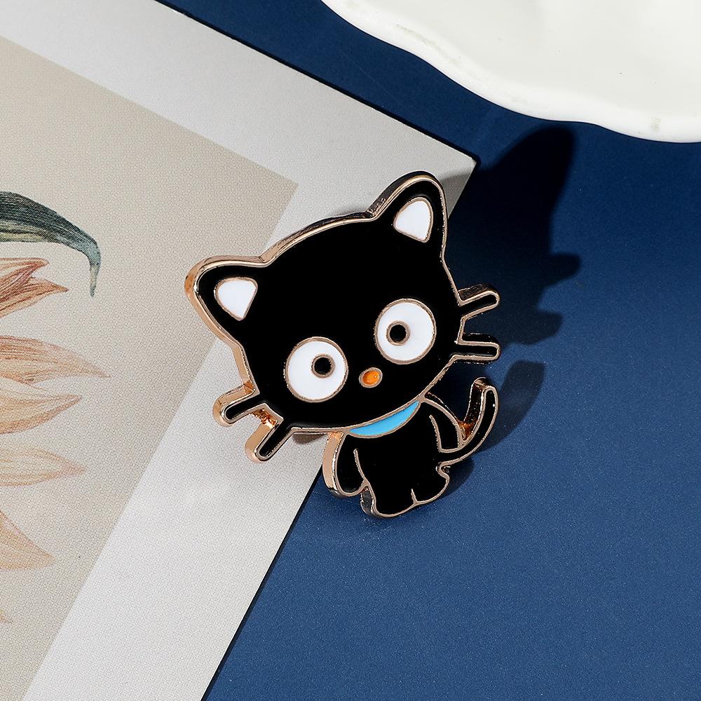 Insignia de metal con diseño de gato de dibujos animados, insignia de la serie de animales pequeños de gato negro, accesorio para ropa de estudiante, broche
