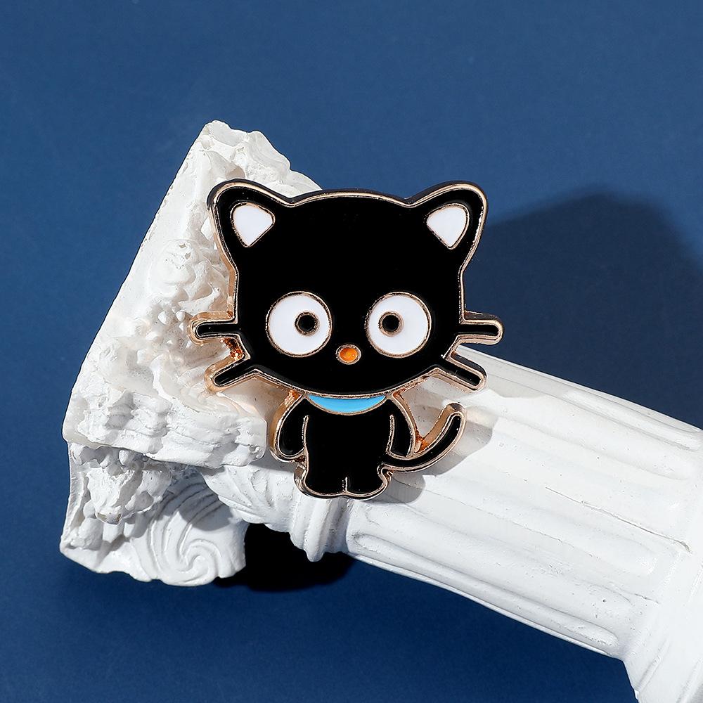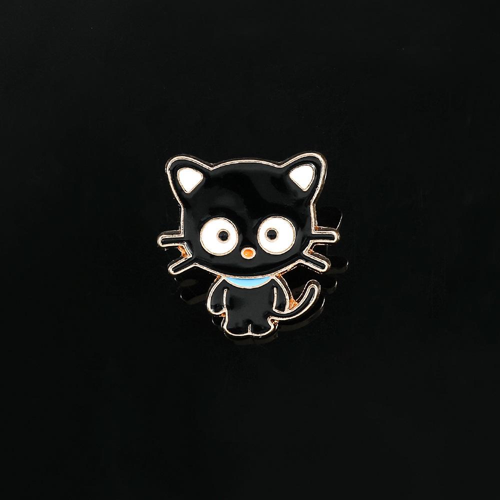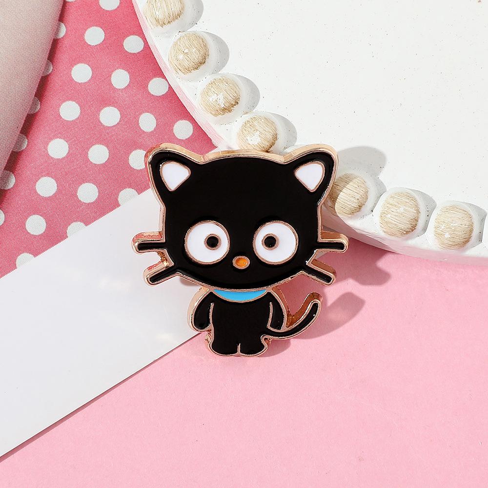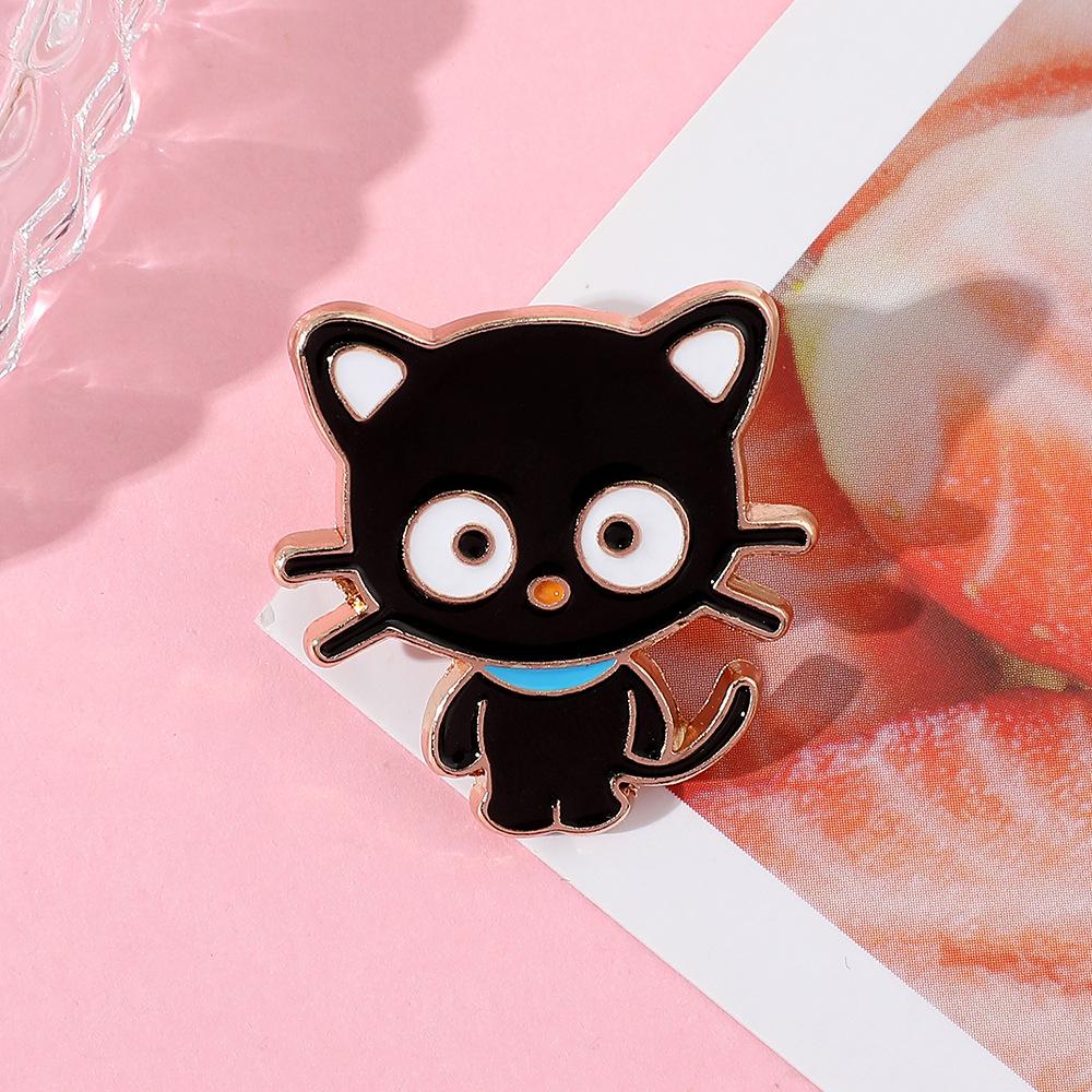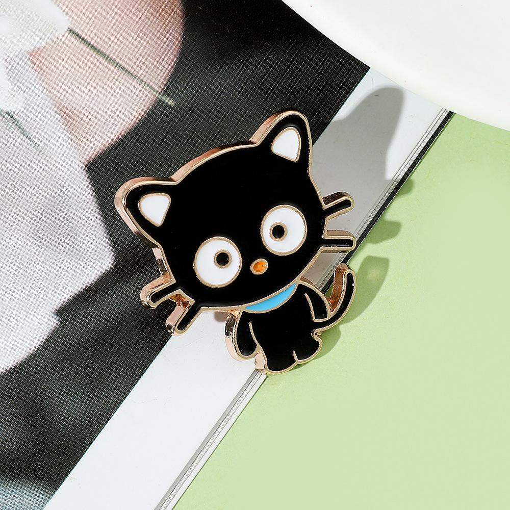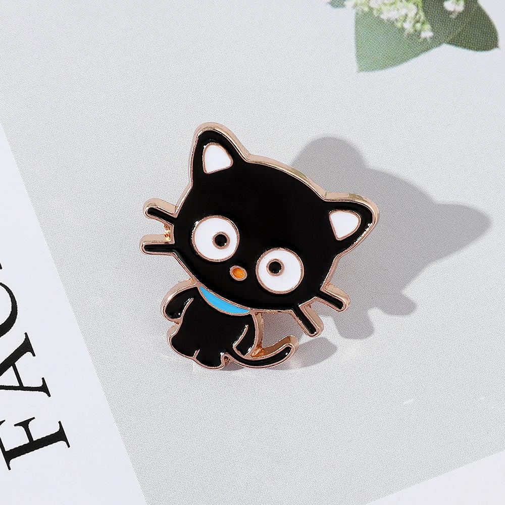 Insignia de metal con diseño de gato de dibujos animados, insignia de la serie de animales pequeños de gato negro, accesorio para ropa de estudiante, broche