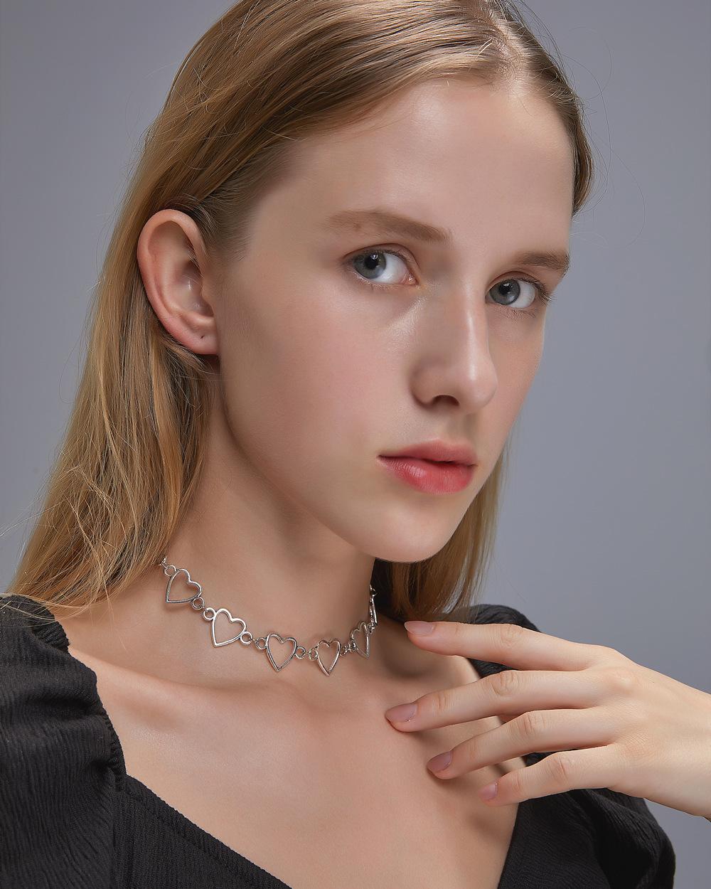 Europa y Estados Unidos nueva cadena simple hueca de amor para el cuello aleación collar de corazón de durazno viento frío hip hop joyería para el cuello al por mayor