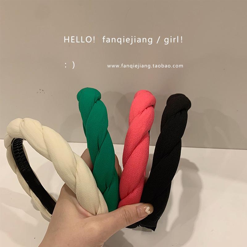 Diadema cruzada de esponja de color sólido simple con parte superior craneal de sensación de alto grado europea y americana, estilo extranjero, banda para el cabello retro para salir de verano