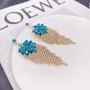 Pendientes de diamantes de imitación de colores étnicos de moda europea y americana 2023, pendientes exagerados de cristal colorido, pendientes largos con borlas