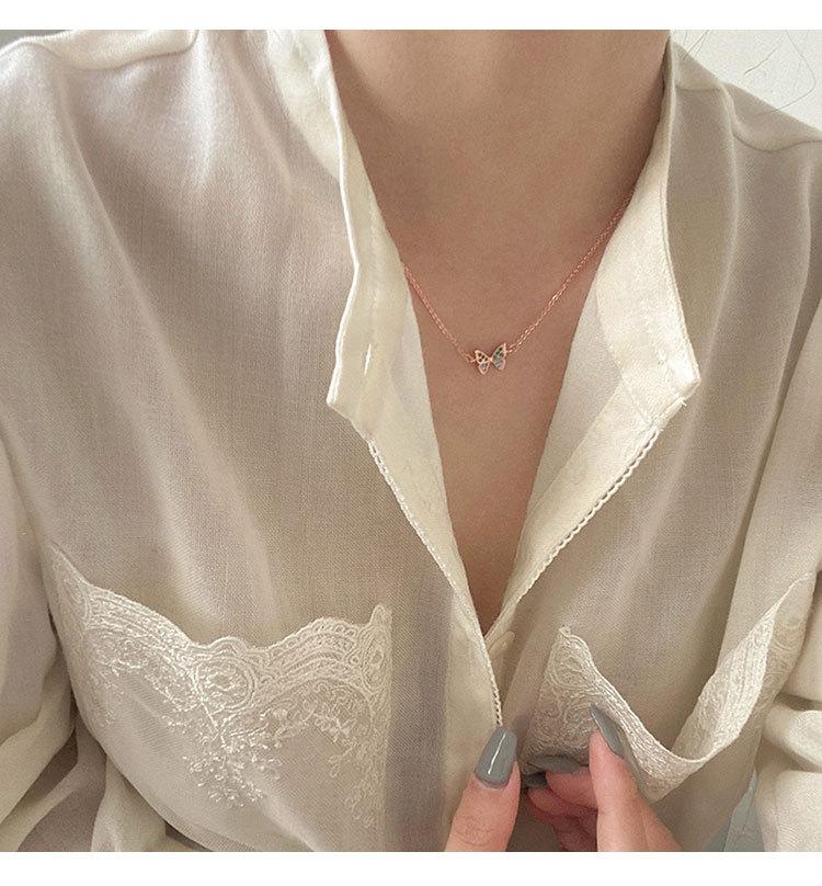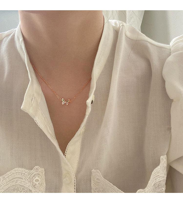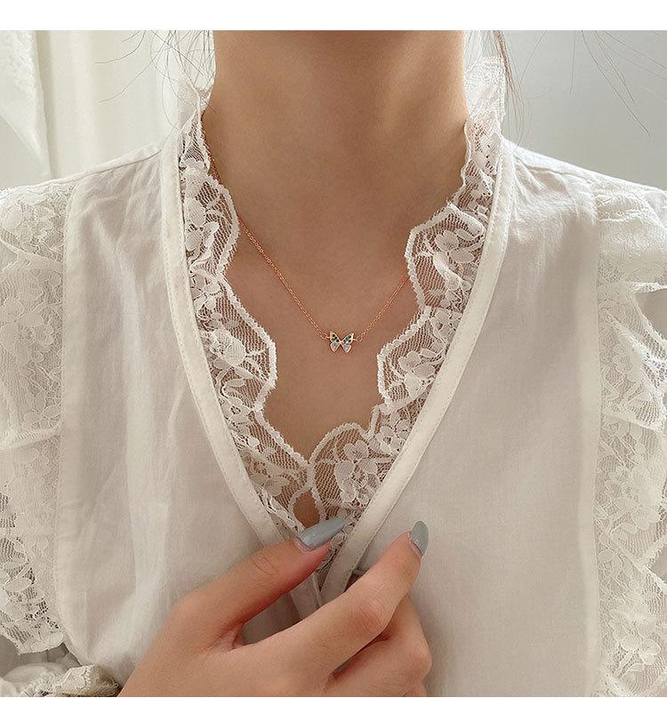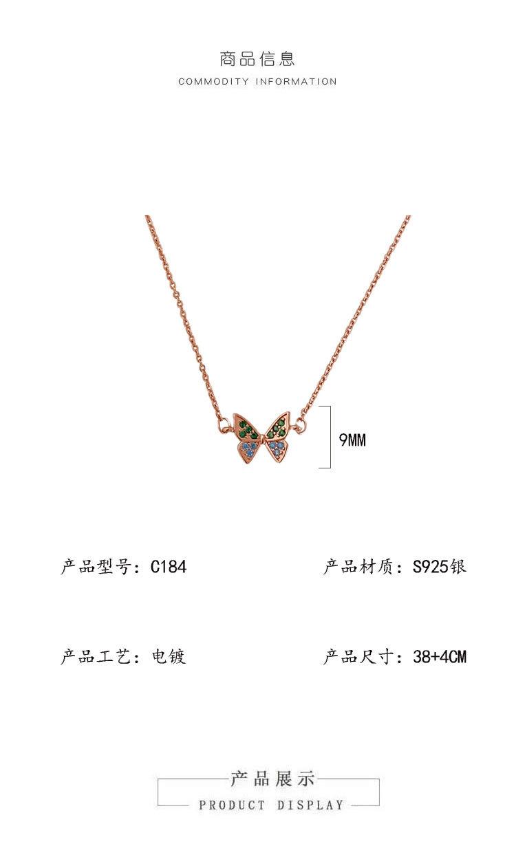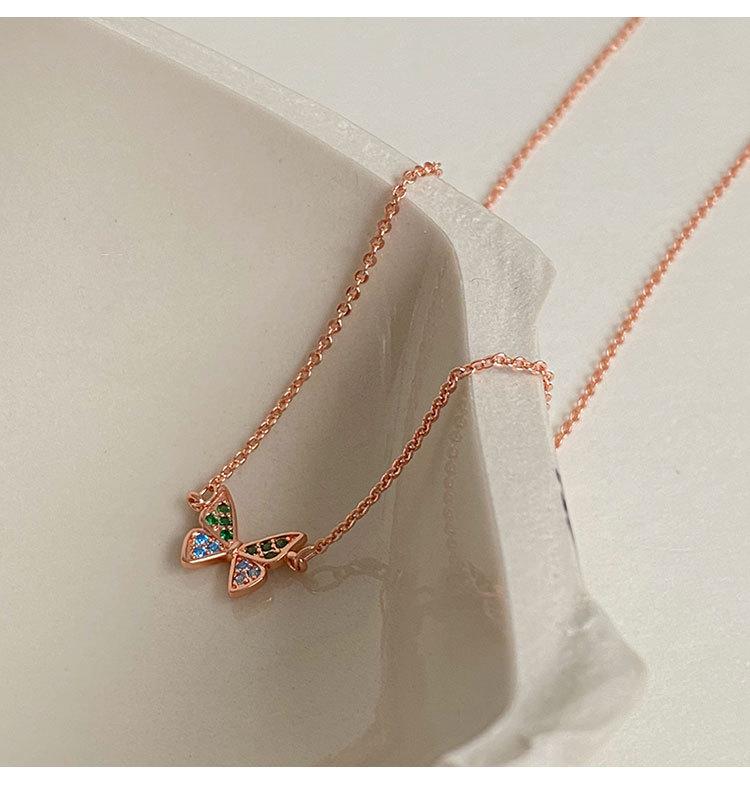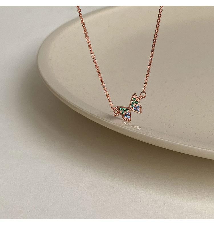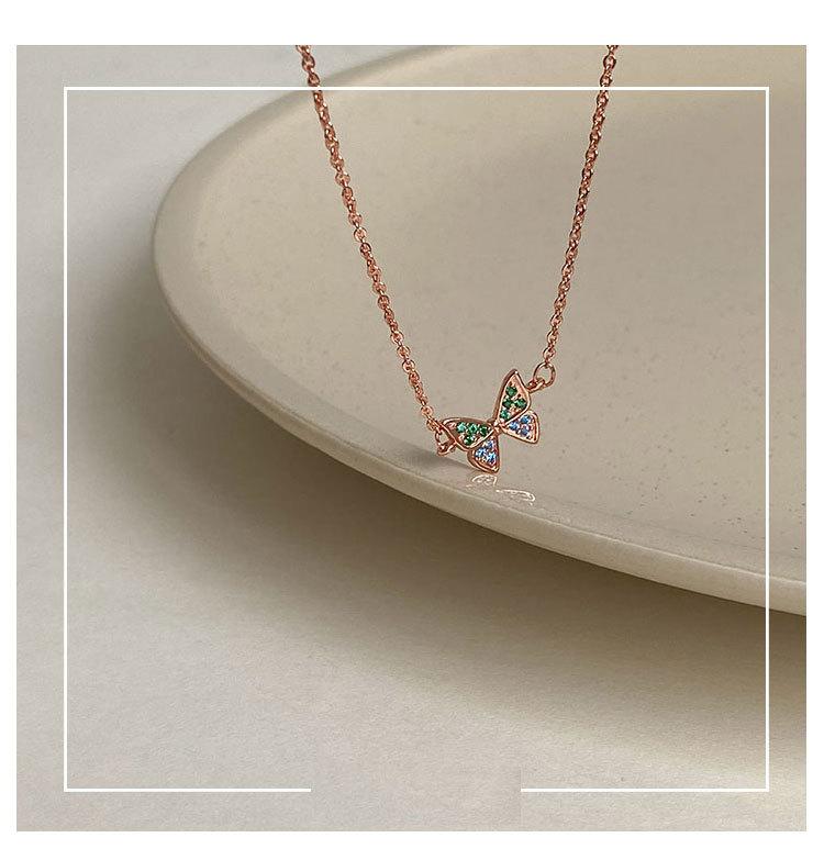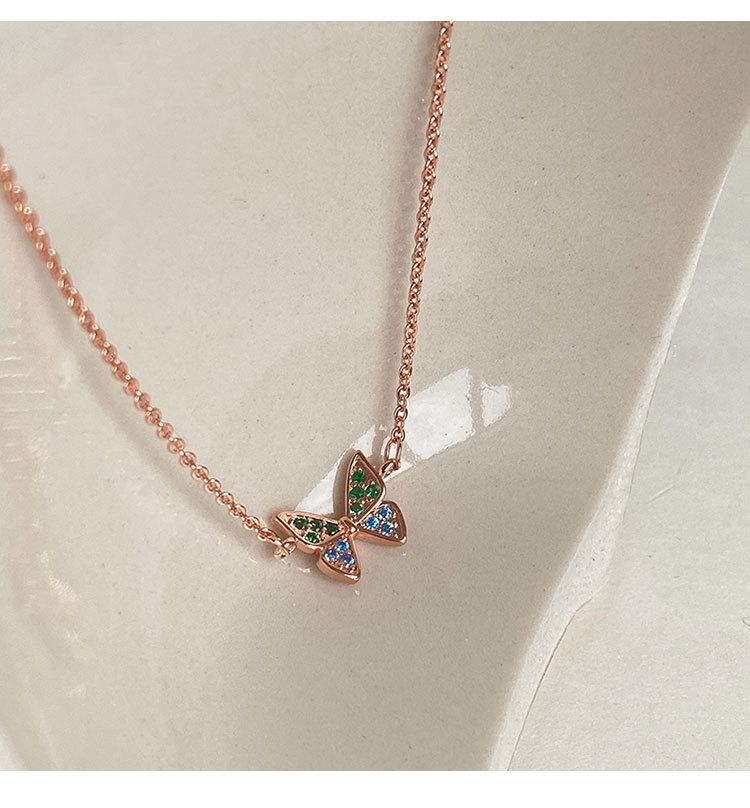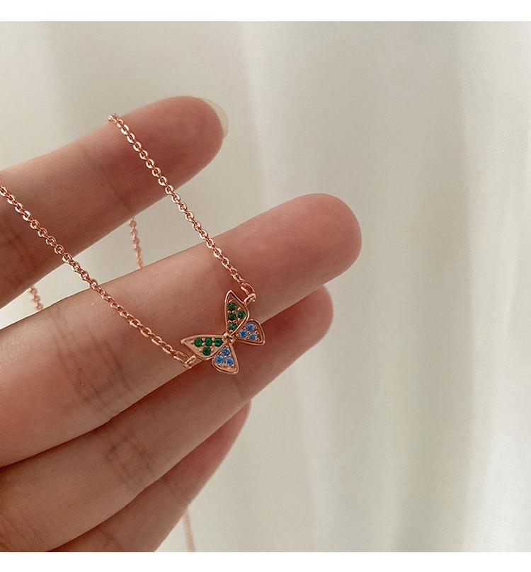 Collar de mariposa de plata Jufeng S925 con nueva personalidad, cadena de clavícula con diamantes de imitación de colores, cadena de cuello simple y elegante a la moda.