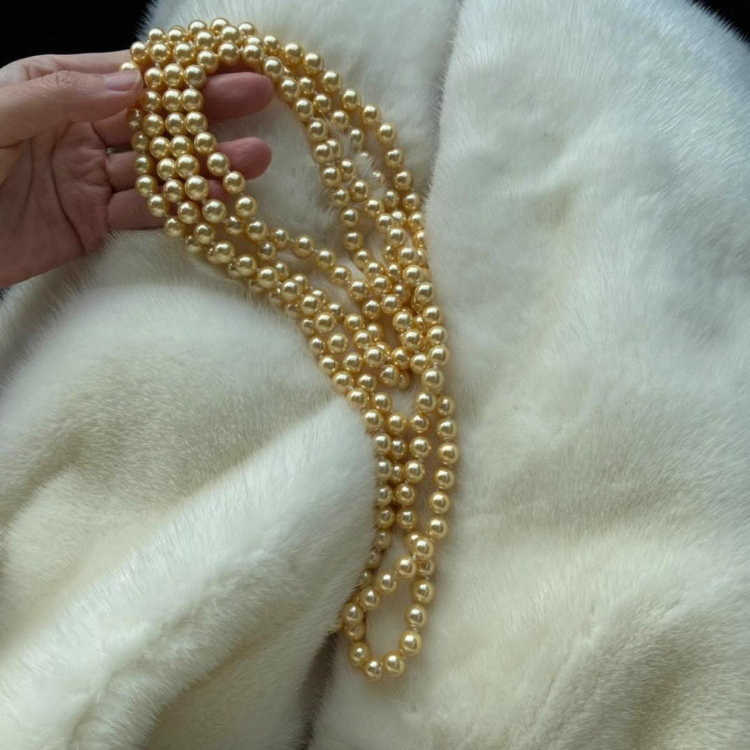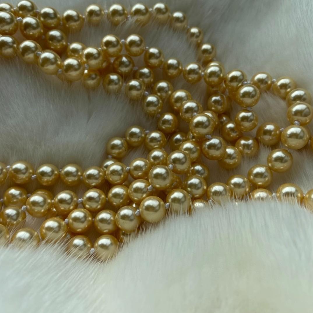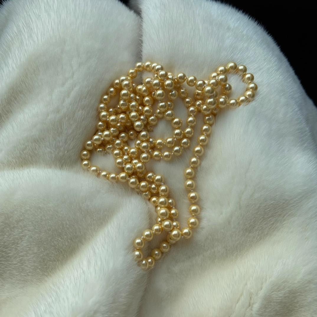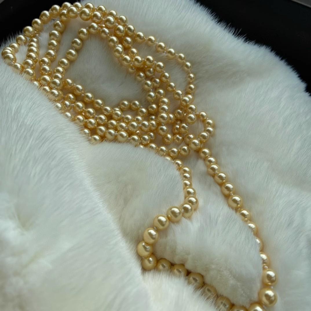 Collar de Cuentas de Concha de 8 mm Nicho Oro Té Otoño e Invierno Cadena para Suéter de Mujer Larga Multicapa 180 cm