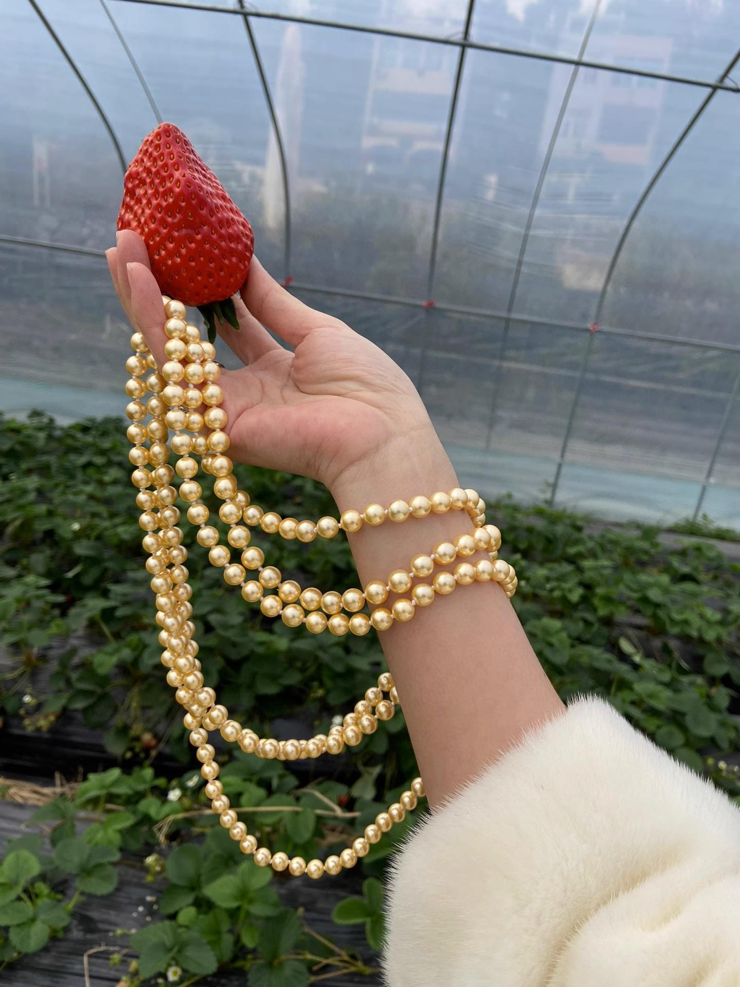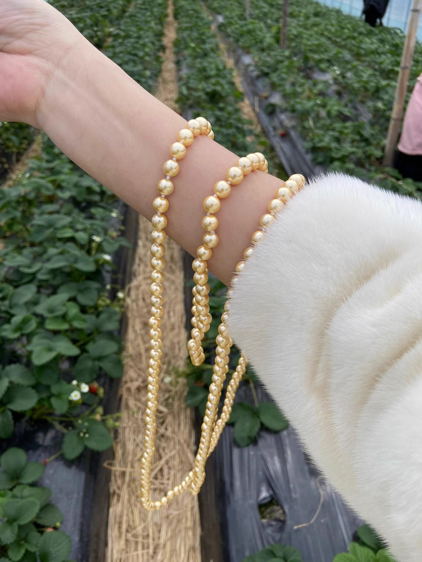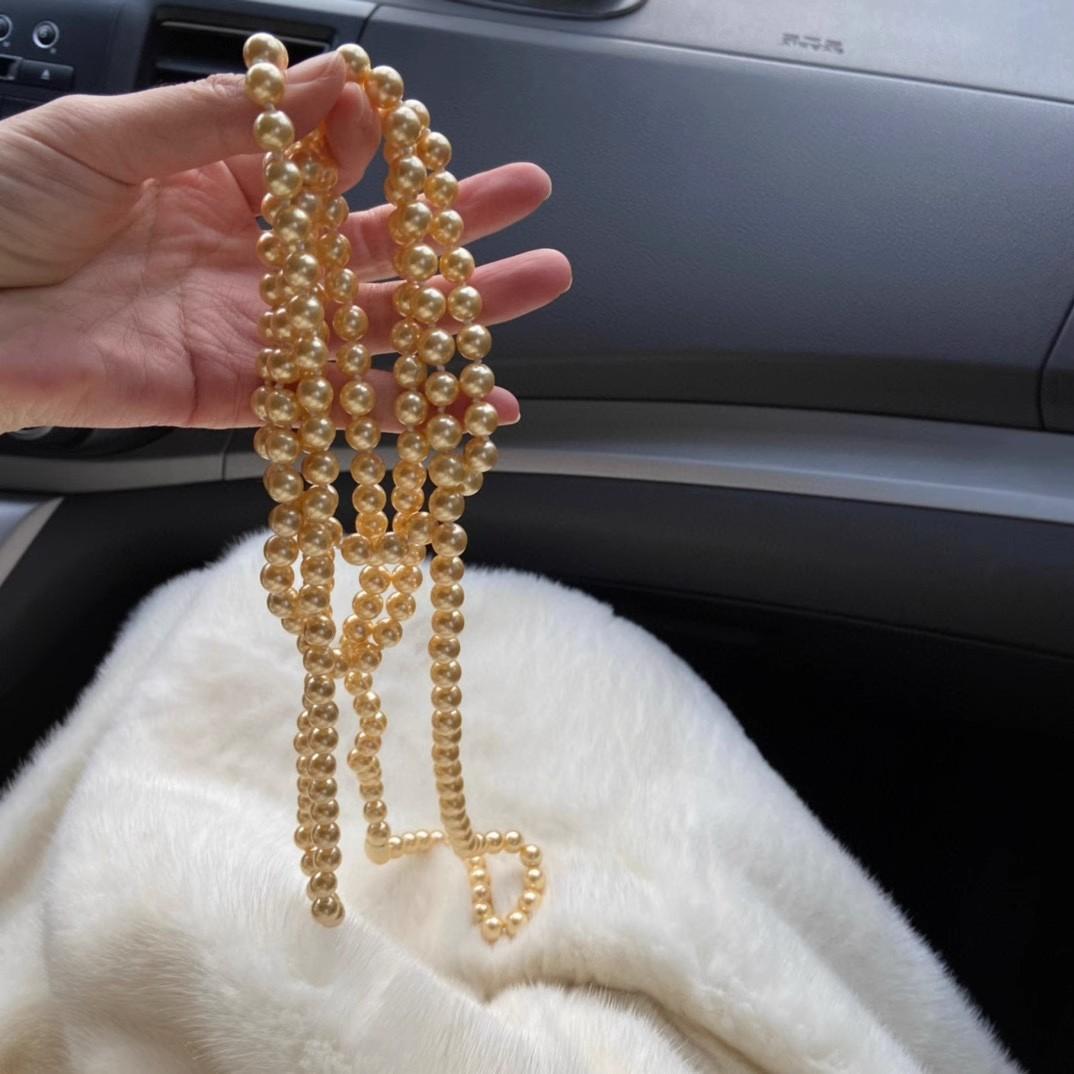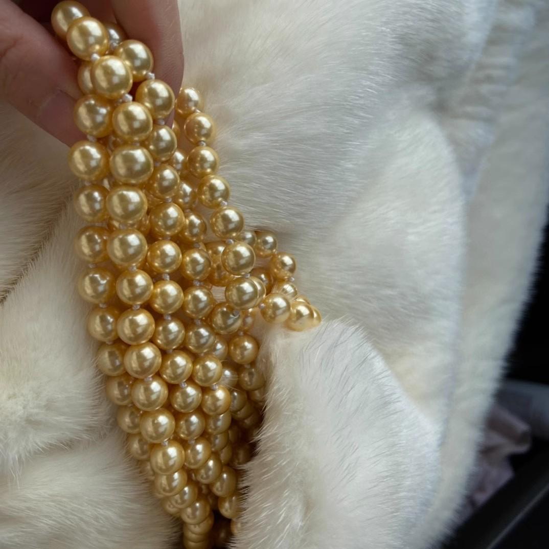 Collar de Cuentas de Concha de 8 mm Nicho Oro Té Otoño e Invierno Cadena para Suéter de Mujer Larga Multicapa 180 cm