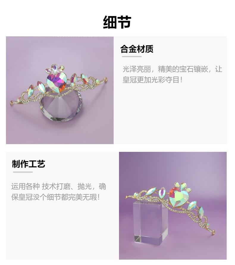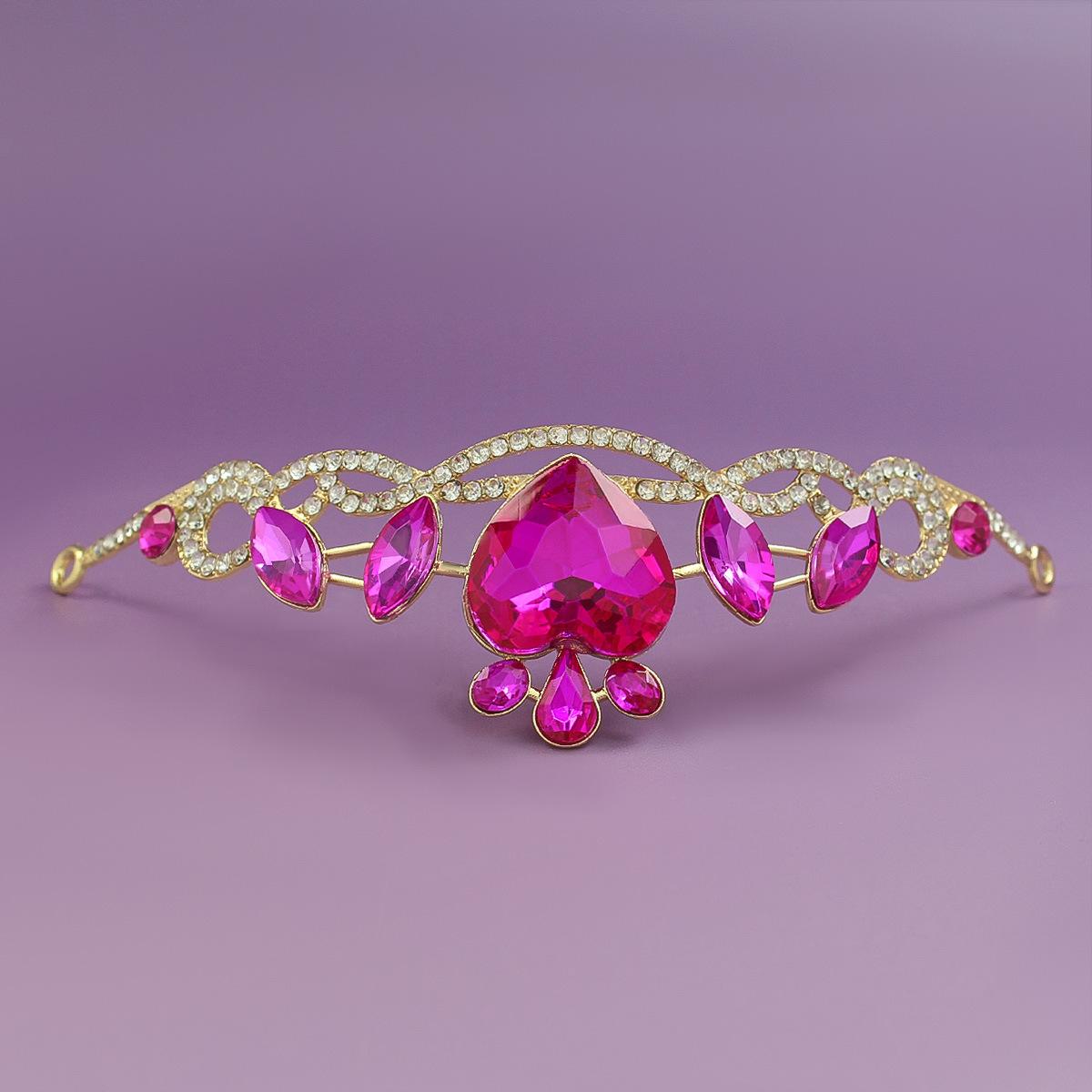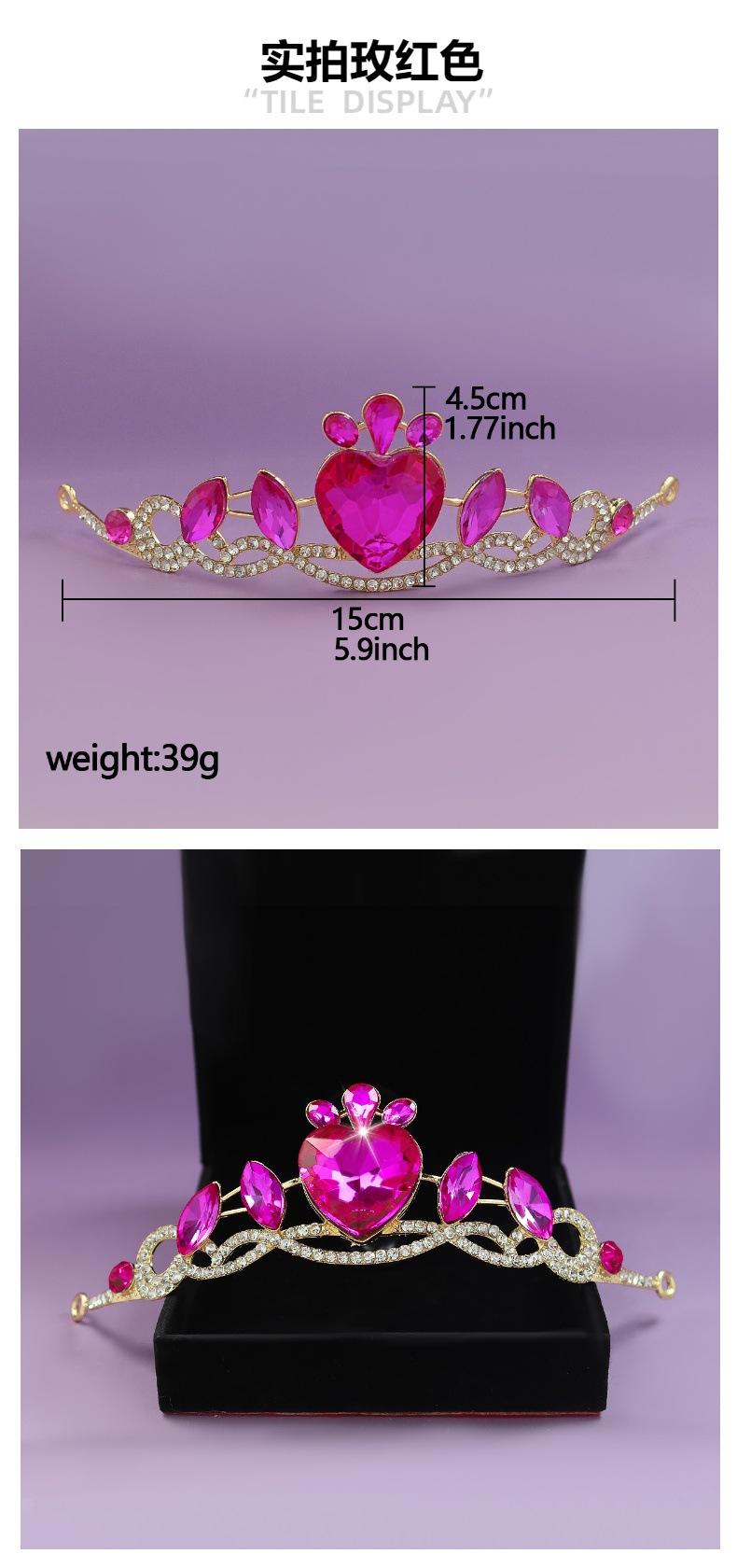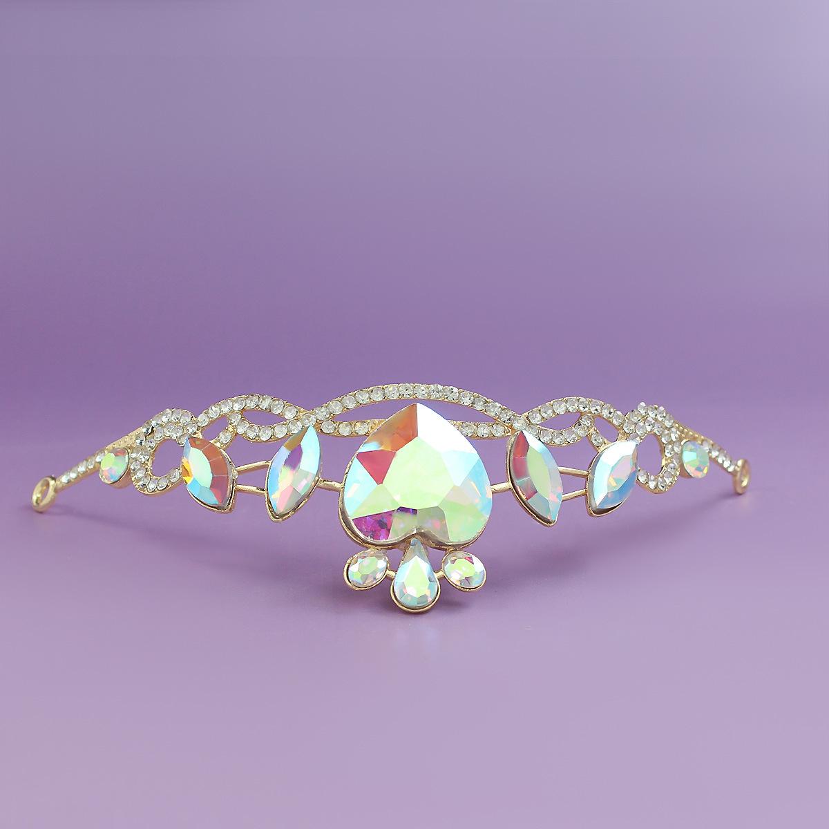 Corona de novia coreana con diamantes de imitación y forma de gota de amor para niños, tocado de rendimiento, corona semicircular de aleación de cristal.