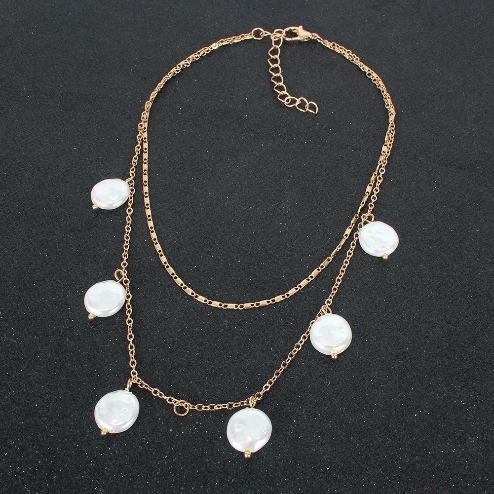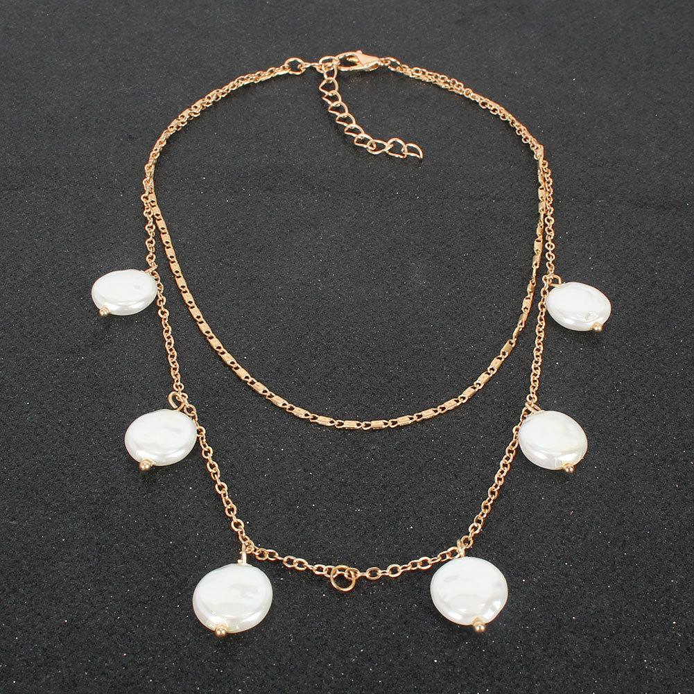 Collar de doble capa con colgante de perla de forma especial, joyería de moda europea y americana transfronteriza, personalidad sencilla, para mujer 15190