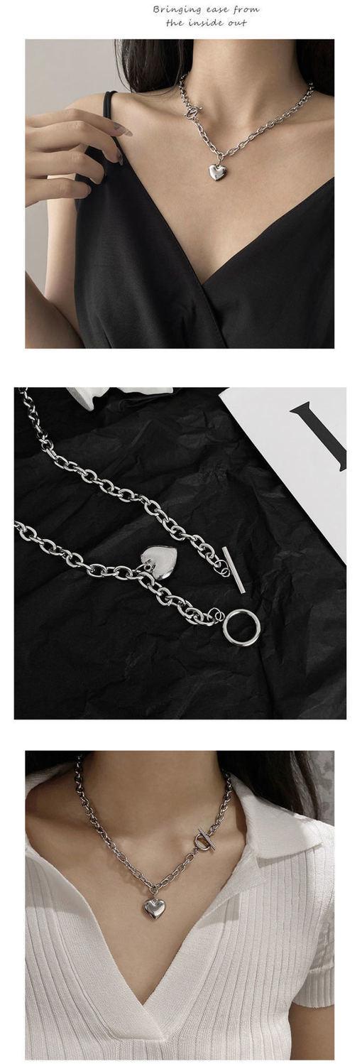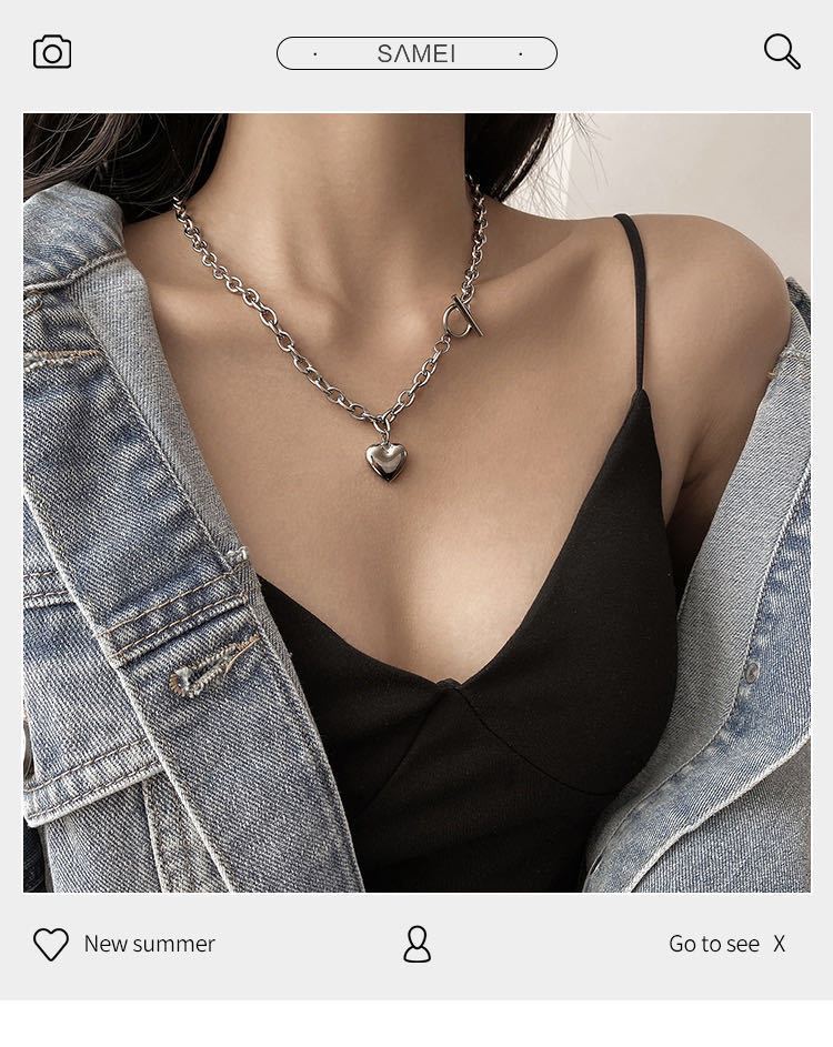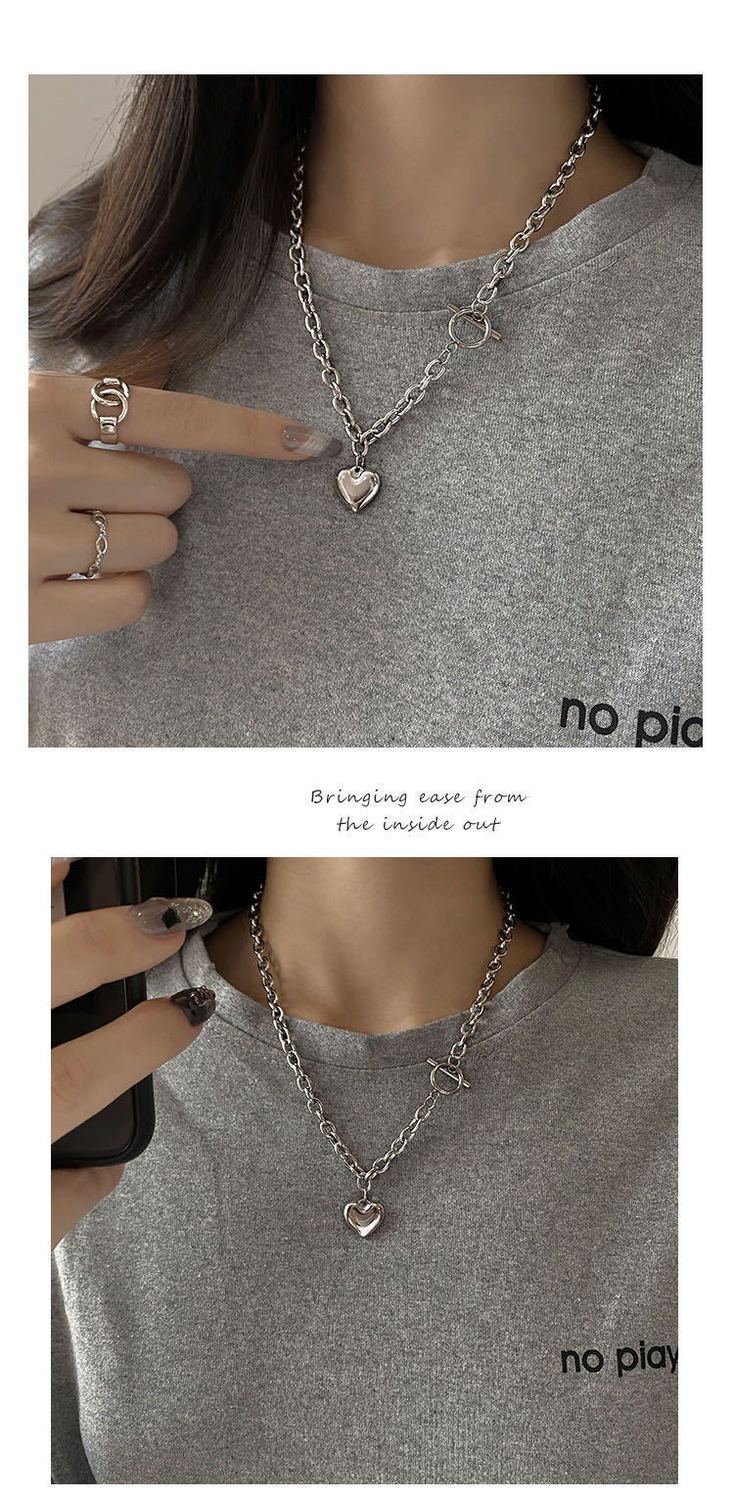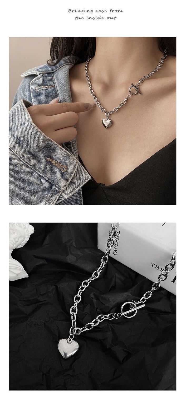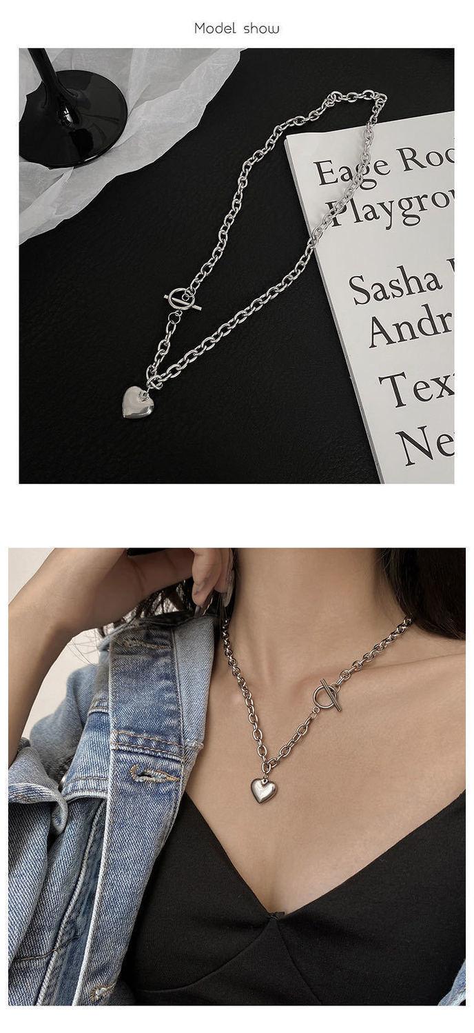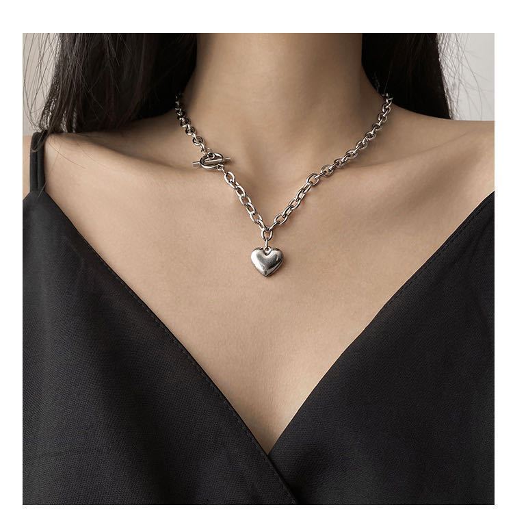 Collar de metal estilo europeo y americano con forma de corazón para mujer, estilo hip hop, con diseño de nicho de estilo frío, cadena gruesa para clavícula.