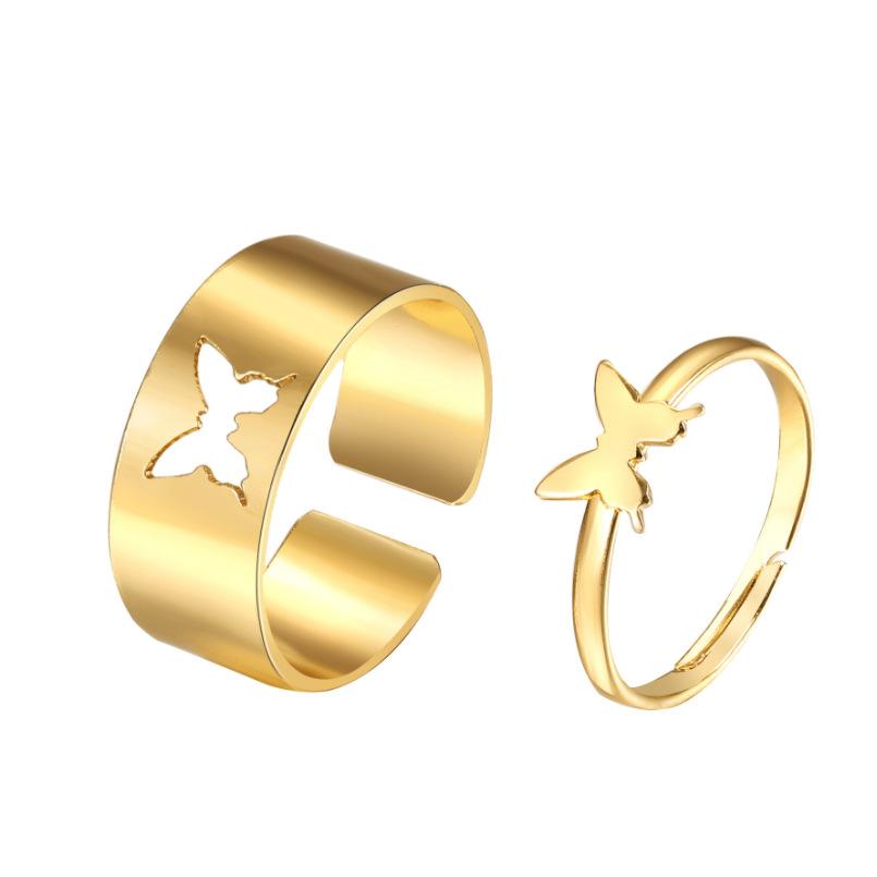 Nuevo Anillo Abierto Comercio Exterior Anillo Caliente Set 2 Piezas Personalidad Creativa Mariposa Punk Anillo de Pareja