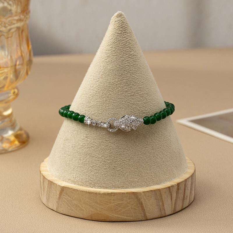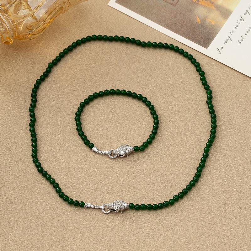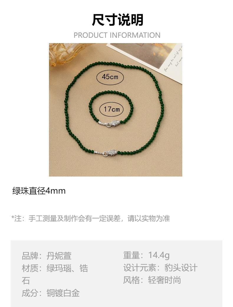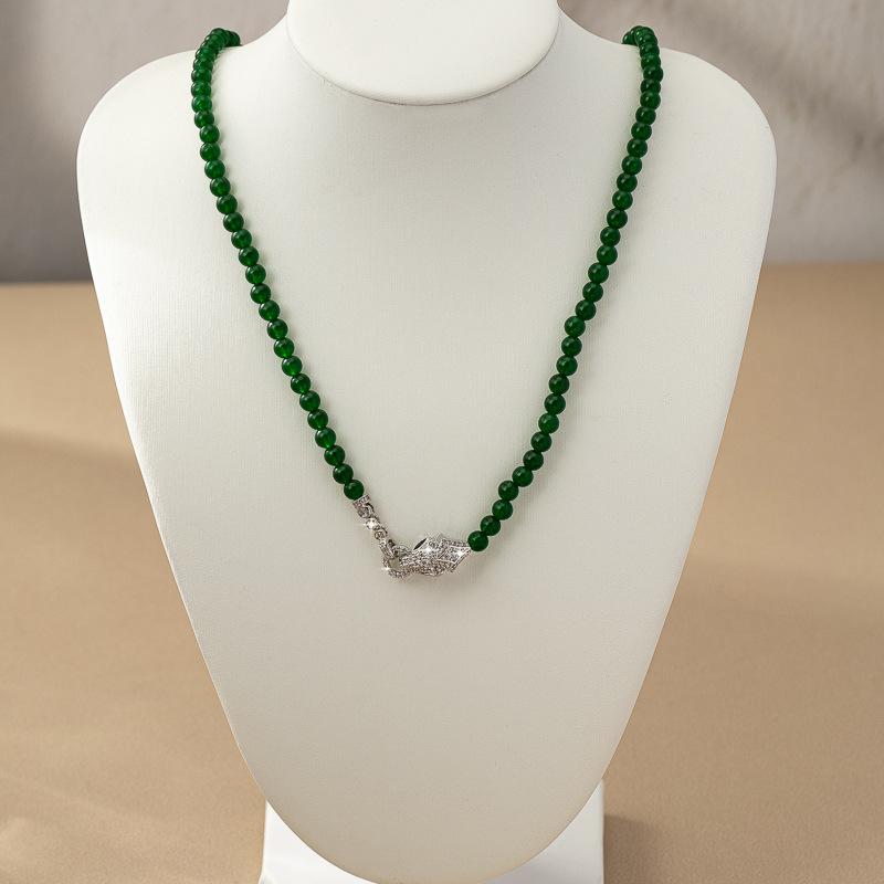 Nuevo collar de cuentas de esmeralda para mujer, ágata, calcedonia, cabeza de leopardo, cadena de clavícula con cuentas, nuevo estilo chino, joyería de mano de alta calidad.