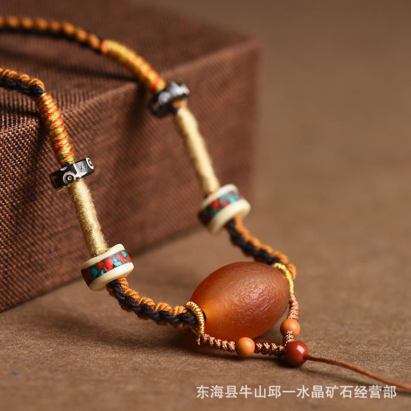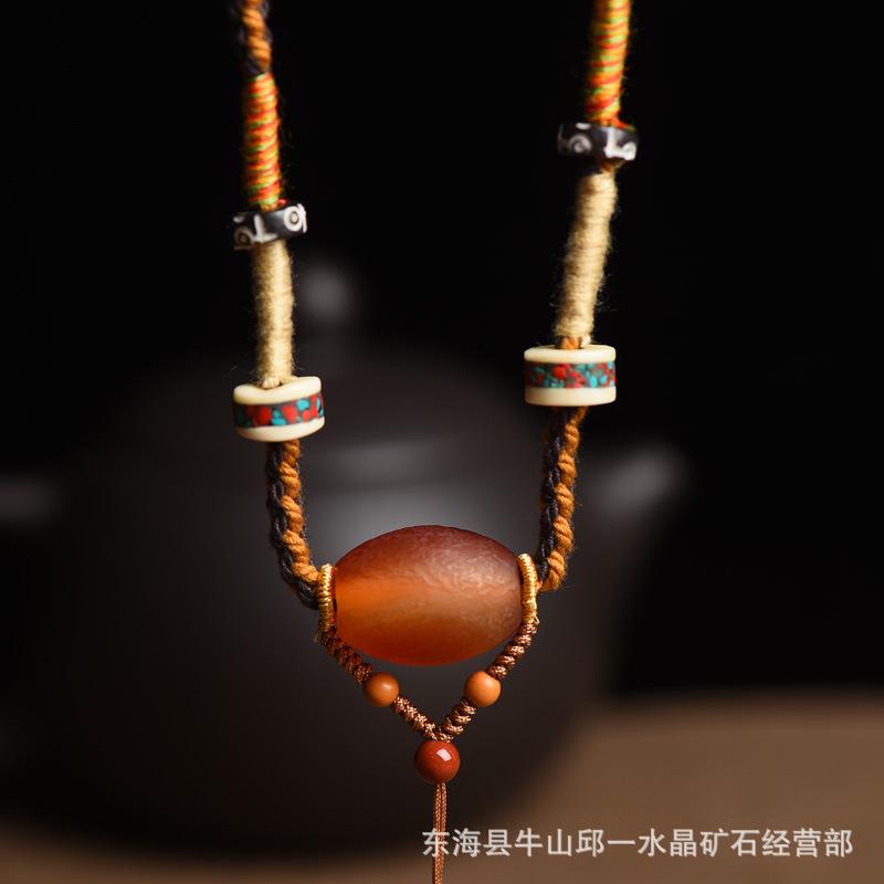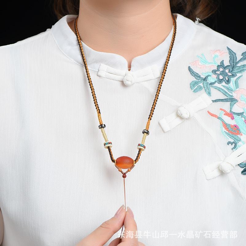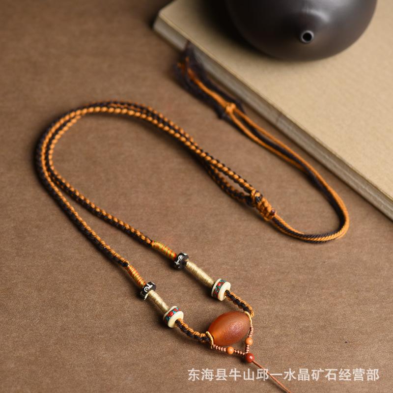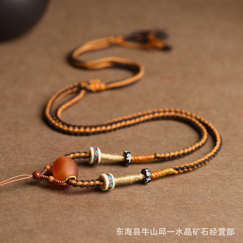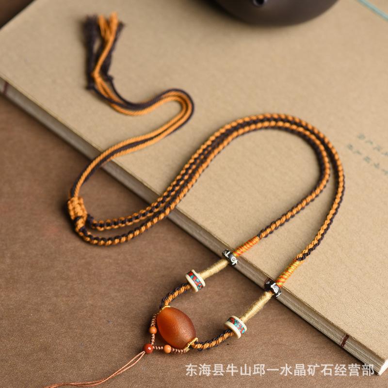 Collar con Colgante Xizang Cuerda Hecho a Mano Frotado a Mano Algodón Cuerda Tejida Colgante de Ágata Tianzhu Accesorios Collar para Mujer Colgante Cuerda