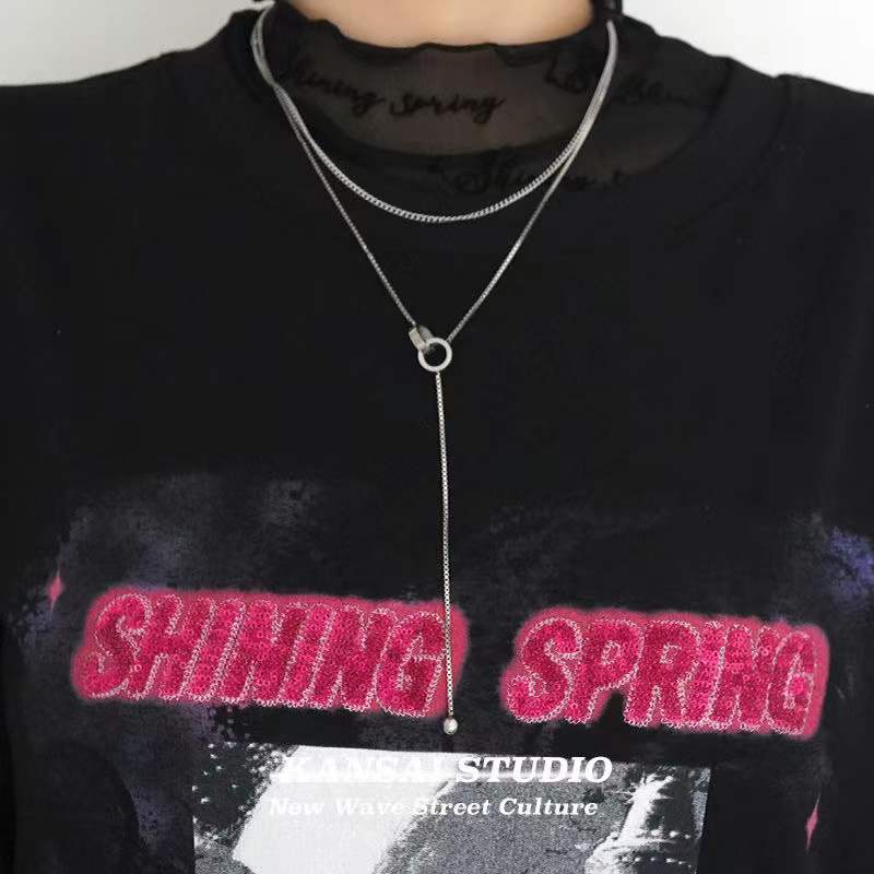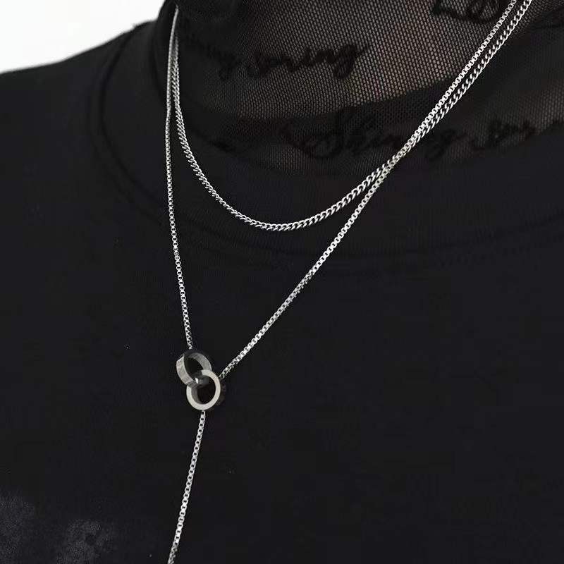 Collar de acero de titanio con borlas superpuestas, rectangular, de doble anillo y doble capa, estilo hip-hop europeo y americano, estilo frío