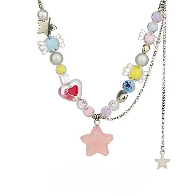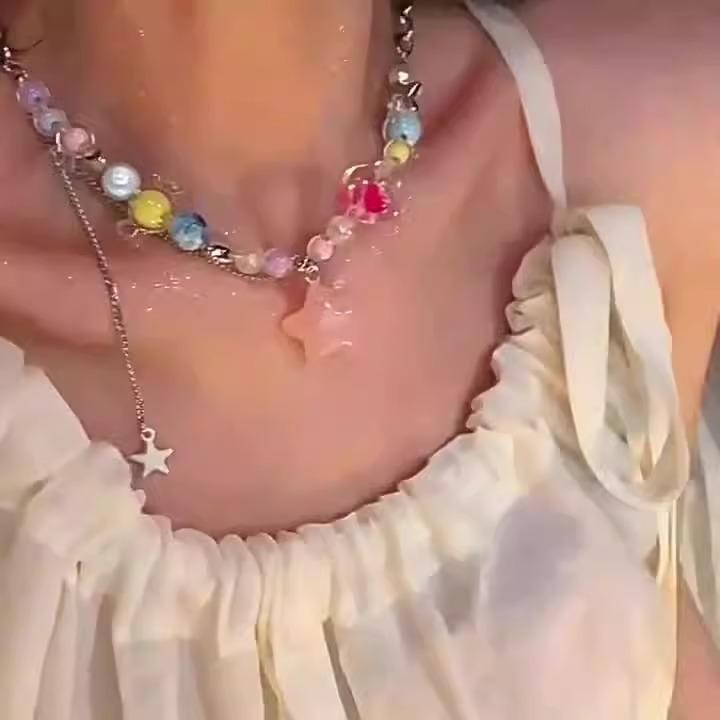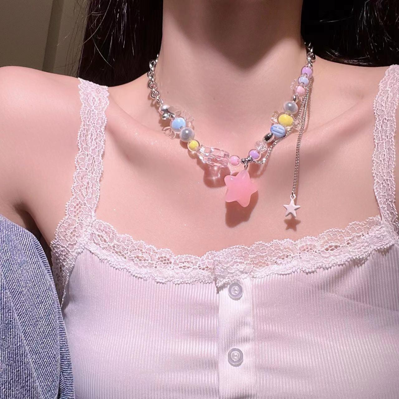 Collar de Borla de Estrella Colorida con Cuentas de Dopamina para Mujer 2025 Nuevo Estilo Elegante Gargantilla Dulce Cool Cadena para Clavícula Hot Girl